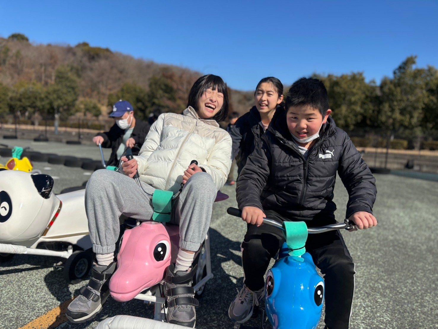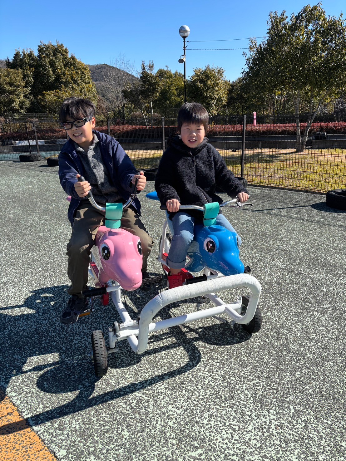 おもしろ自転車・のんびり自転車では、「もう1回!」と何度も乗って楽しむ児童たち🎵
