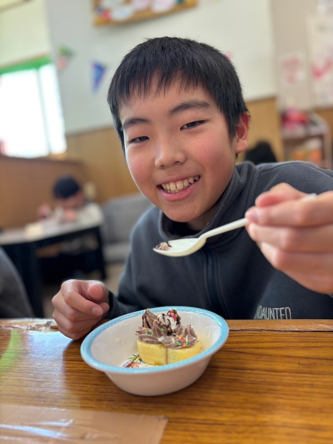 お誕生日の歌を歌った後は、ケーキにトッピング!ホイップやフルーツで好きなように飾り付けをして、いただきます〜!