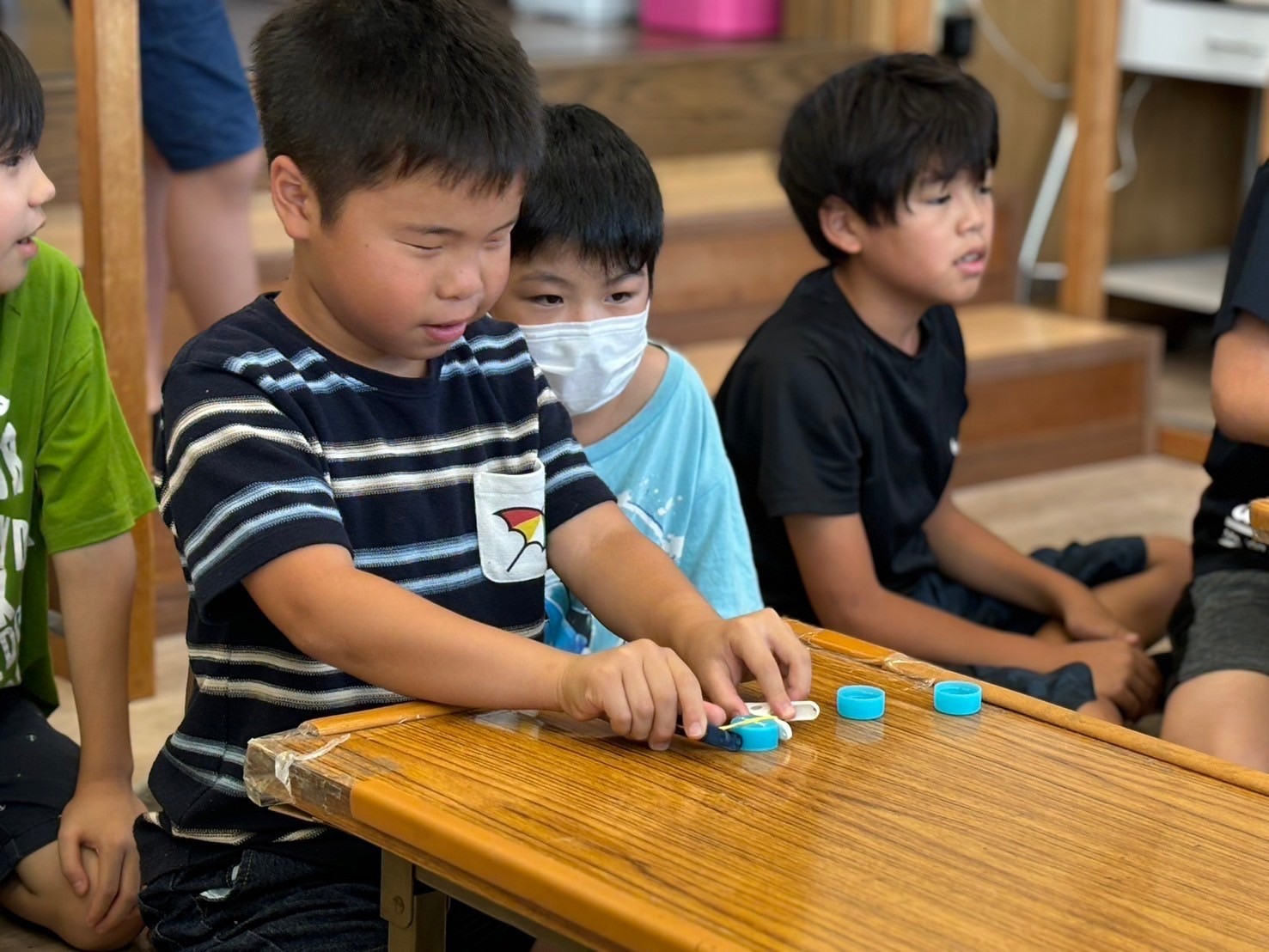 プリンの液と混ざらず、カラメルだけが下に落ちていきます😆不思議な現象にみんなびっくりしていました🎵