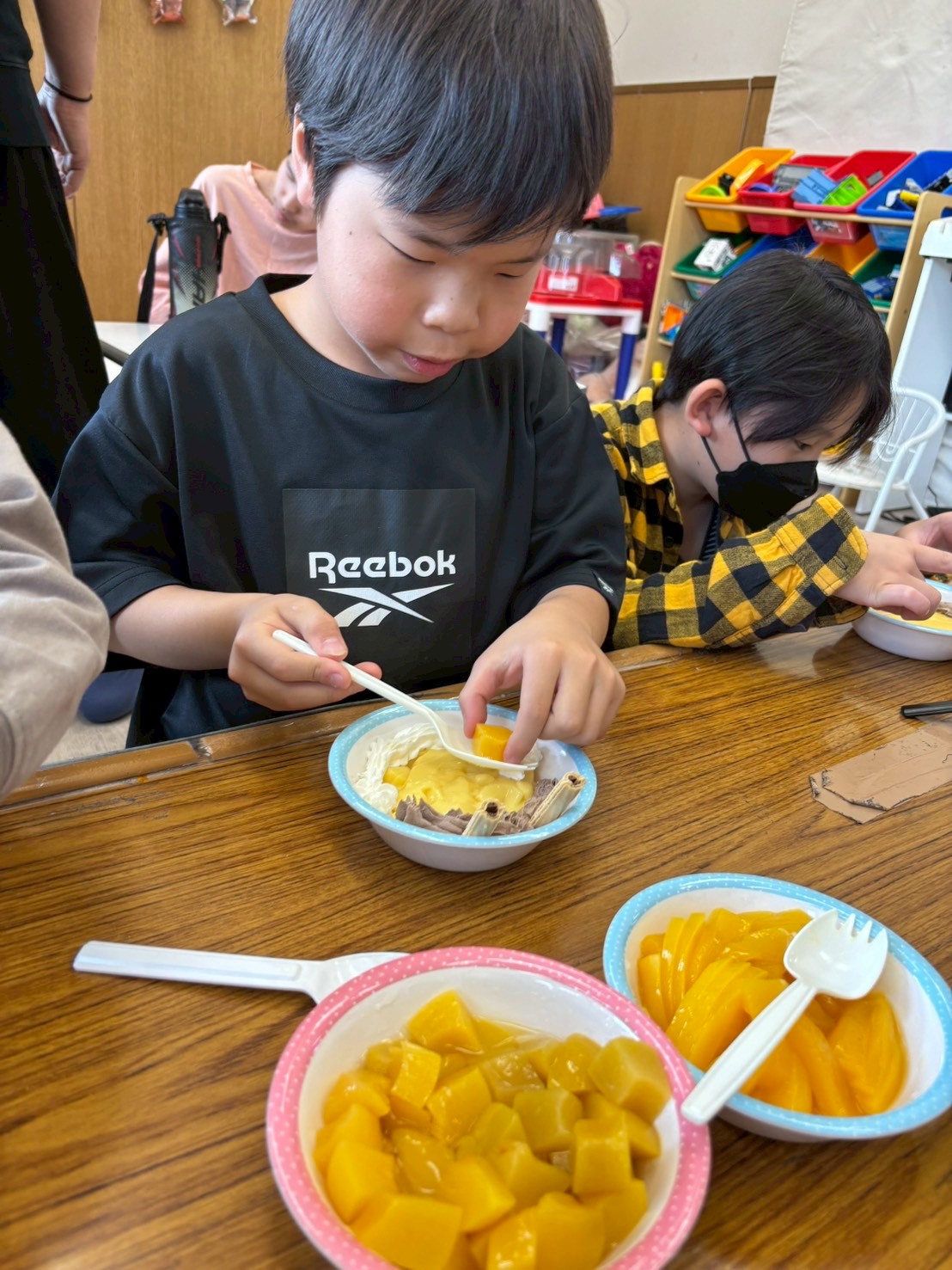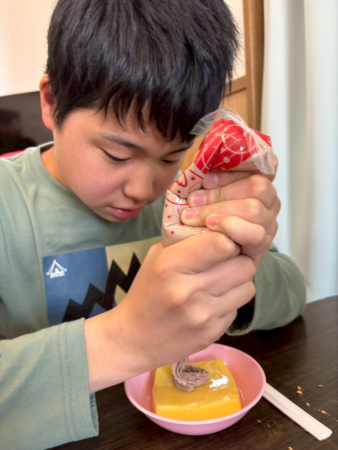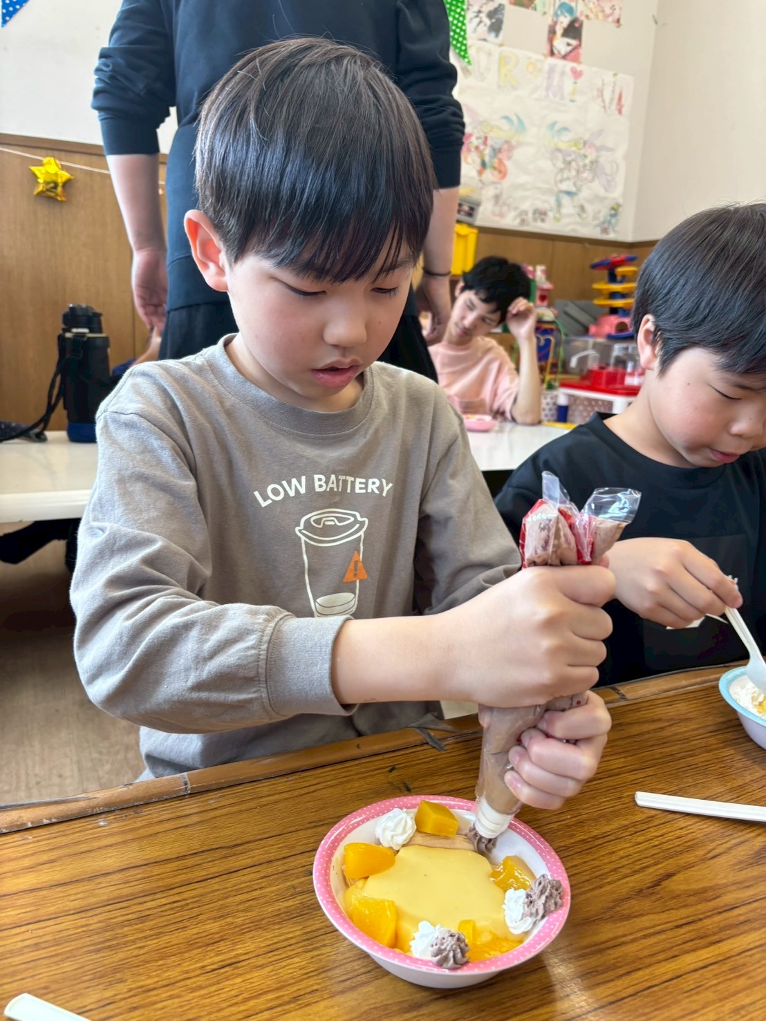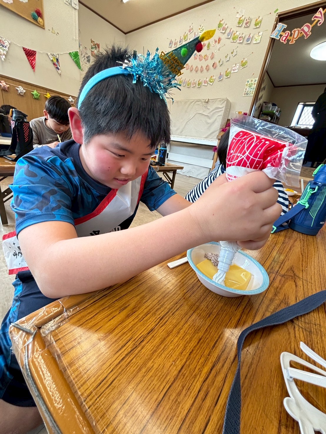 お誕生日の歌を歌った後は、おやつにデコレーションをして、いただきます☆