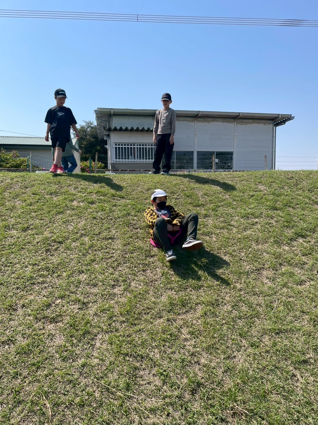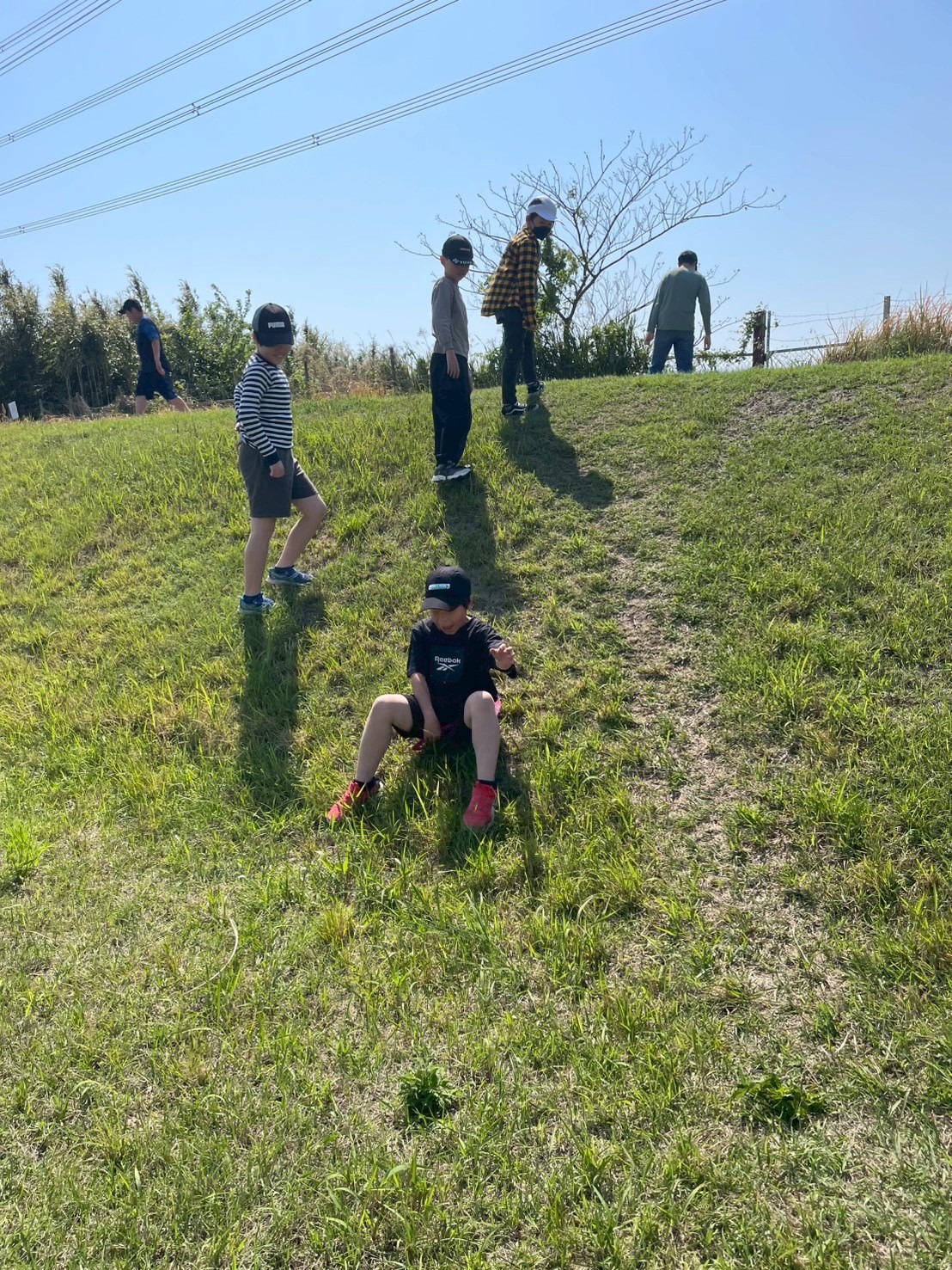 土手の方へも行き、芝滑りや鬼ごっこも楽しんでいましたよ〜☆