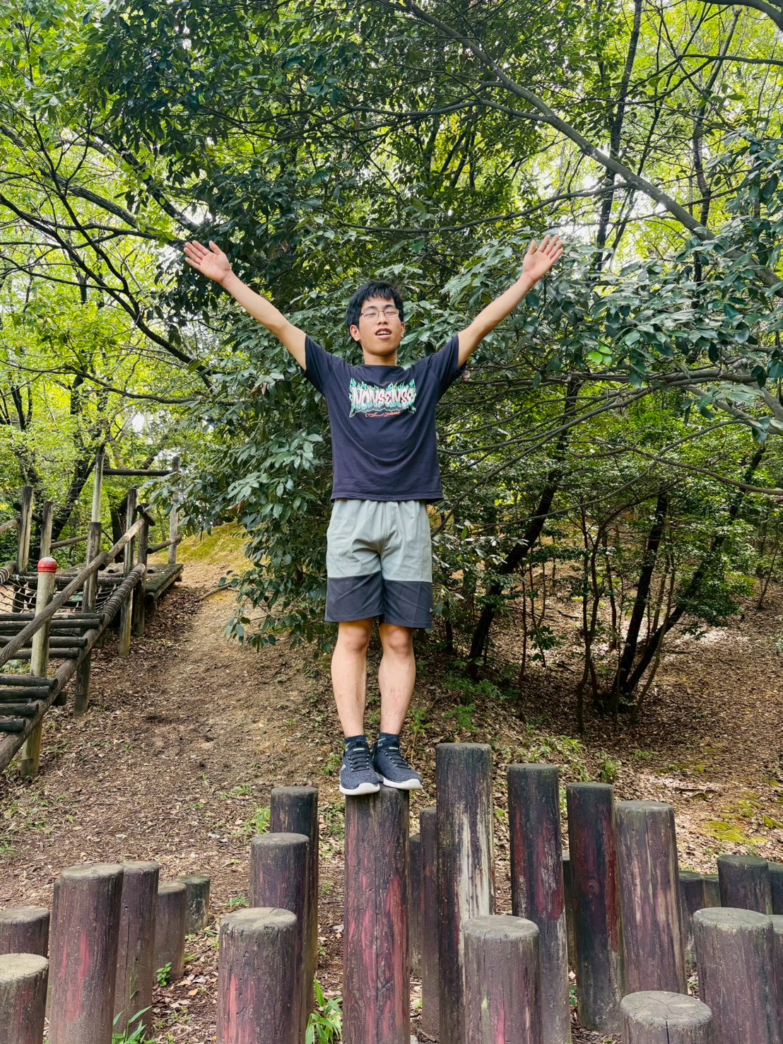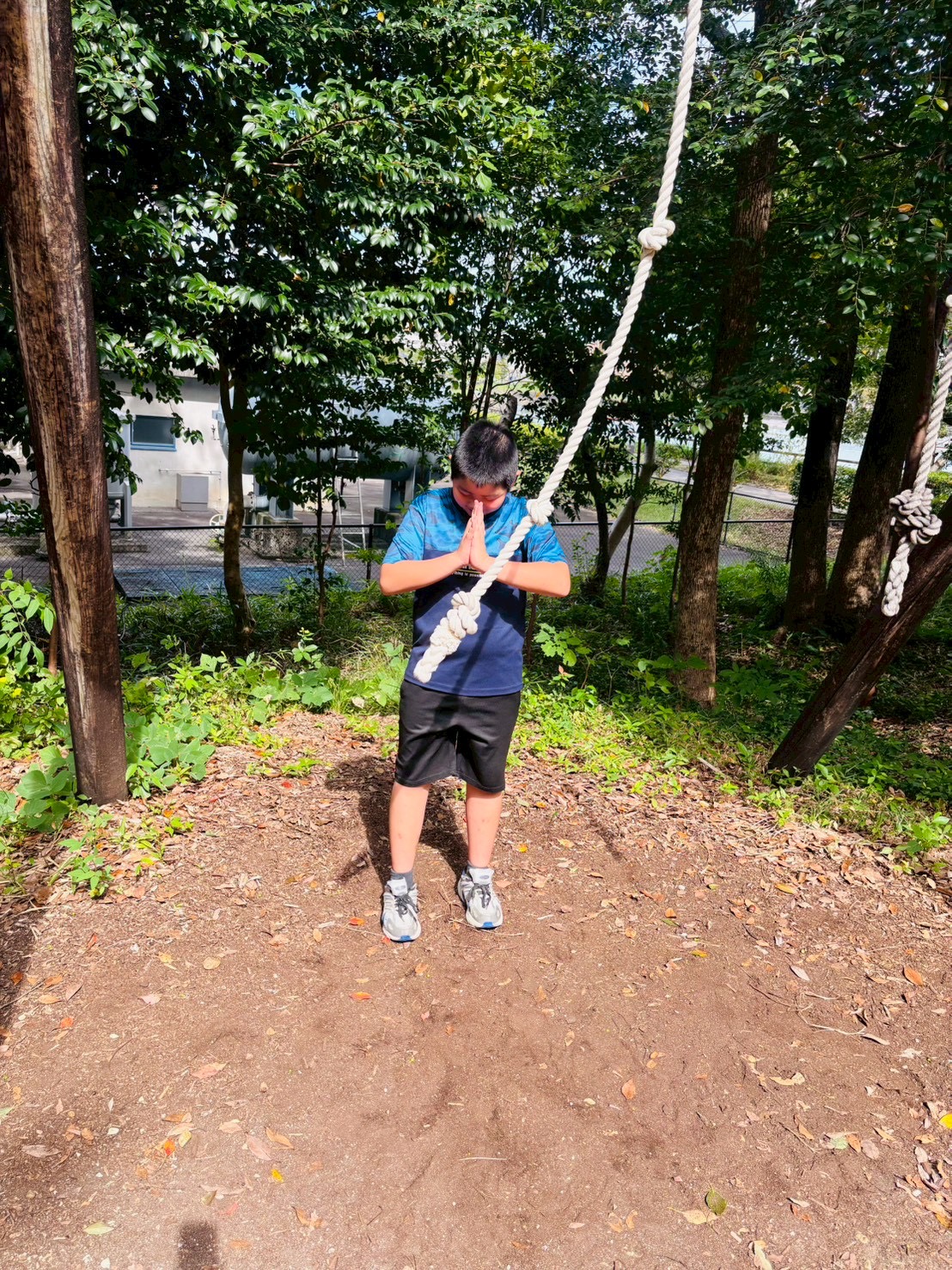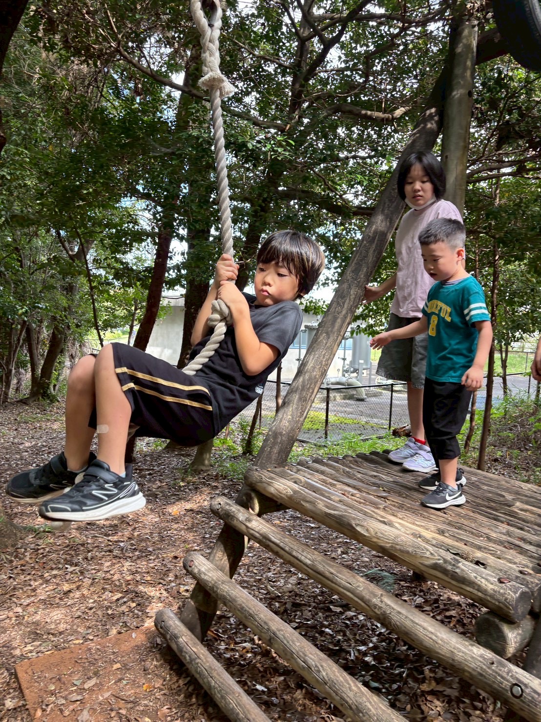 アスレチック遊具がある森の中にも移動し、沢山体を動かして遊んでいます🌲
