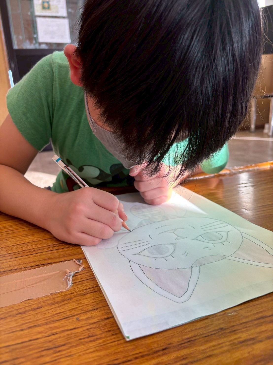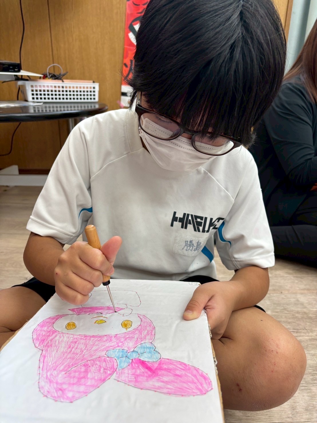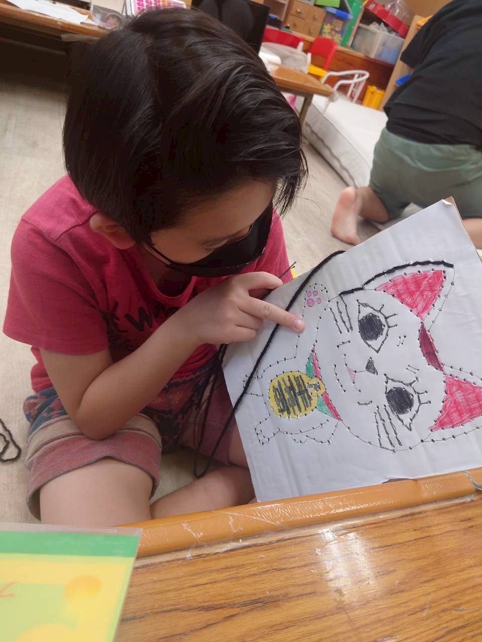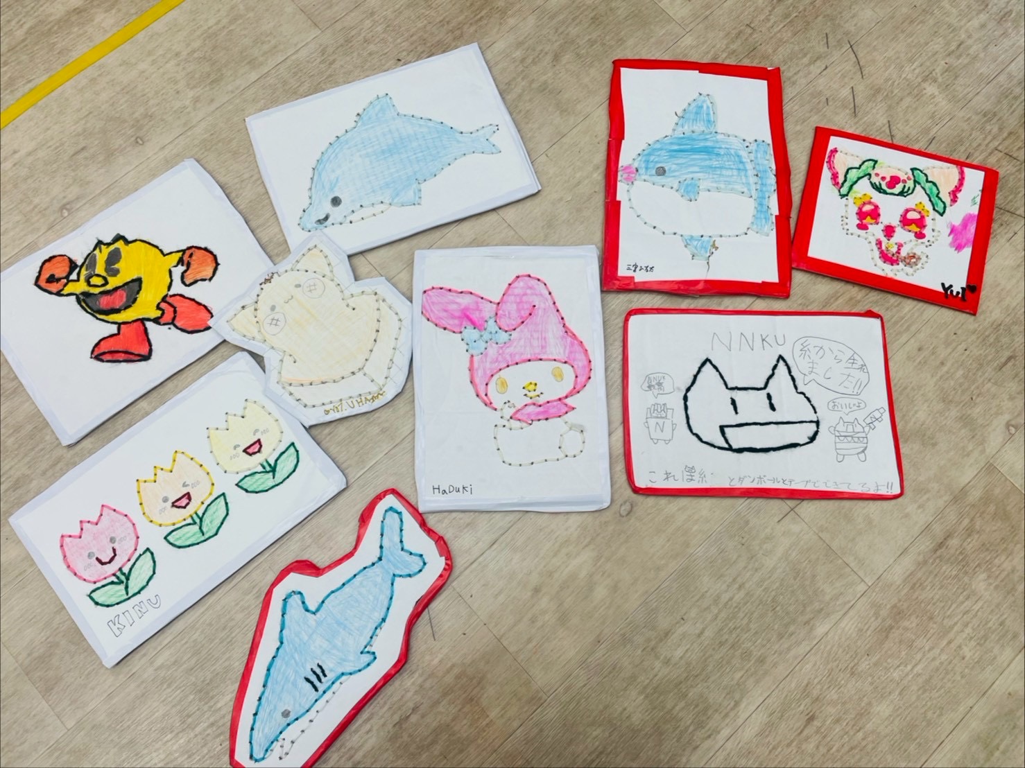 2025 11.20 ☆金曜物作り(ステッチ)☆ 東郷店 今回は、「ステッチ」制作をしました🧶 各々好きなイラストを紙に写して描き、線の上を等間隔に穴開けします。 毛糸とヘアピンを使って、バックステッチという縫い方でどんどん刺繍💪 毛糸が絡まってしまい「先生助けて〜!」と、時々苦戦してしまう場面もありましたが、みんなとっても集中して制作できていました🤗✨ また次回の物作りもお楽しみに☆ アルバムはこちら↓ 金曜物作り(ステッチ)