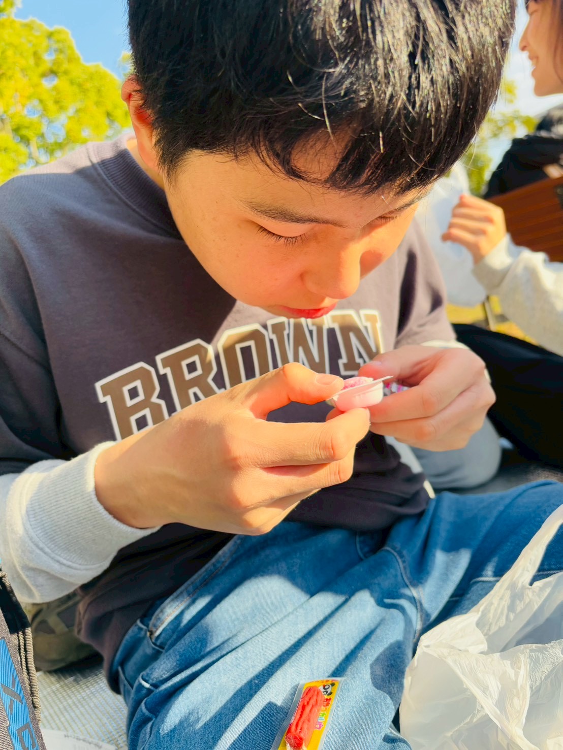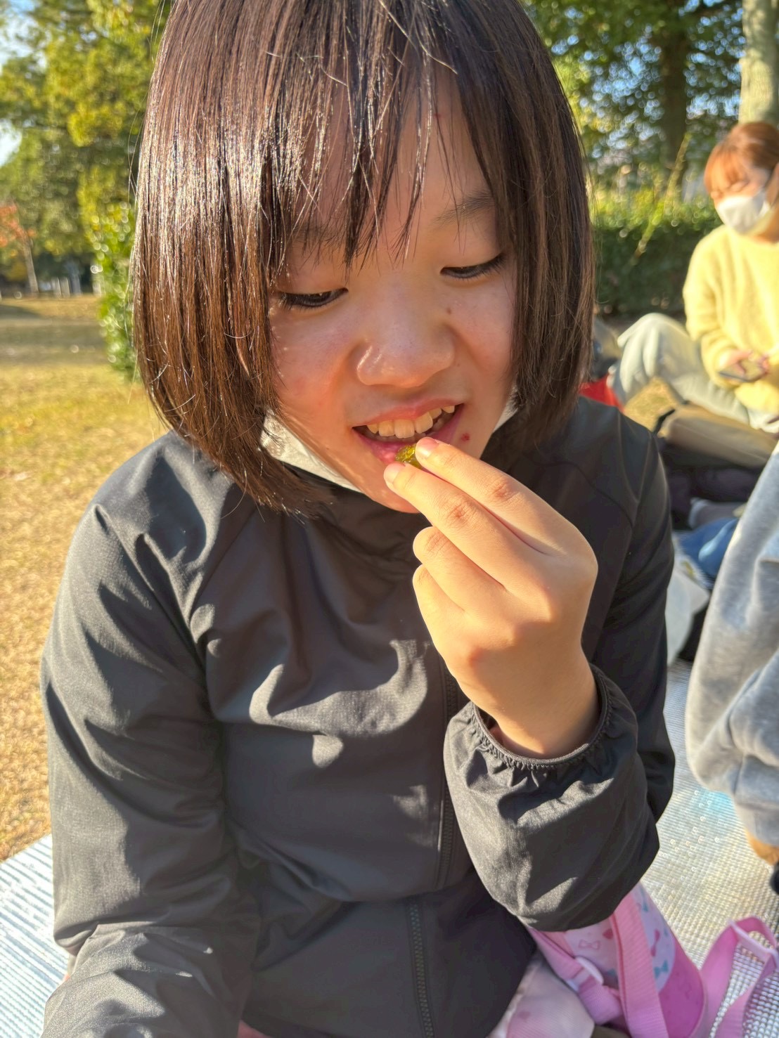 ピクニック気分で、みんな好きなお菓子を嬉しそうに食べていました〜😋