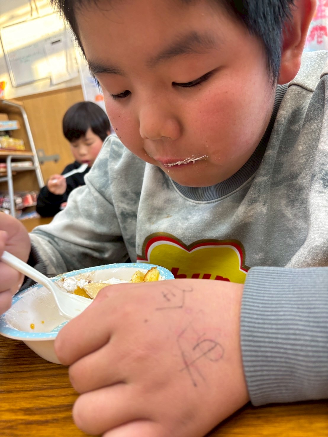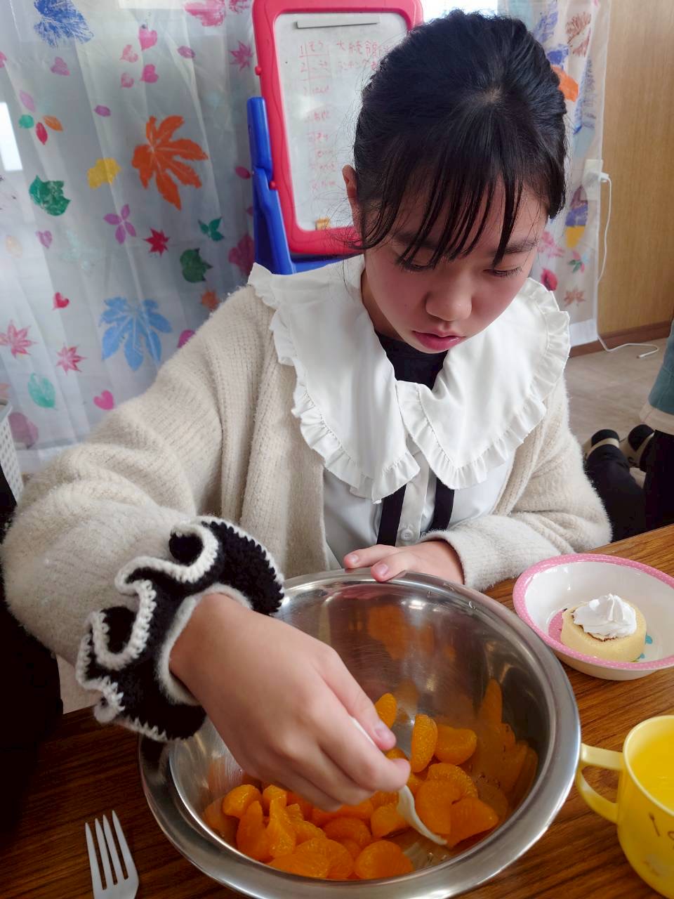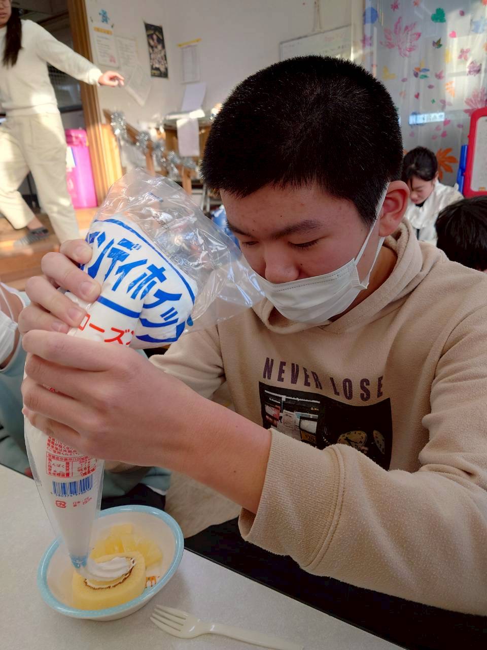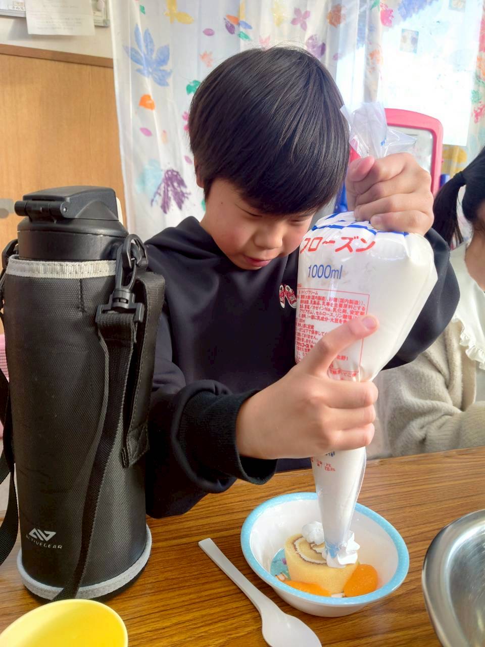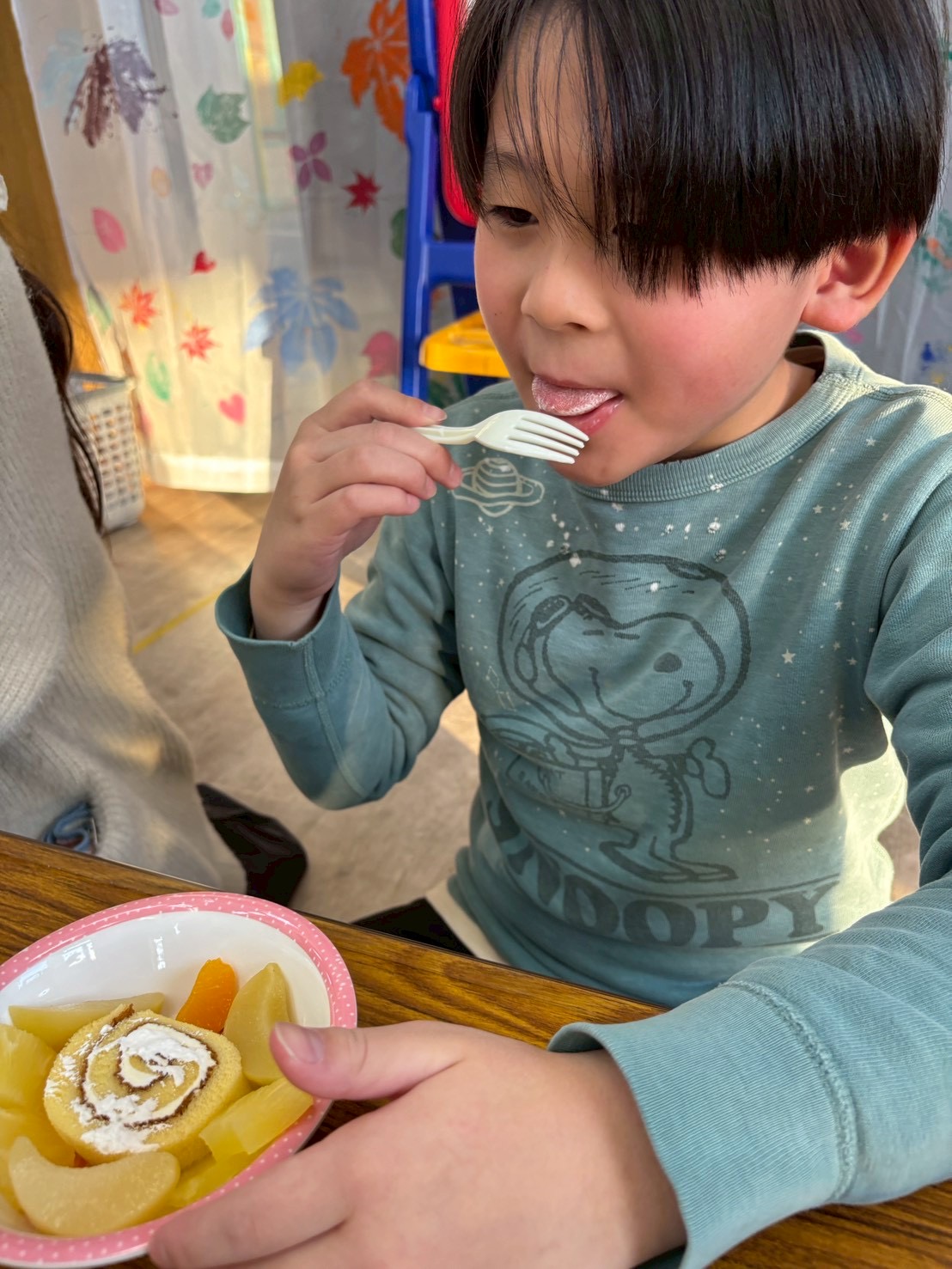 おやつは、ロールケーキにホイップやフルーツをトッピング🍰可愛く仕上げていました💕