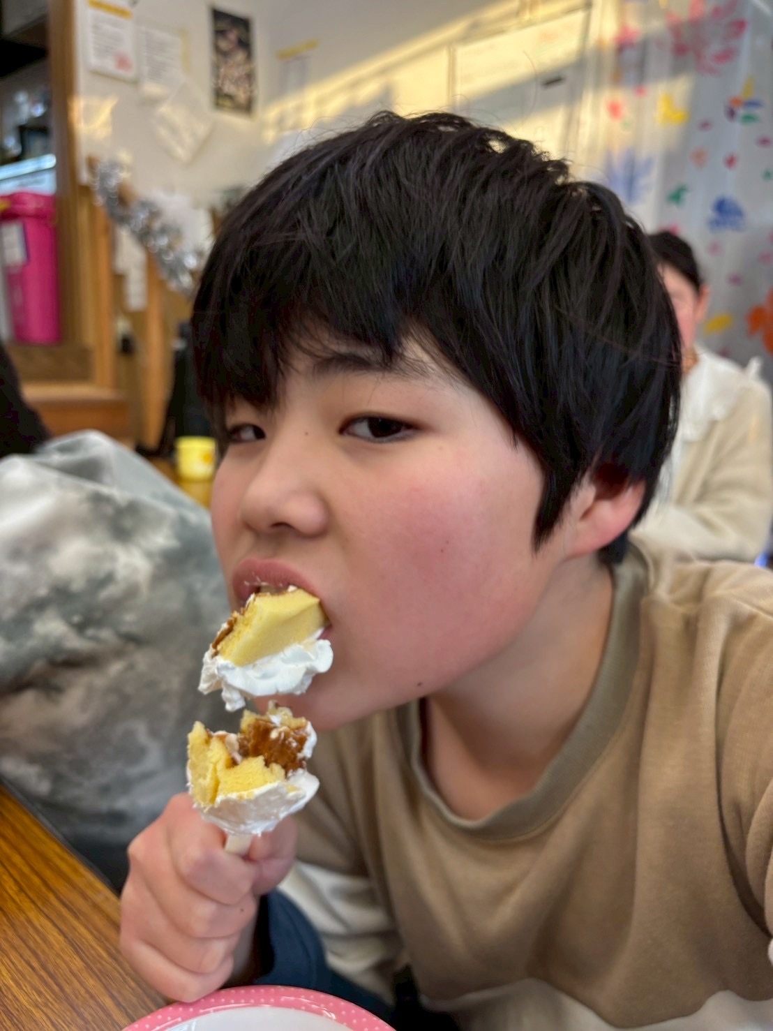 お誕生日の歌でお祝いした後は、みんなでいただきます〜😋