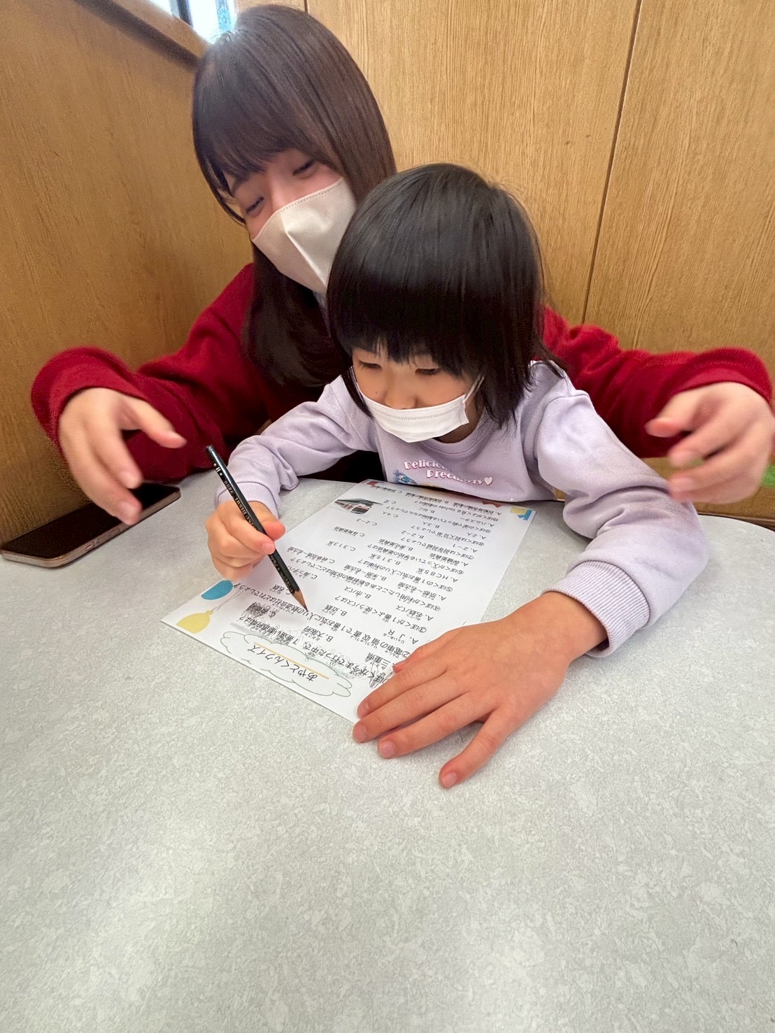 7歳になったゆいちゃん「鉛筆の練習や工作をがんばりたいです!」(スタッフと一緒に😊)