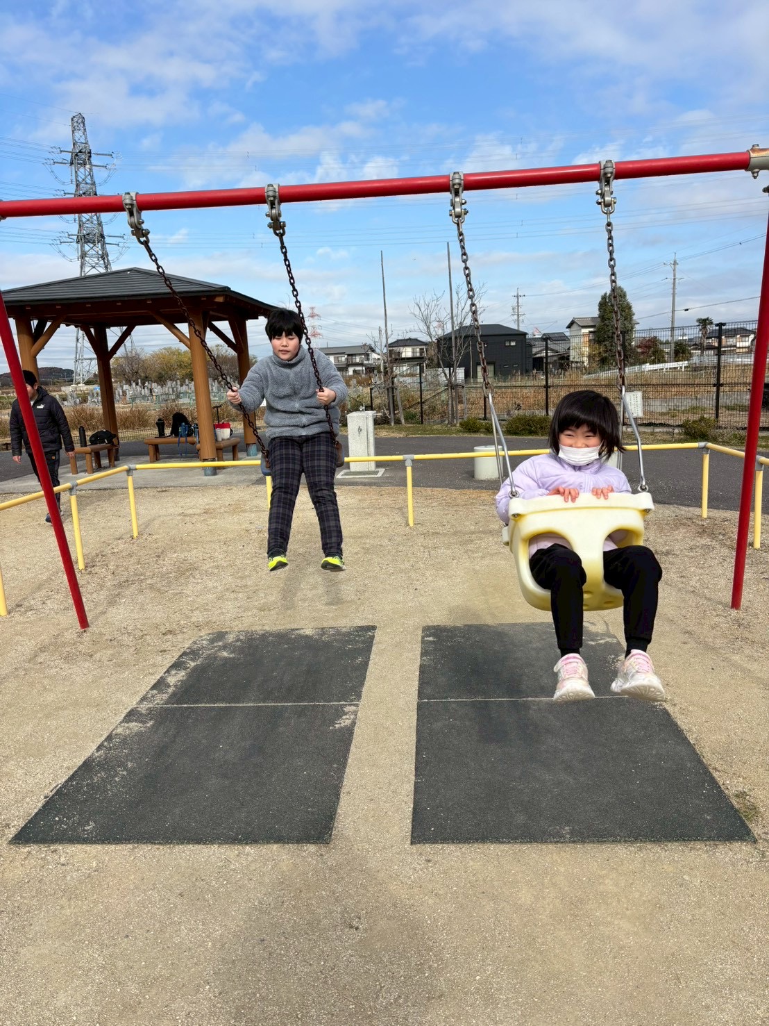 ブランコに乗ったり、芝生広場では「はないちもんめ」をして楽しんでいました✨