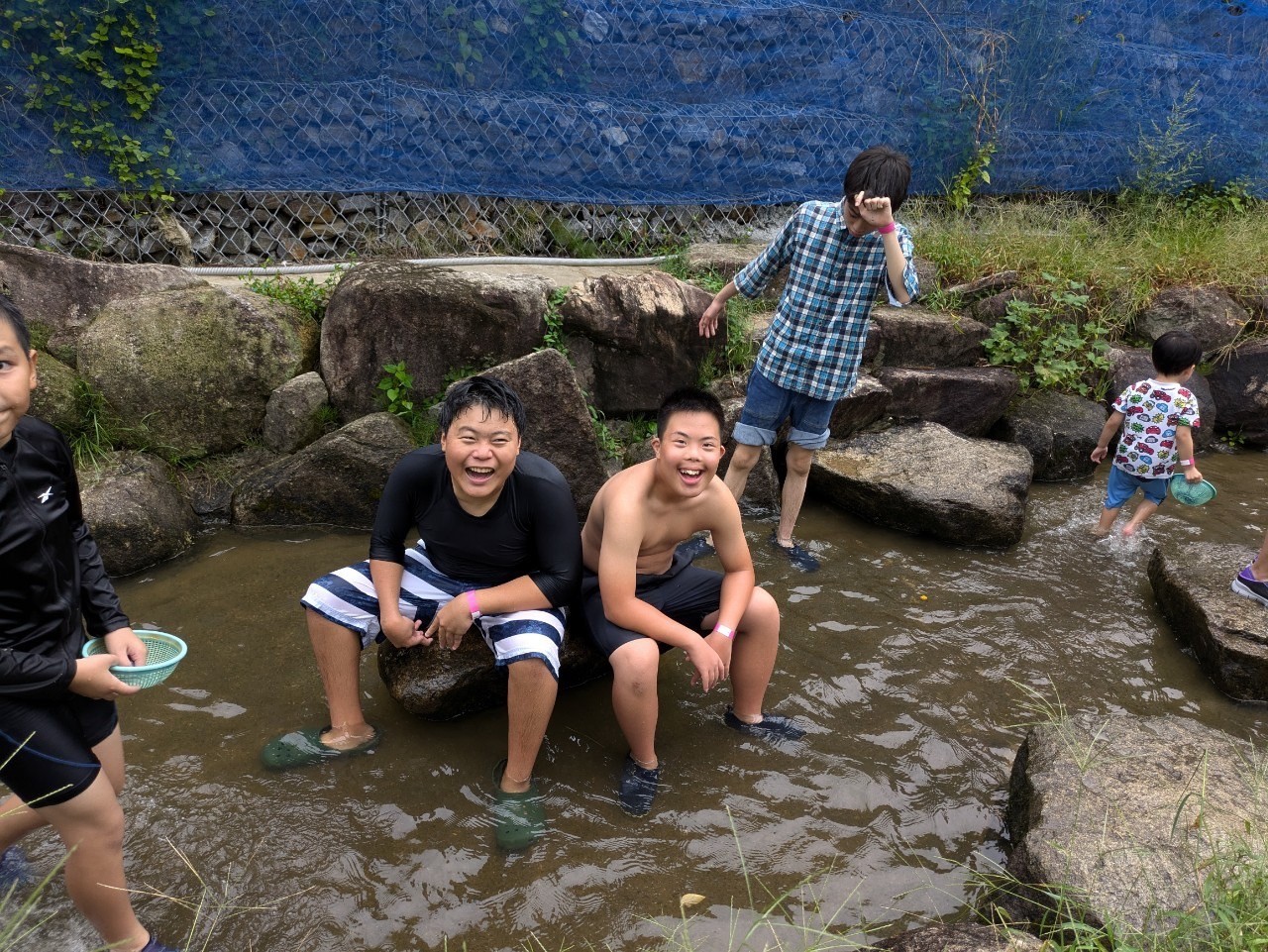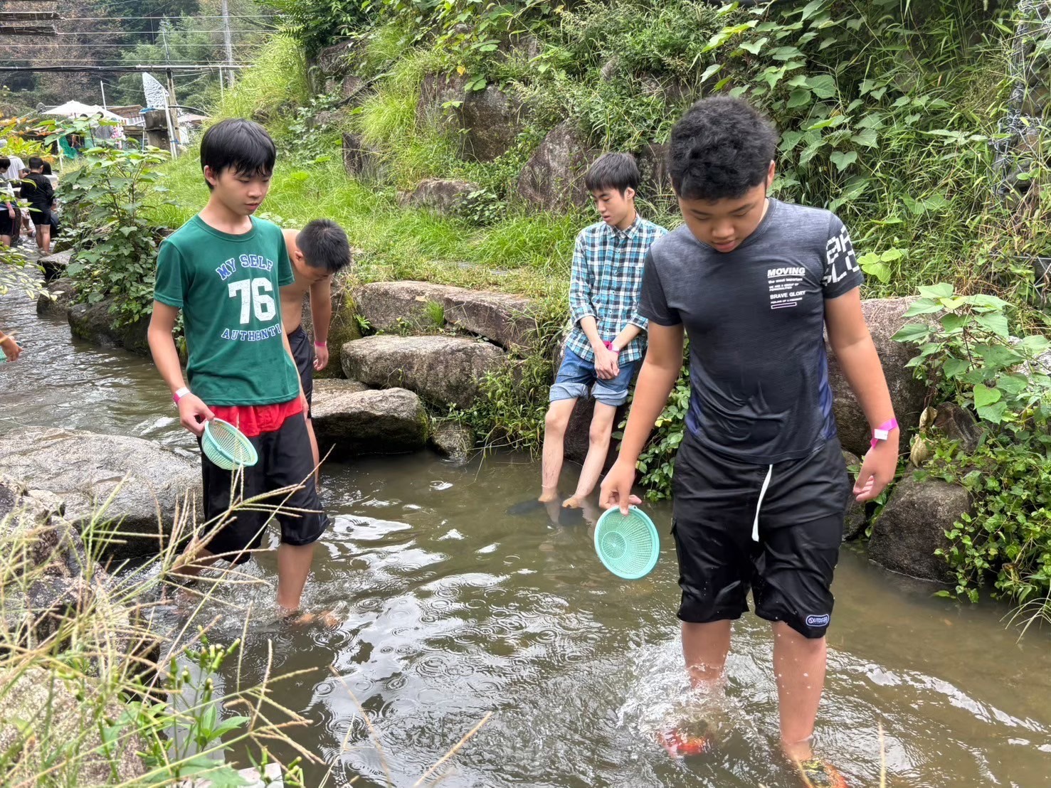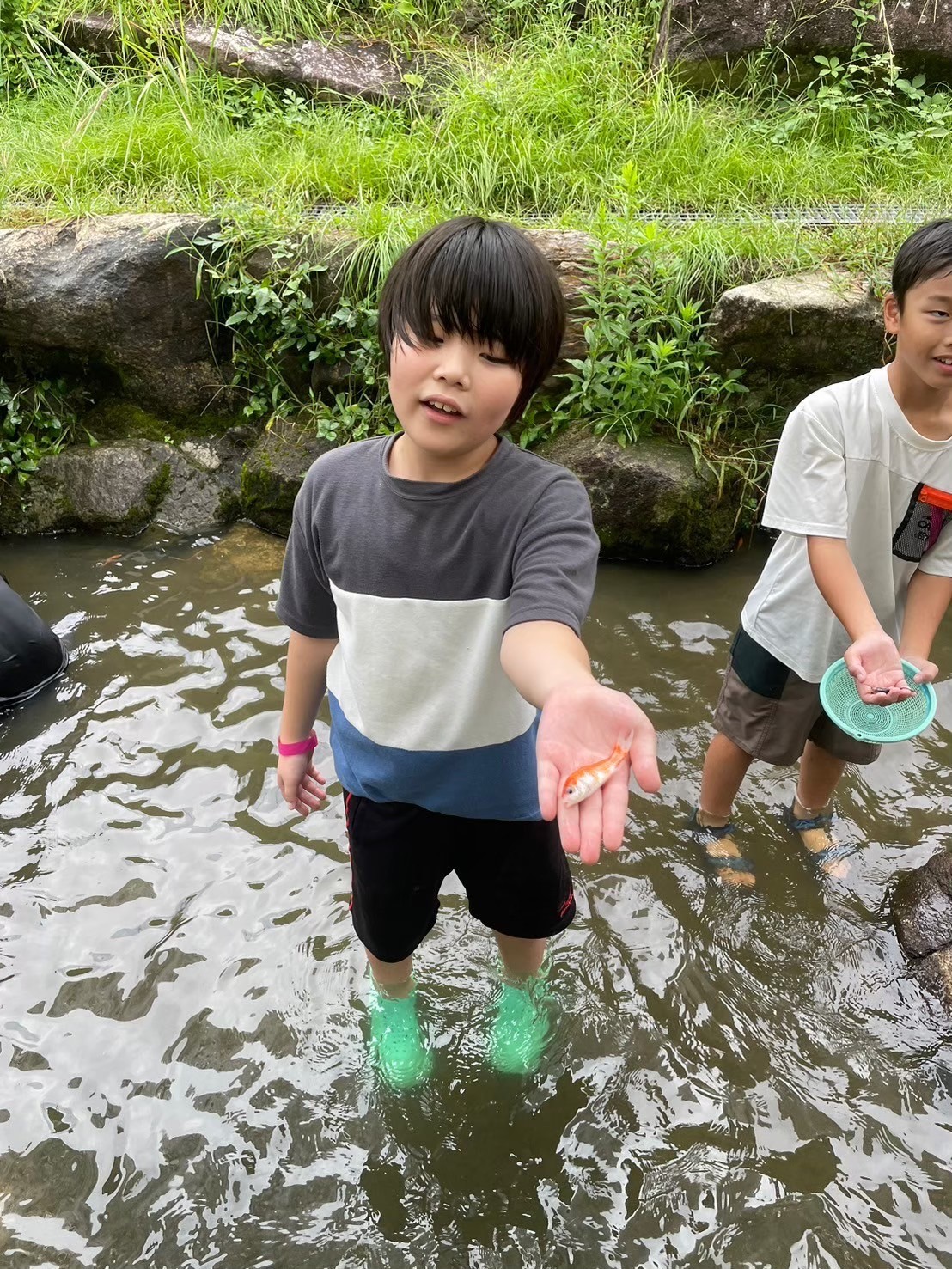 小川では魚の放流があり、みんな必死に追いかけていました😊