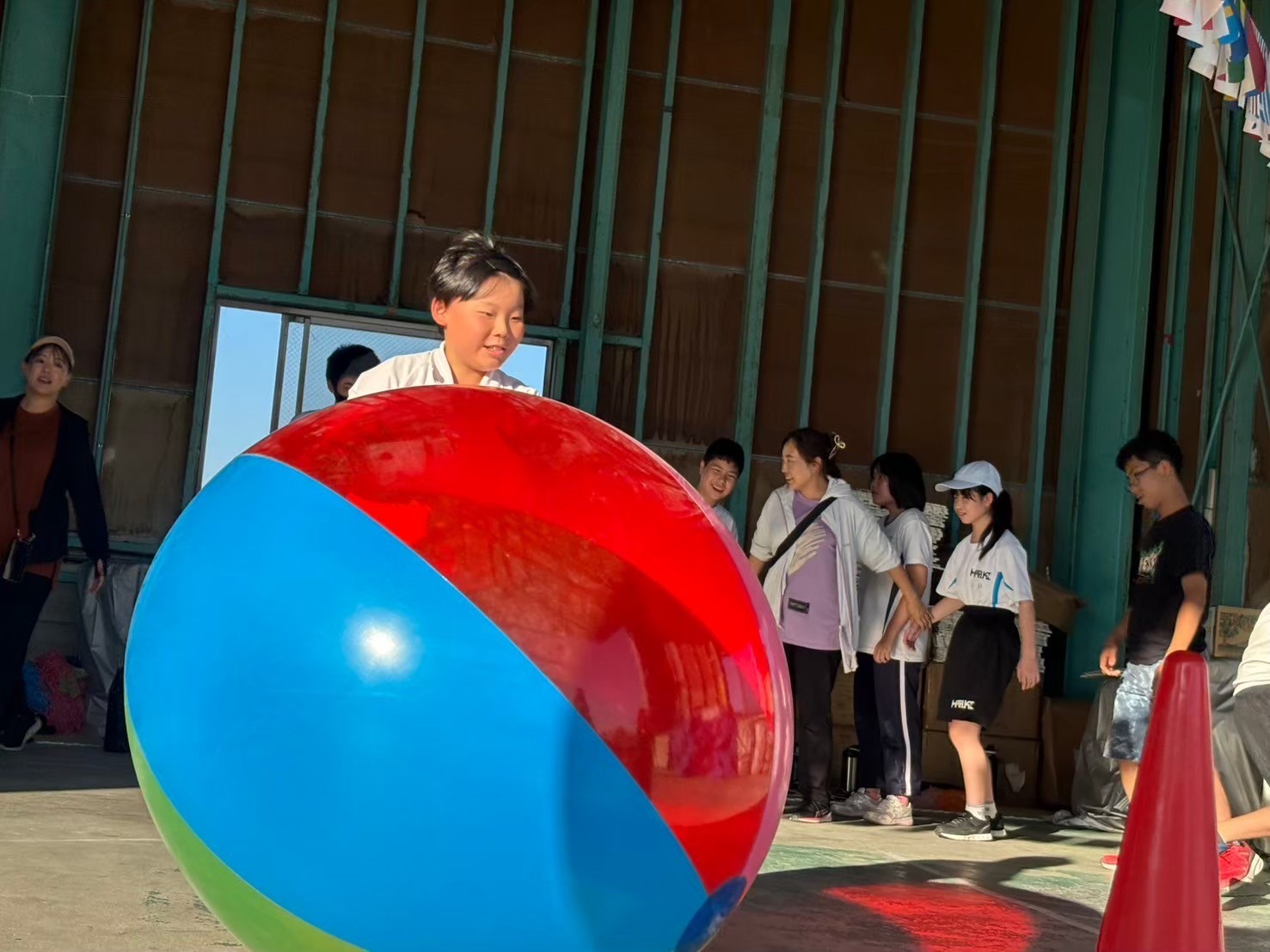 大玉を転がし、コーンを回って次の子にバトンタッチ!
