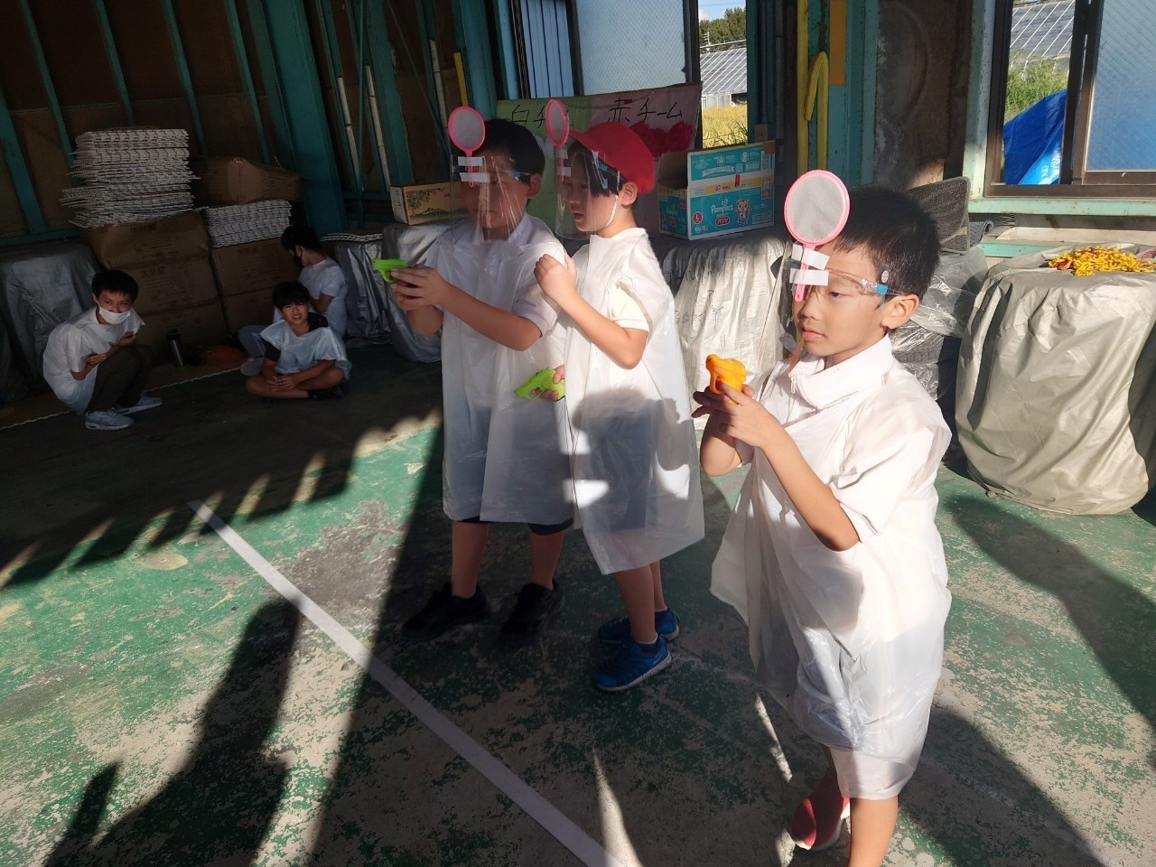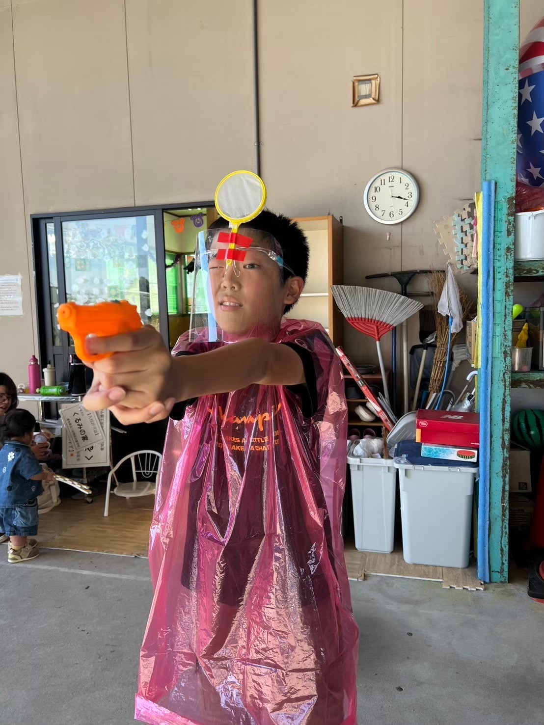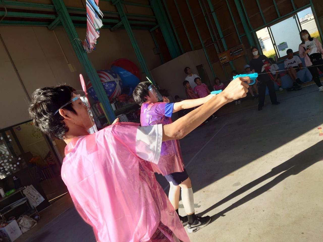 毎年恒例の人気競技✨水鉄砲で相手のポイに穴を開けたら勝ち✨