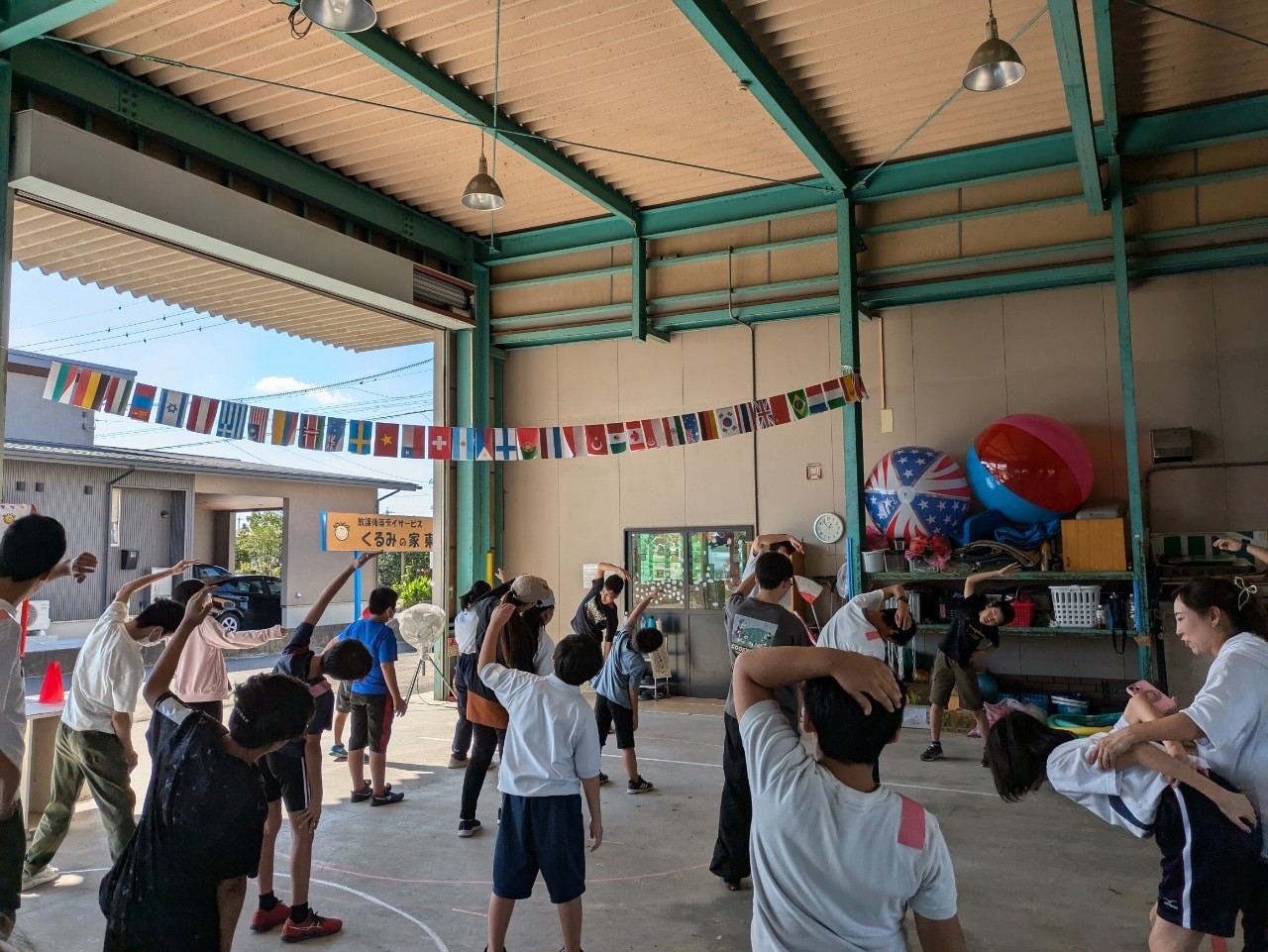 体操は「ラジオ体操第一」でしっかり準備運動をしました!