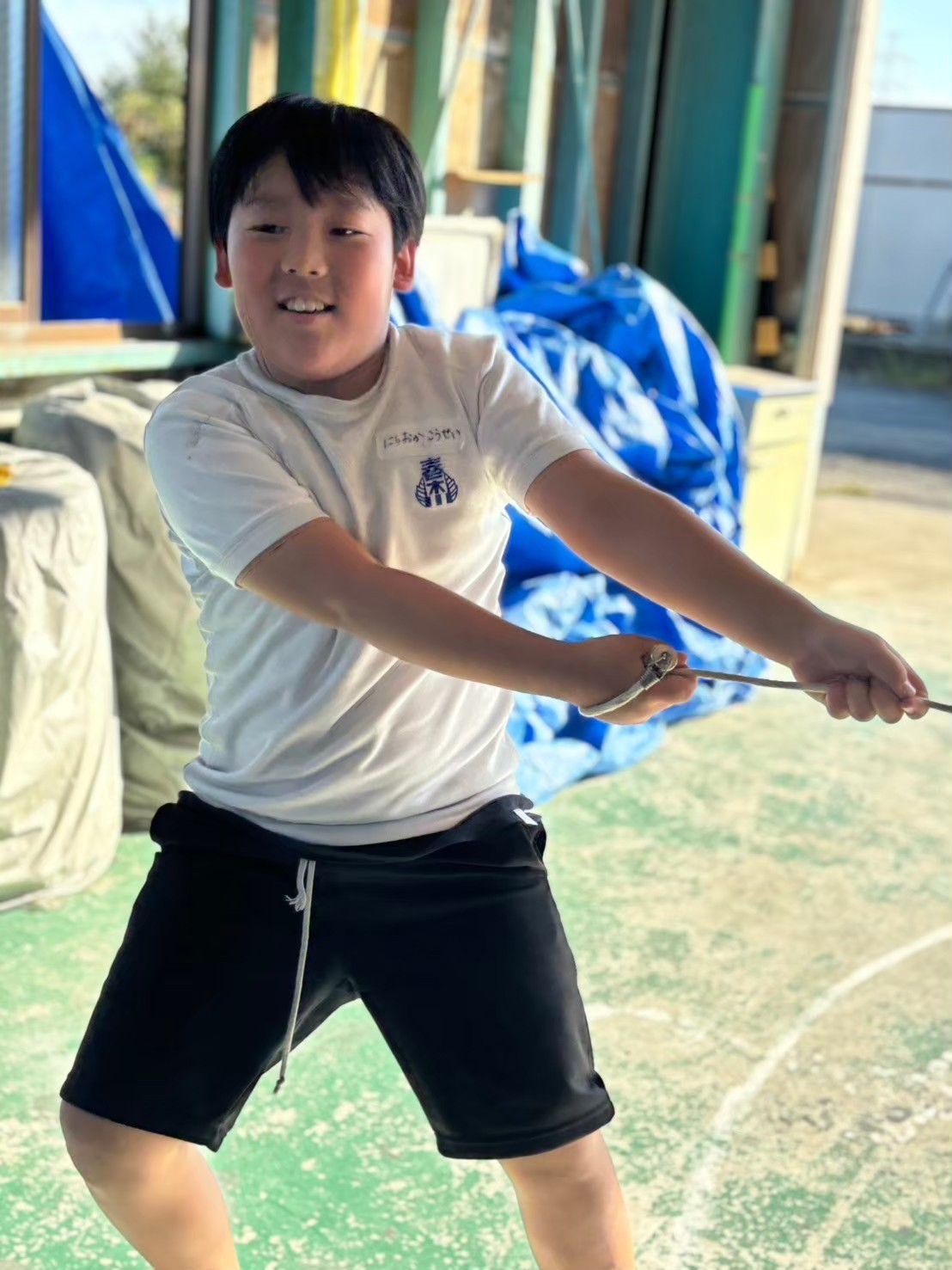 チームのみんなと息を合わせて「そーれ!そーれ!」一生懸命引っ張っていました🎶