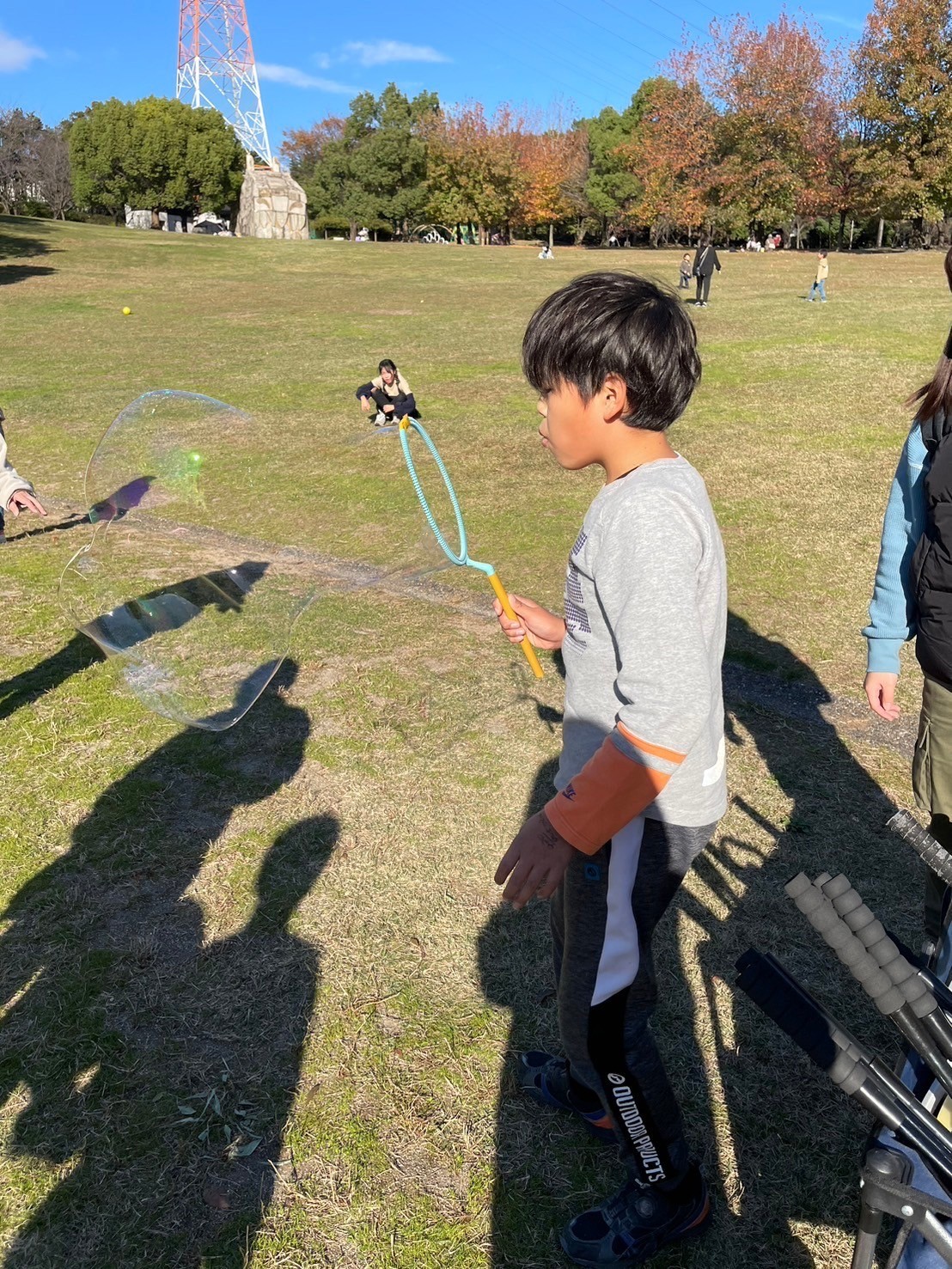 2025 01.10 ☆大府みどり公園☆ 東郷店, 豊明店 11/23(土)は、両店舗合同で大府みどり公園へ出かけました☆ この日はとっても天気が良く公園日和✨ 色々な遊具で遊んだり、追いかけっこ・森の探検をしたりして楽しみました✨ ひろ〜い芝生公園では、サッカーをしたり、シャボン玉をして遊びました🎶 時間いっぱい遊んだ後は、みんなでおやつを食べました✨ 大府みどり公園のアルバムはこちら!