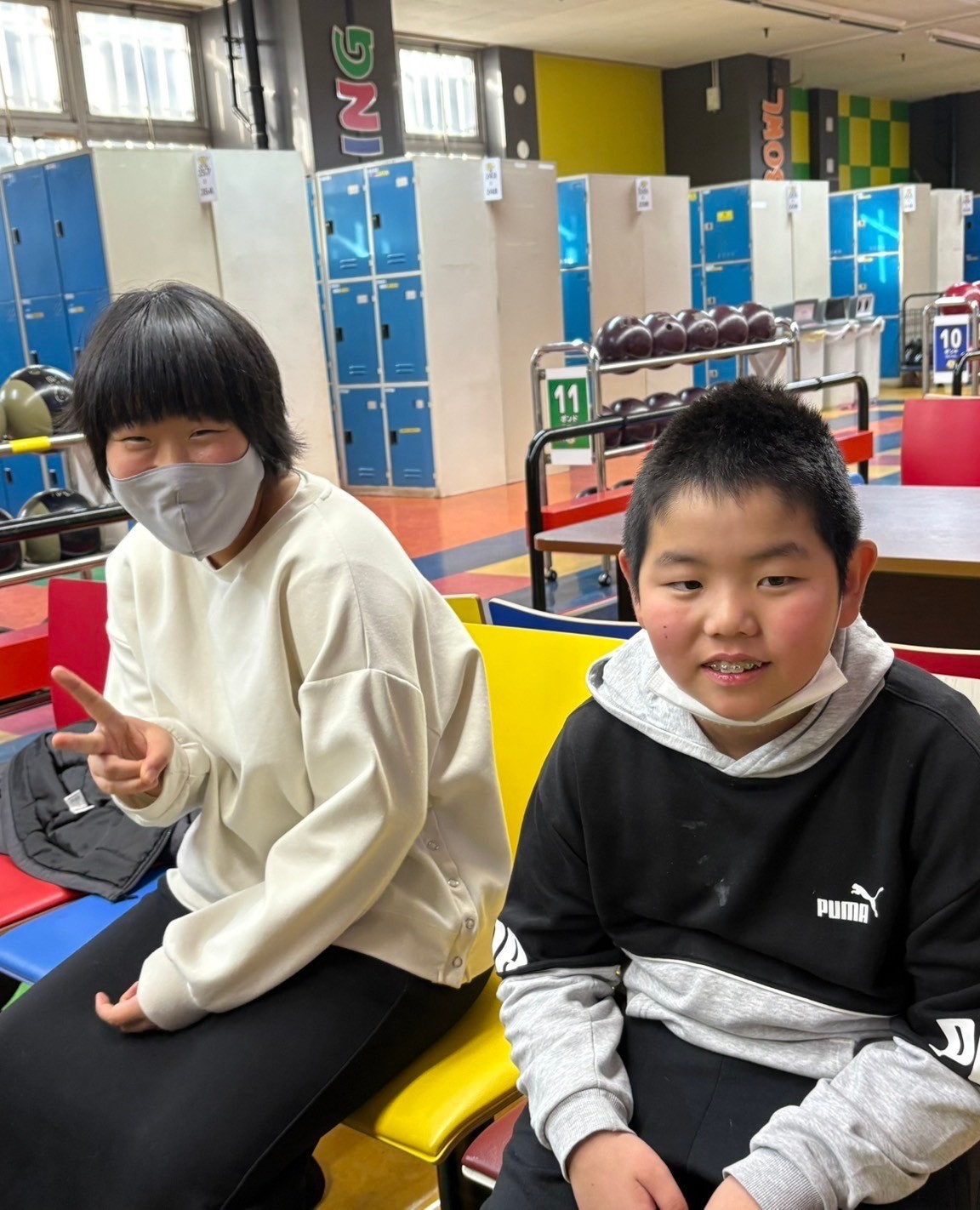 みんなとっても楽しんでいました🎶スペアやストライクが出た際には、同じグループの子