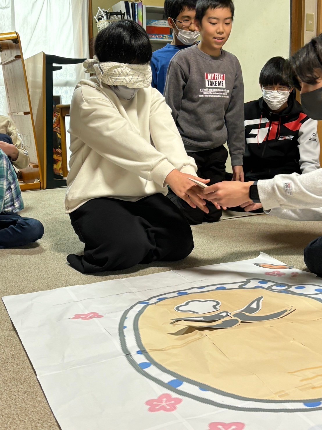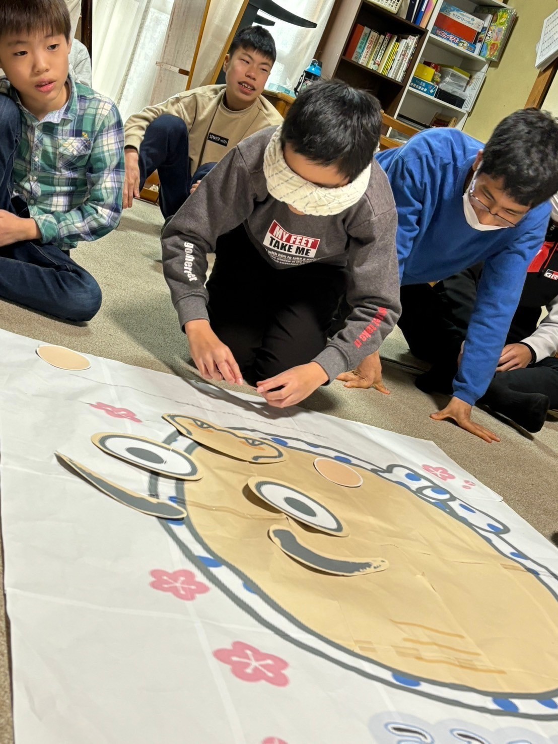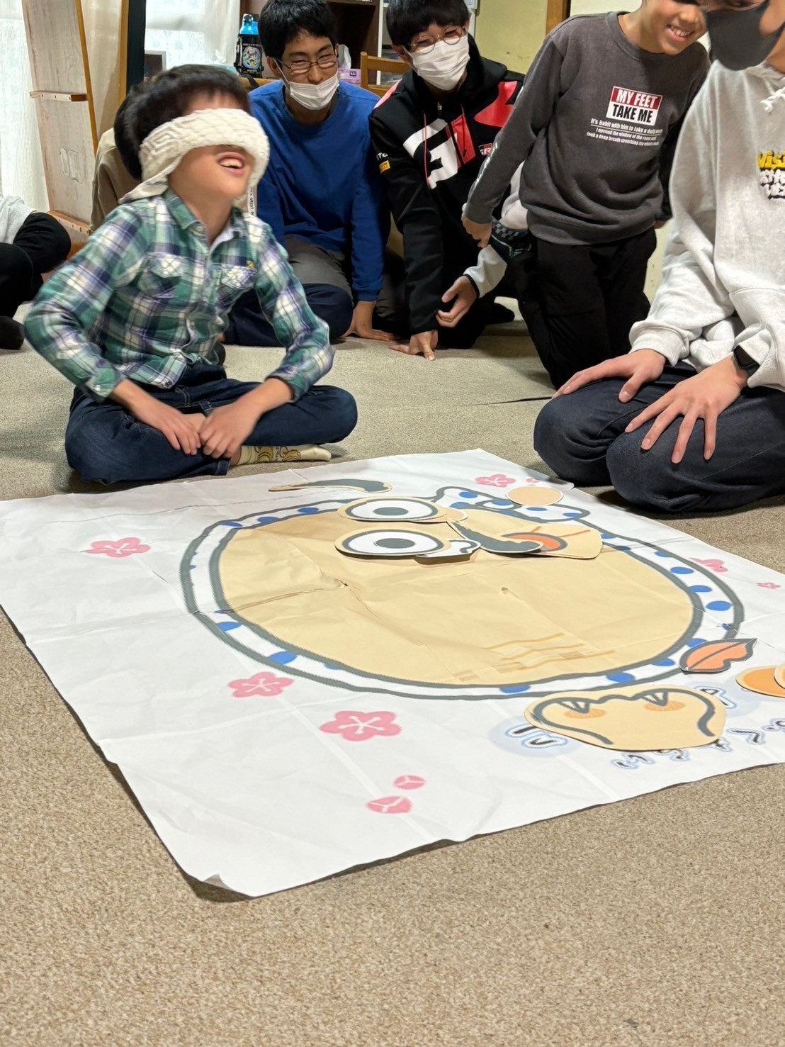 豊明は、午後から巨大福笑いをして遊びました🎶