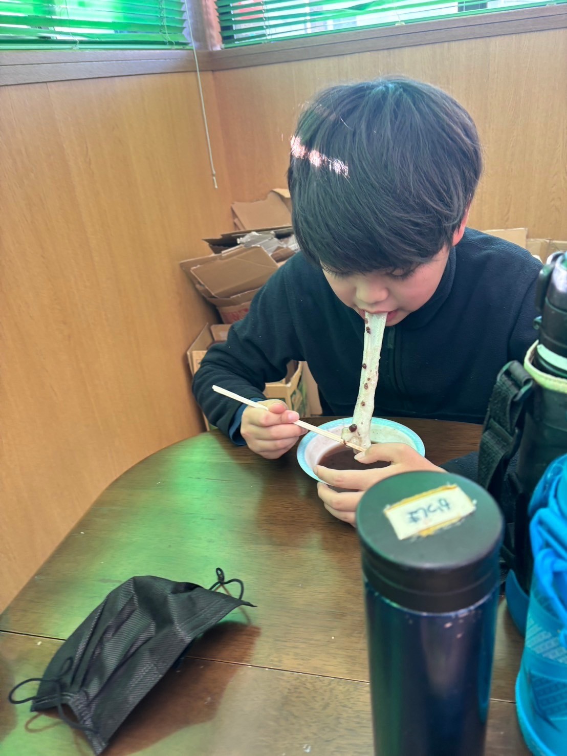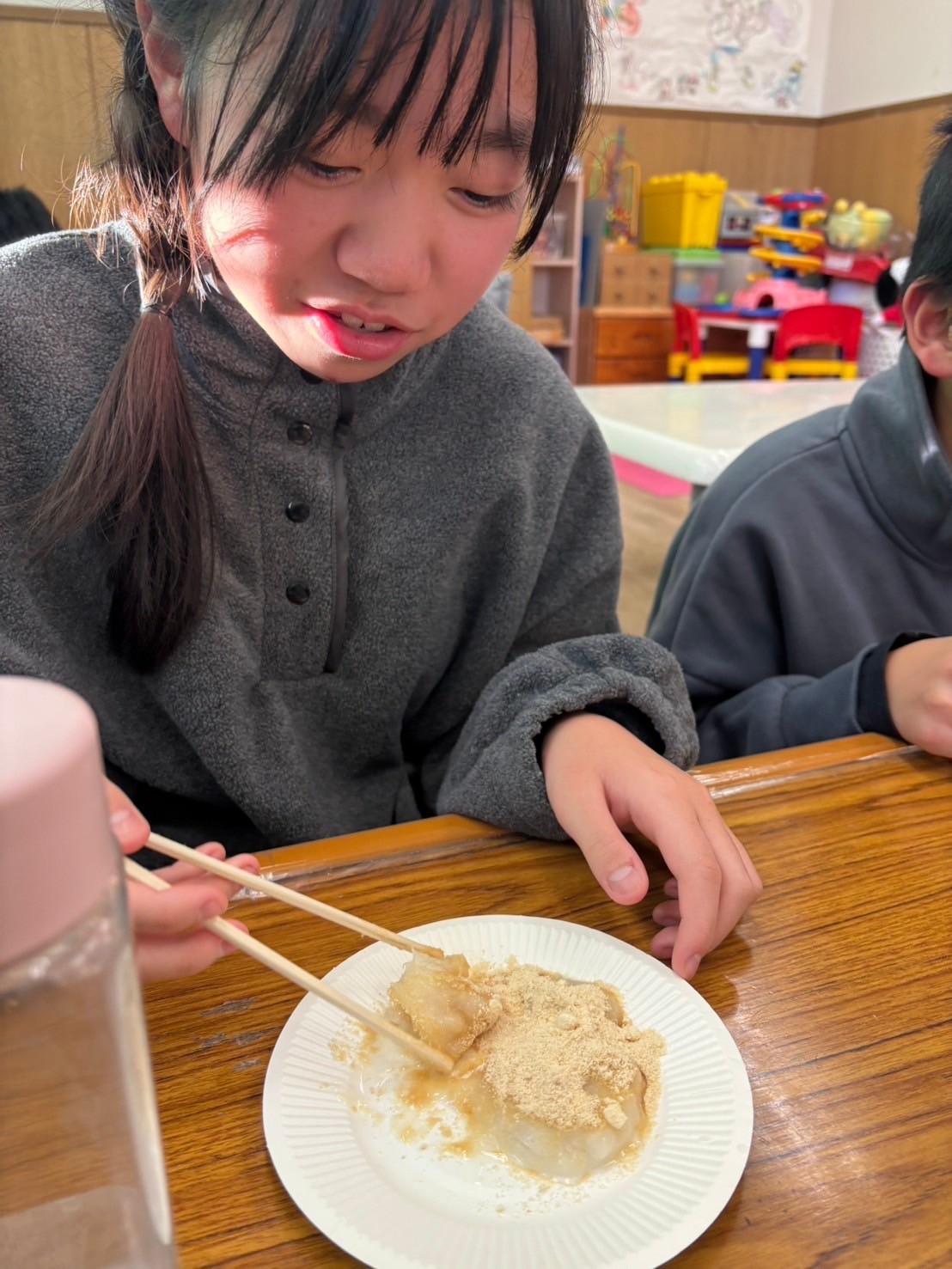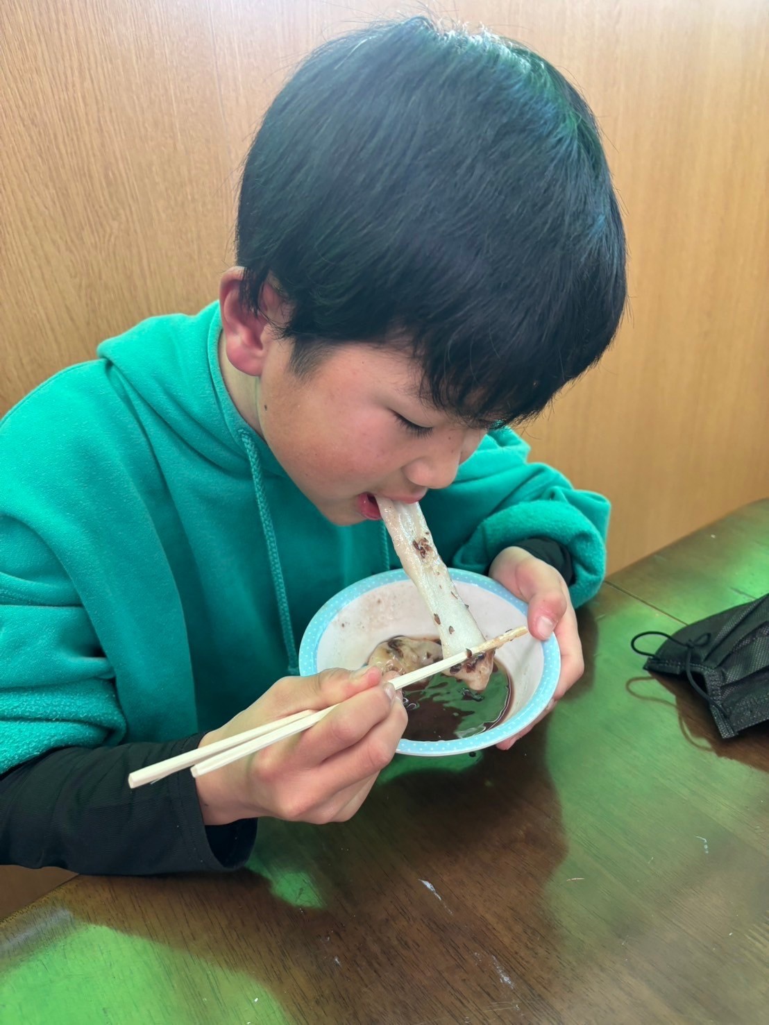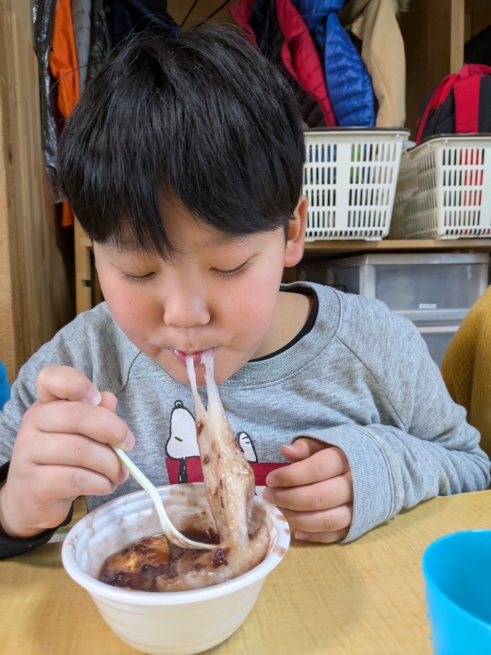 ぜんざいが苦手な児童は、きなこをかけて食べました😆