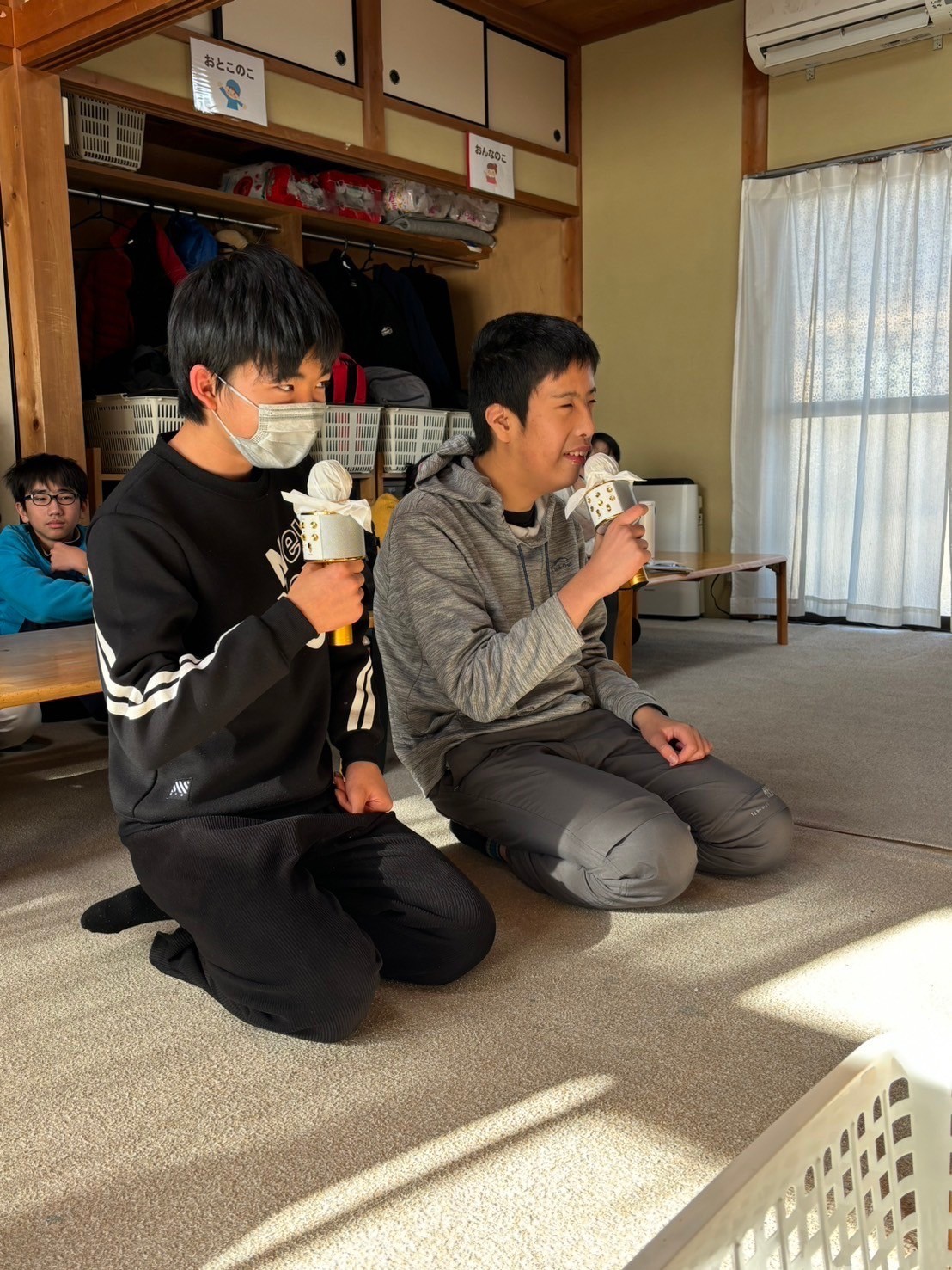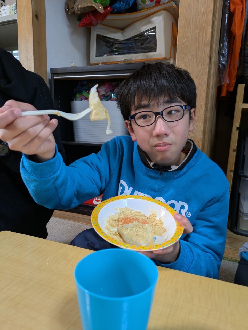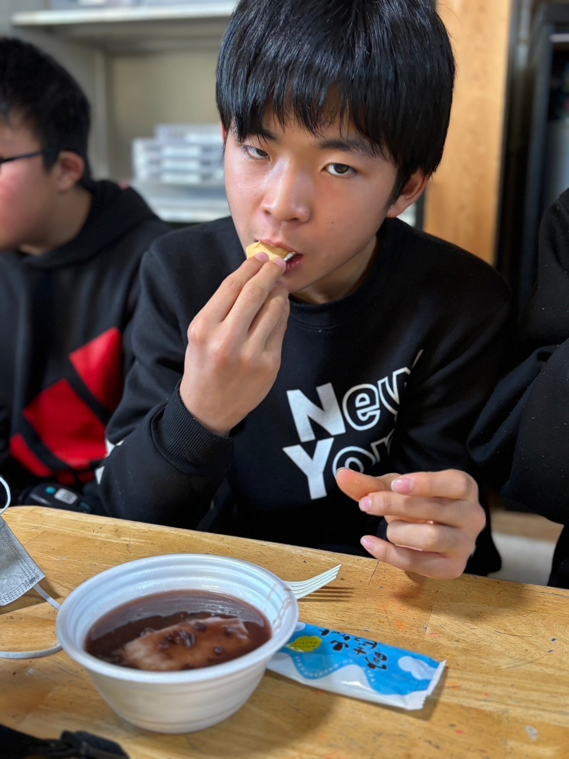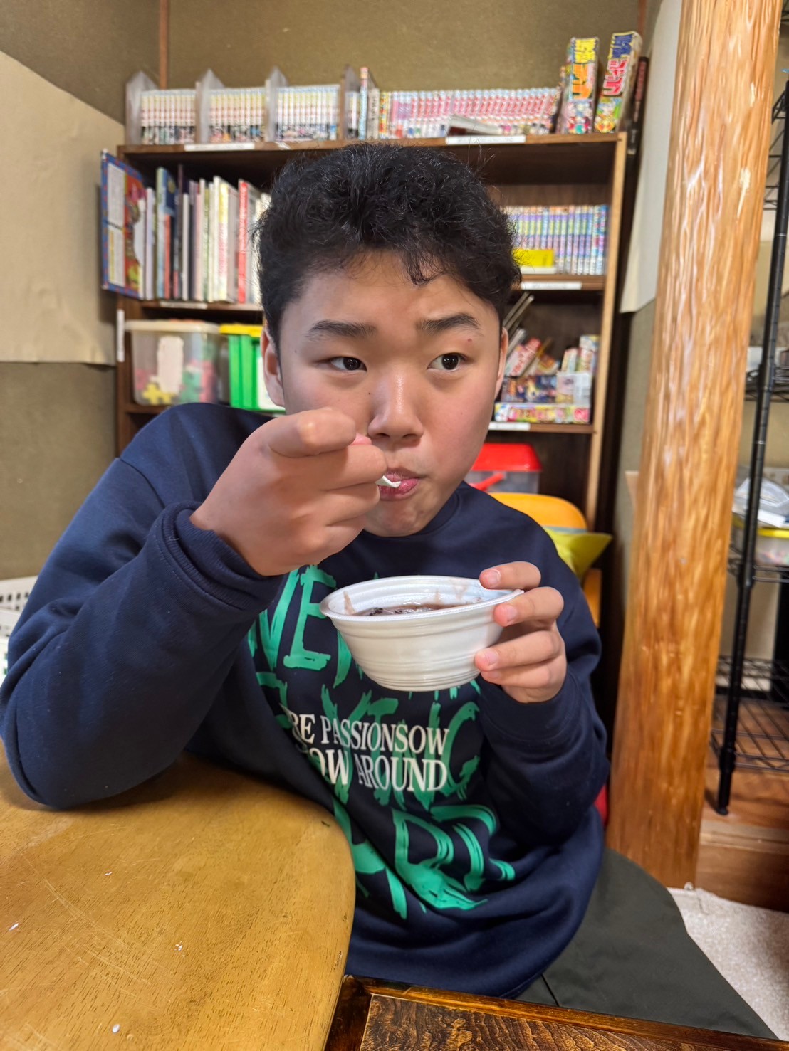 ぜんざいが苦手な児童は、きなこをかけて食べました😆