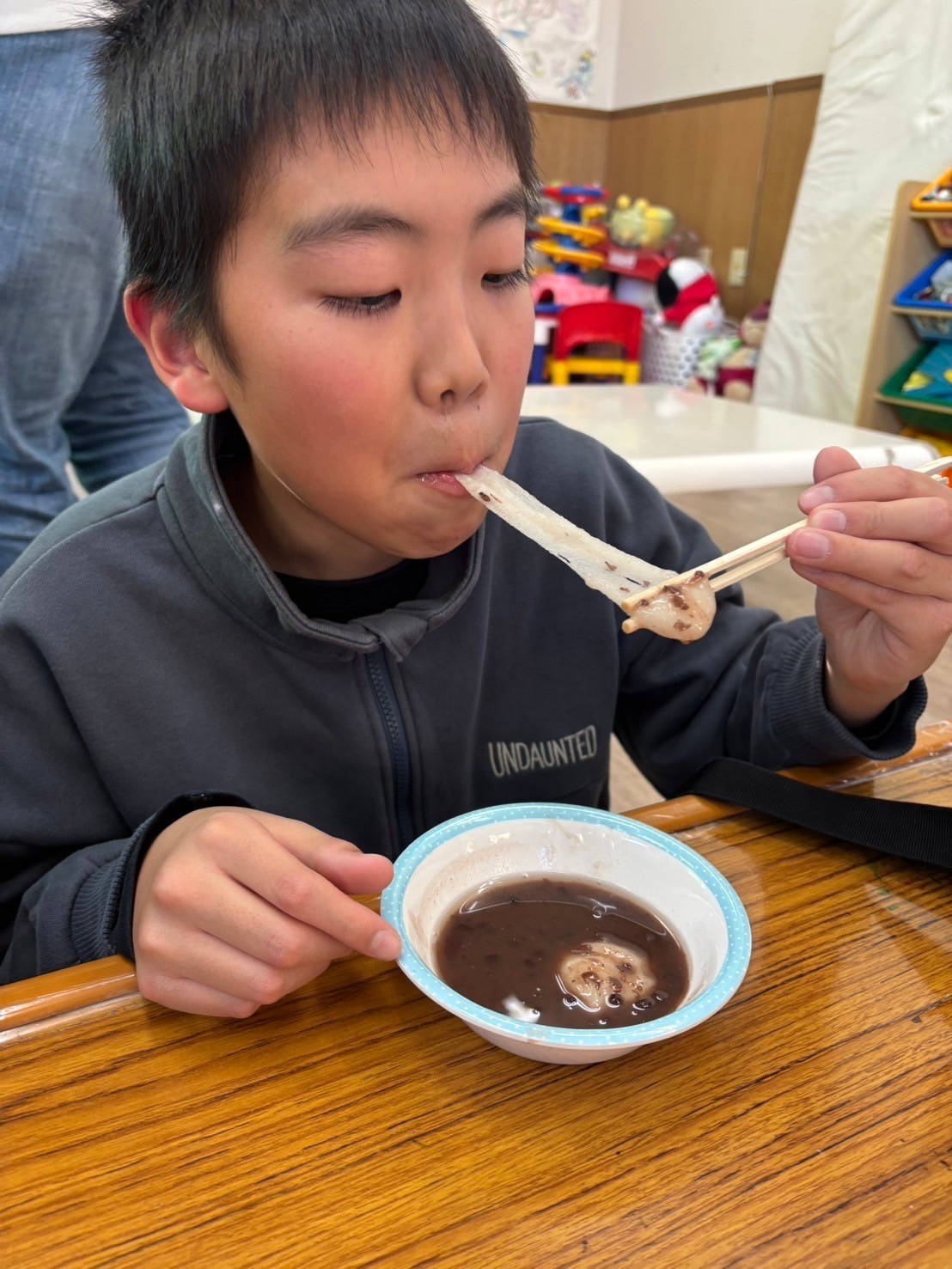 この日は鏡開きということで、おやつにぜんざいを食べました!
