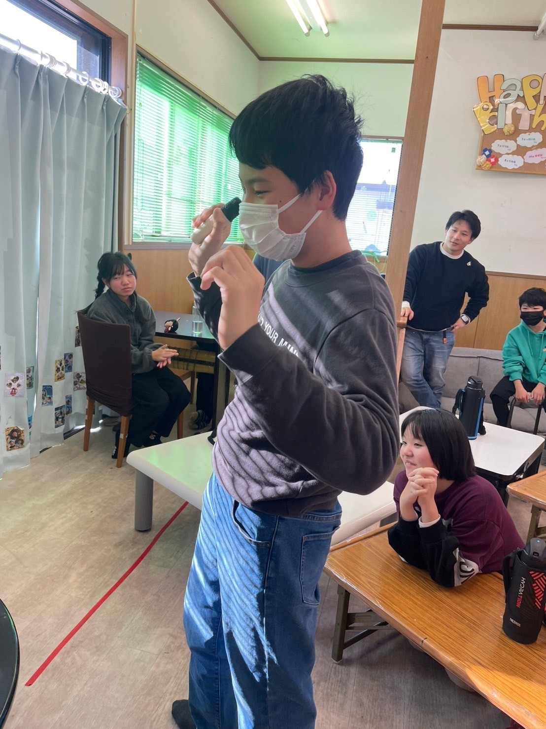 1人2〜3曲好きな曲をリクエストし、みんなの前にでて歌います!