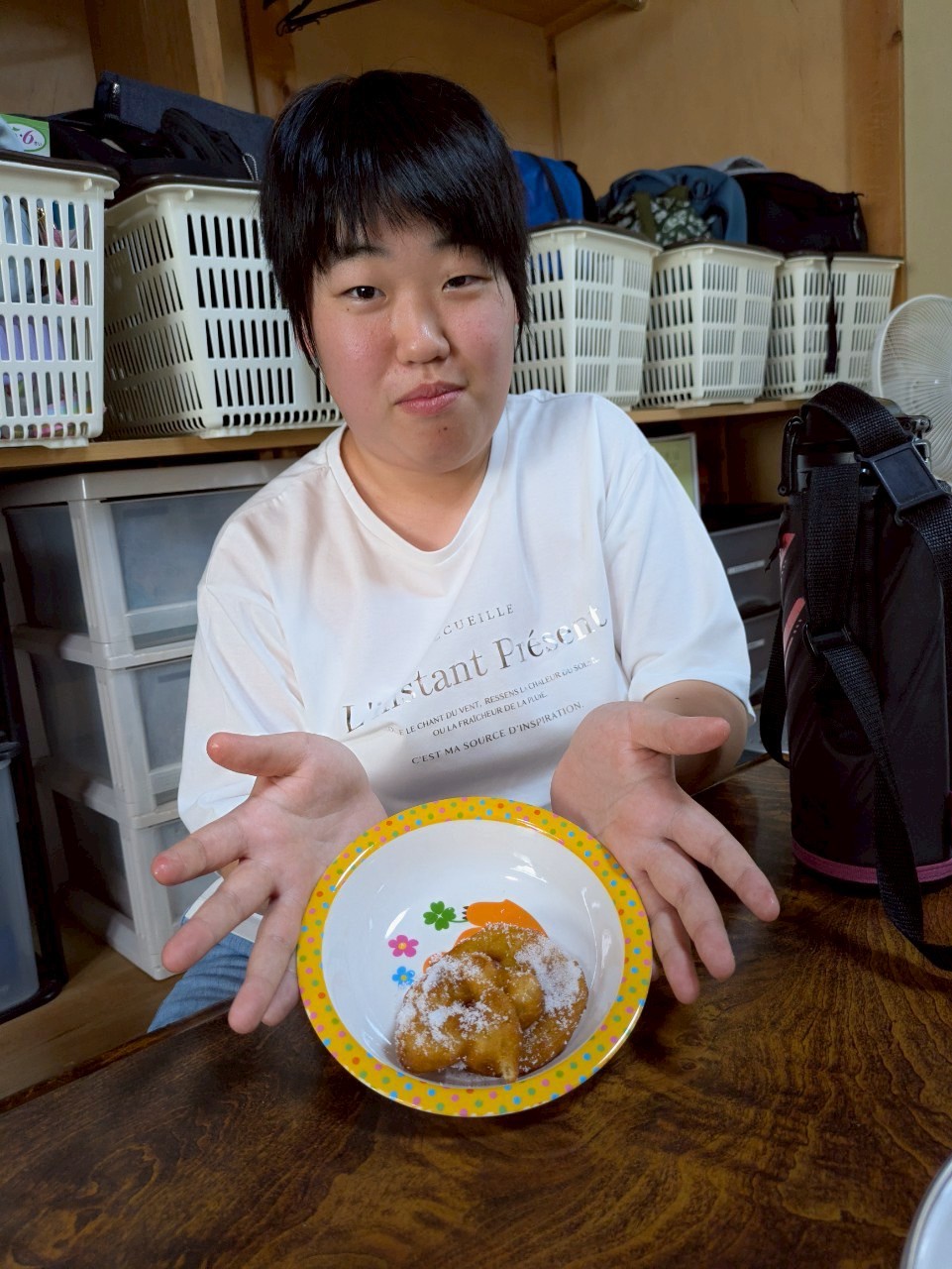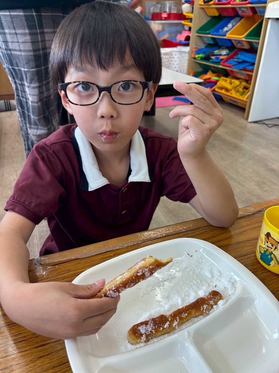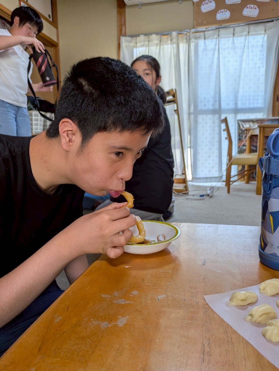 外はこんがり、中はもちっとしていて、みんな「美味しい〜!」と大好評🎶