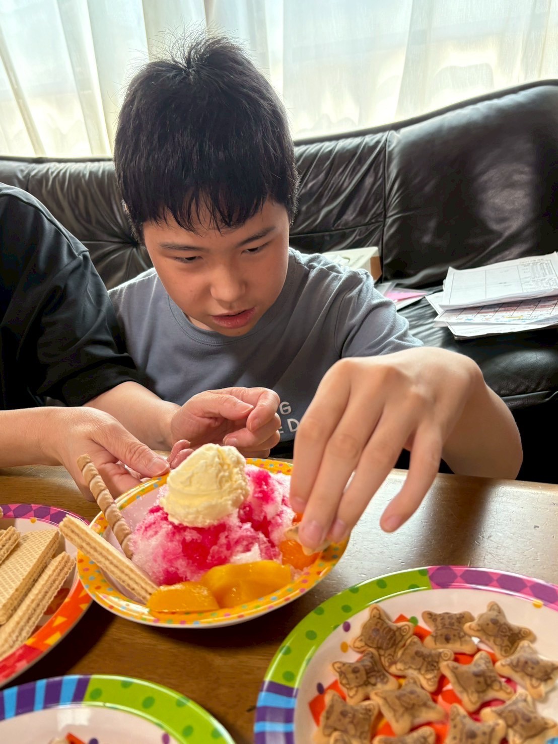 7/31(木)は、豊明はおやつにDXかき氷作りをしました☆