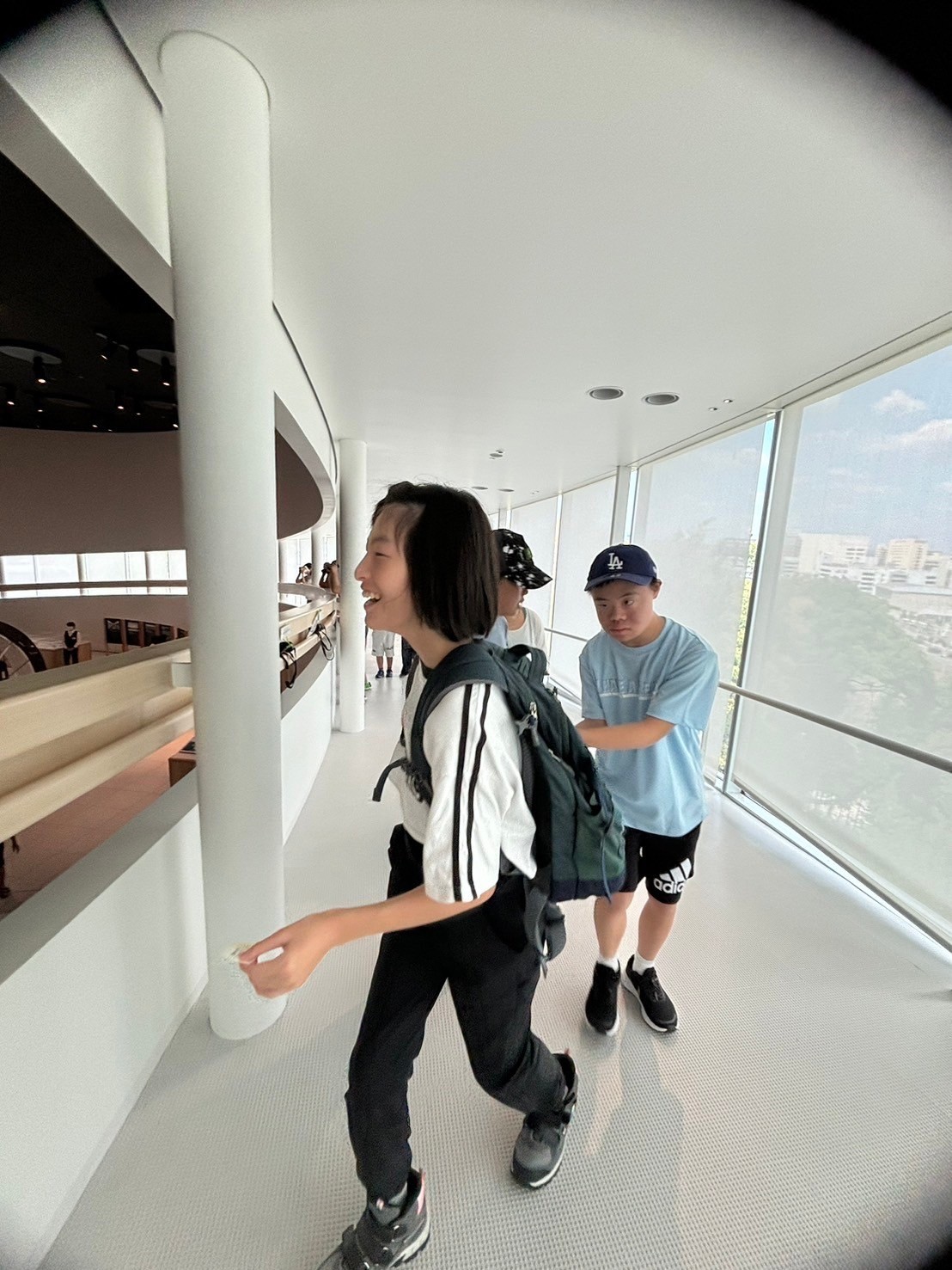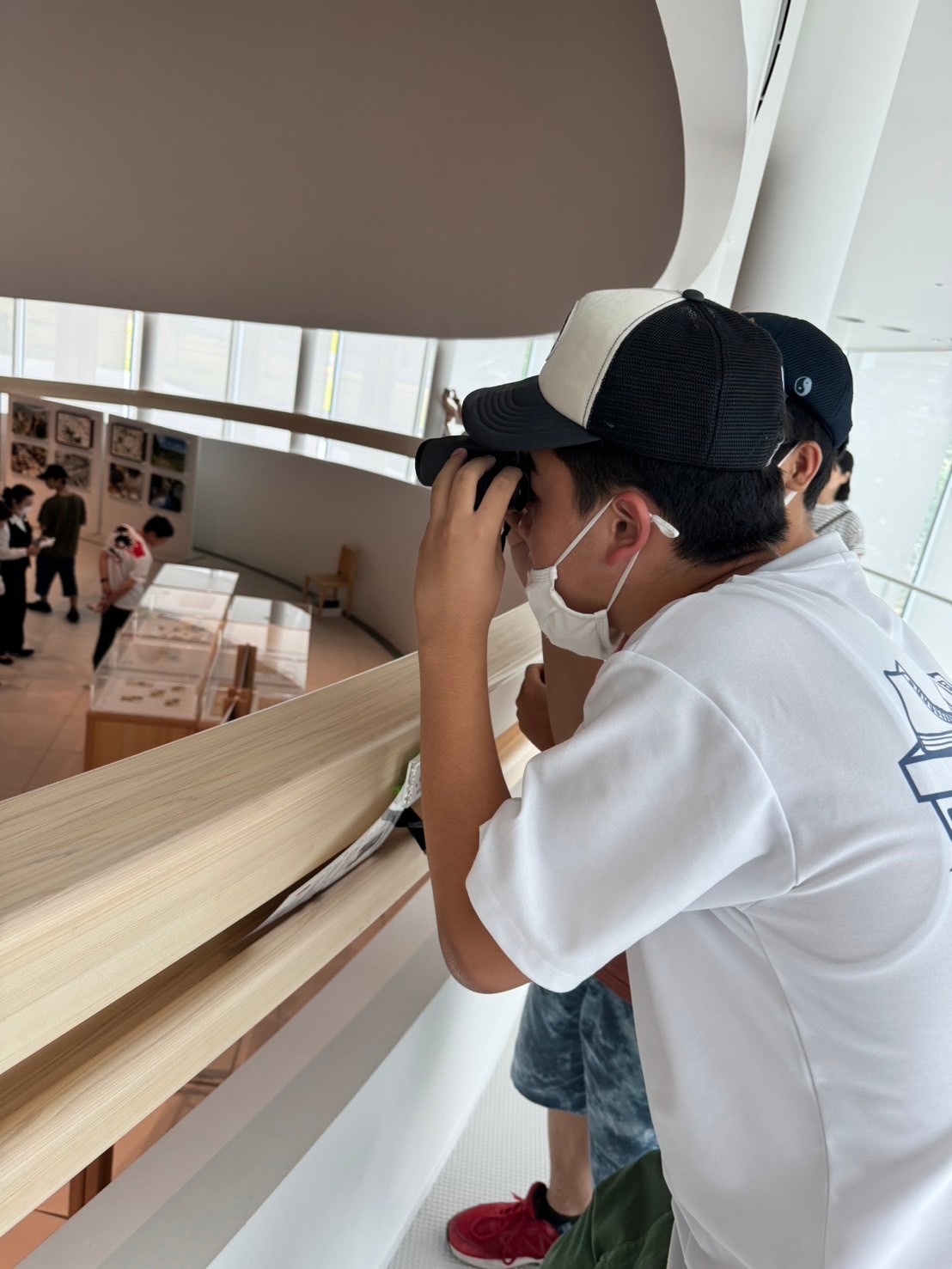 2Fへ続くスロープには、双眼鏡があり、中央の展示棚をズームして見ることができました✨