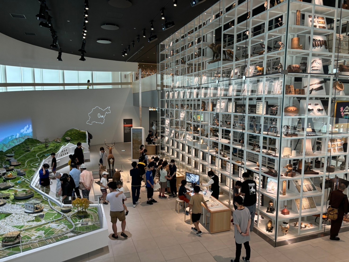 1Fの展示フロアに入ると、正面に大きな展示棚が✨