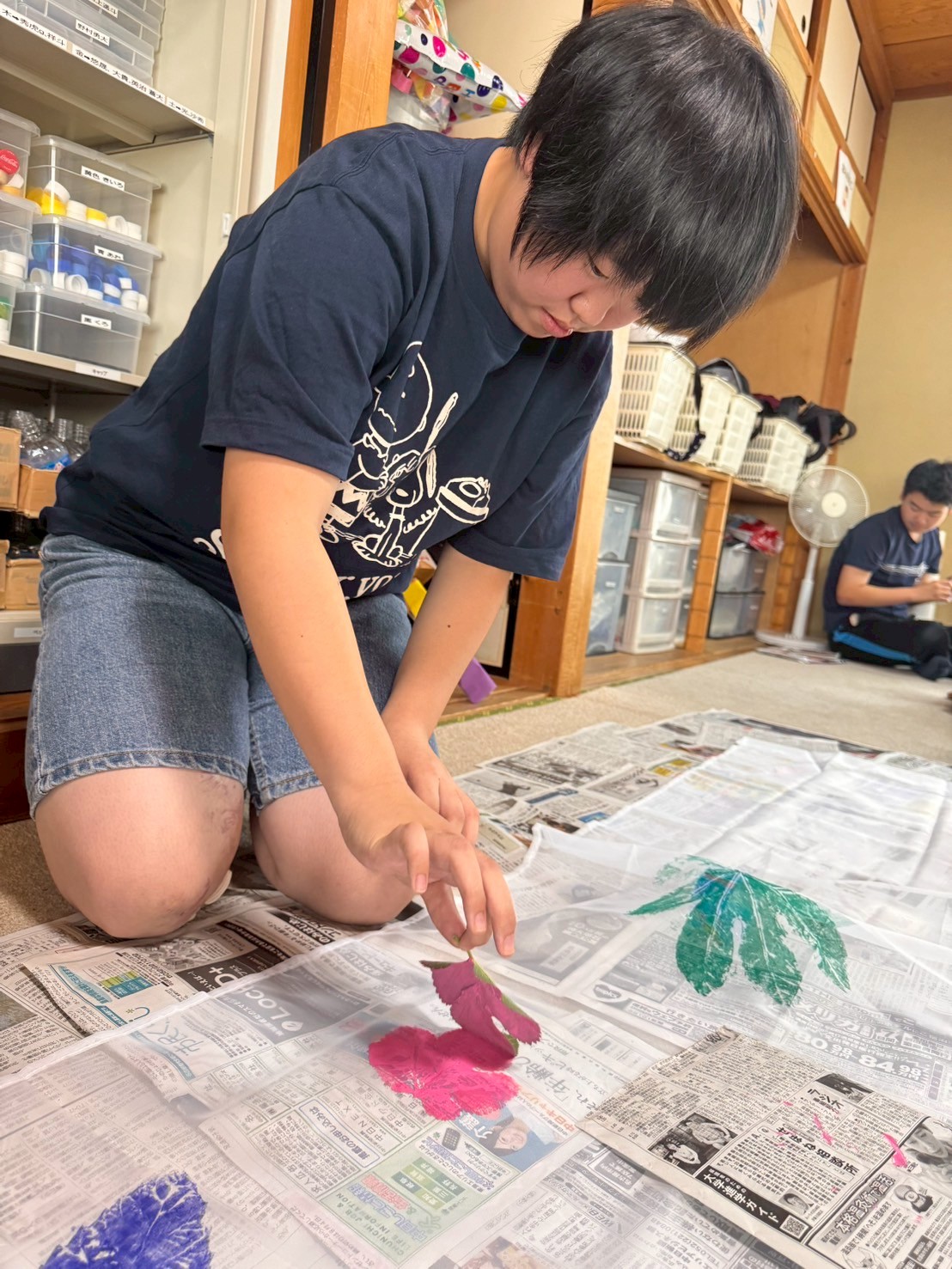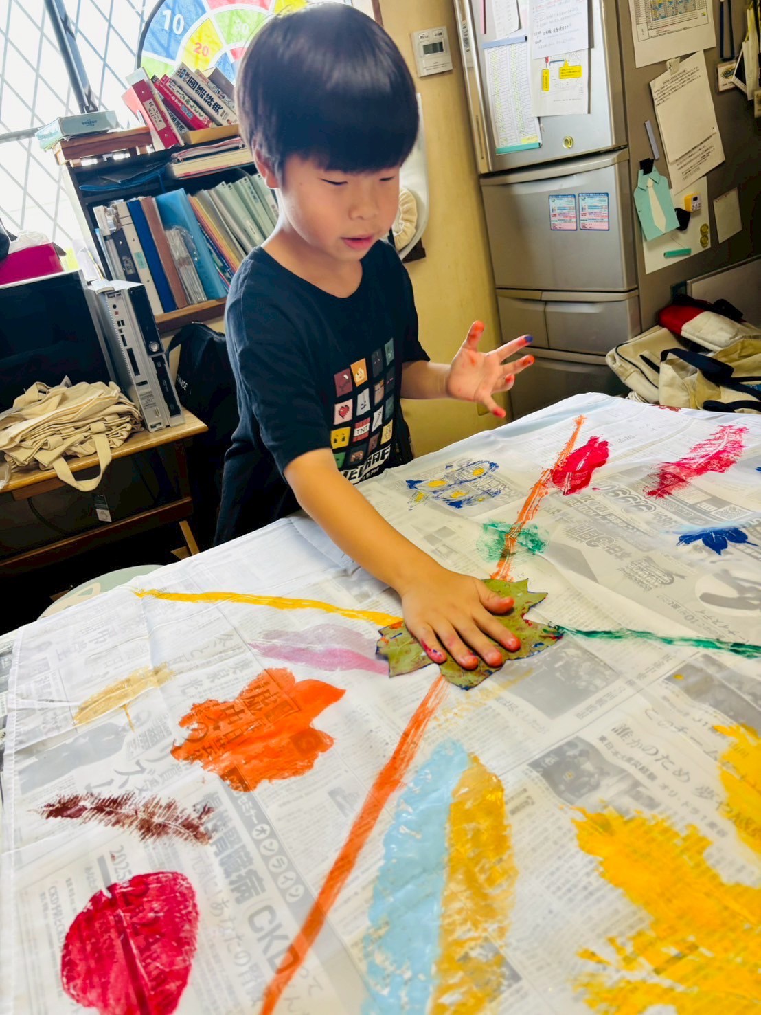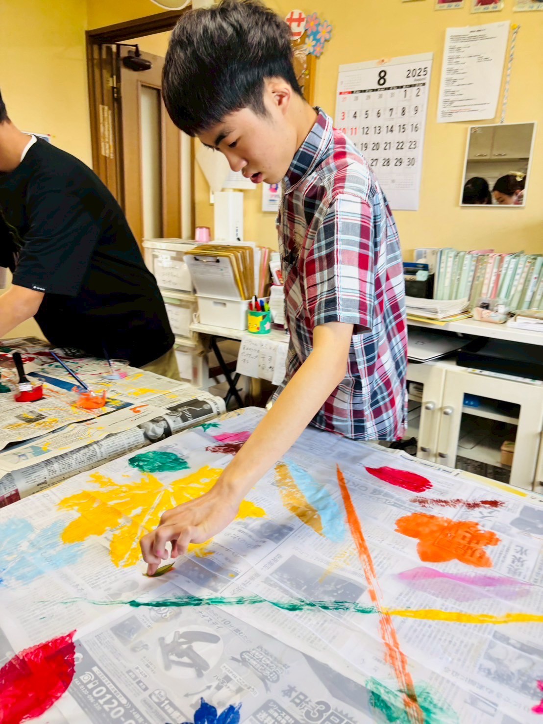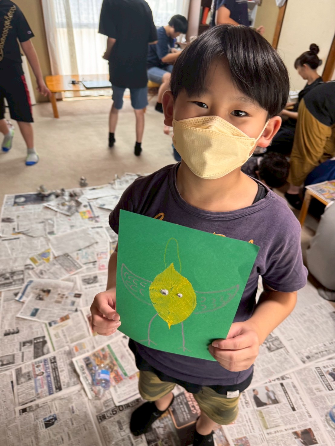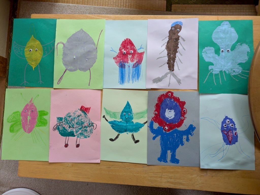 2025 08.13 ☆葉っぱアート☆ 東郷店, 豊明店 8/7(木)は、葉っぱアートの作成をしました☆ 色々な種類の中から好きな形の葉っぱを選び、絵の具で葉全体に色をのせてスタンプ!! みんなとっても上手で、素敵な柄に仕上がりましたよ🤗 豊明では、画用紙に葉っぱをスタンプしてアートを作成✨ 葉っぱの形に合わせて、手を描いたり、目ん玉のシールを貼ったりしてアレンジ! おもしろかわいい素敵なアートに仕上がりました🎶 お部屋に飾ってみてね😆 アルバムはこちら↓ 8/7(木)葉っぱアート