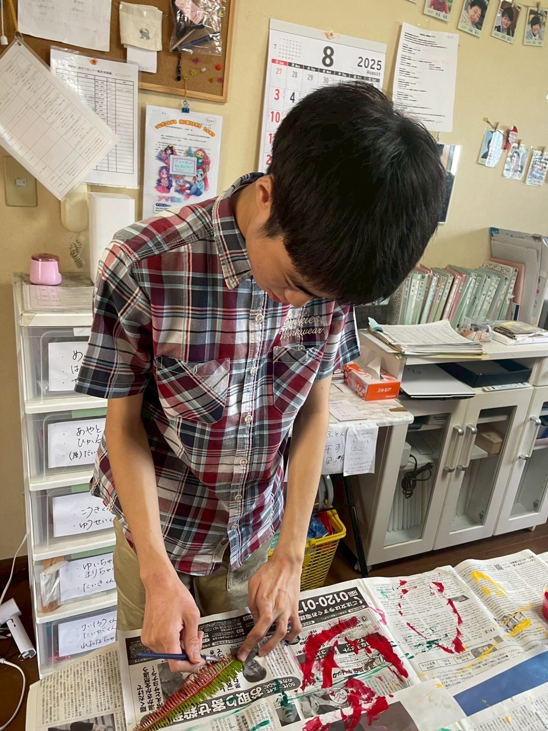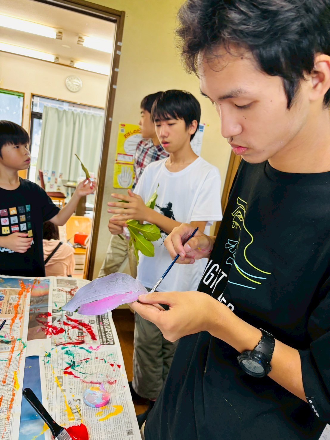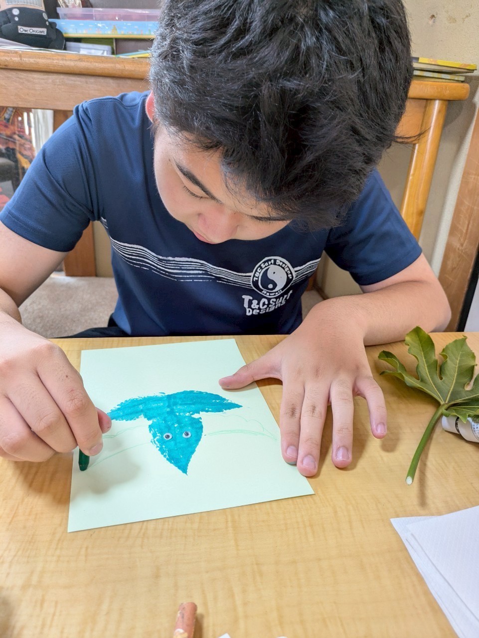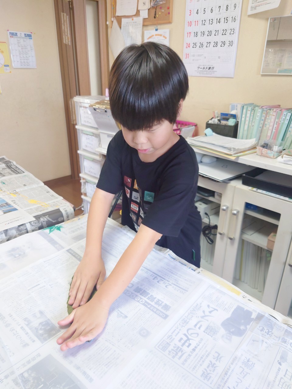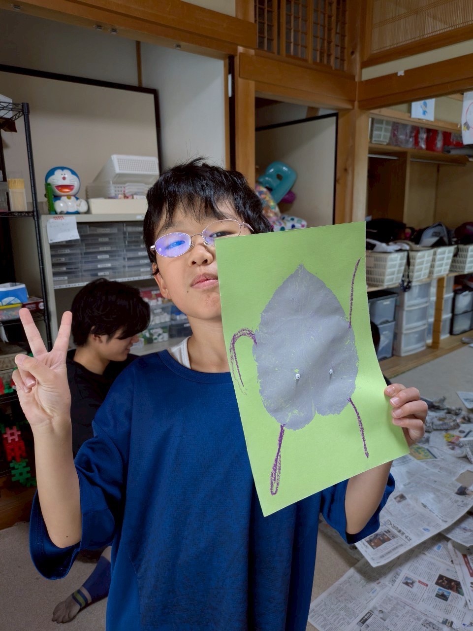 2025 08.13 ☆葉っぱアート☆ 東郷店, 豊明店 8/7(木)は、葉っぱアートの作成をしました☆ 色々な種類の中から好きな形の葉っぱを選び、絵の具で葉全体に色をのせてスタンプ!! みんなとっても上手で、素敵な柄に仕上がりましたよ🤗 豊明では、画用紙に葉っぱをスタンプしてアートを作成✨ 葉っぱの形に合わせて、手を描いたり、目ん玉のシールを貼ったりしてアレンジ! おもしろかわいい素敵なアートに仕上がりました🎶 お部屋に飾ってみてね😆 アルバムはこちら↓ 8/7(木)葉っぱアート