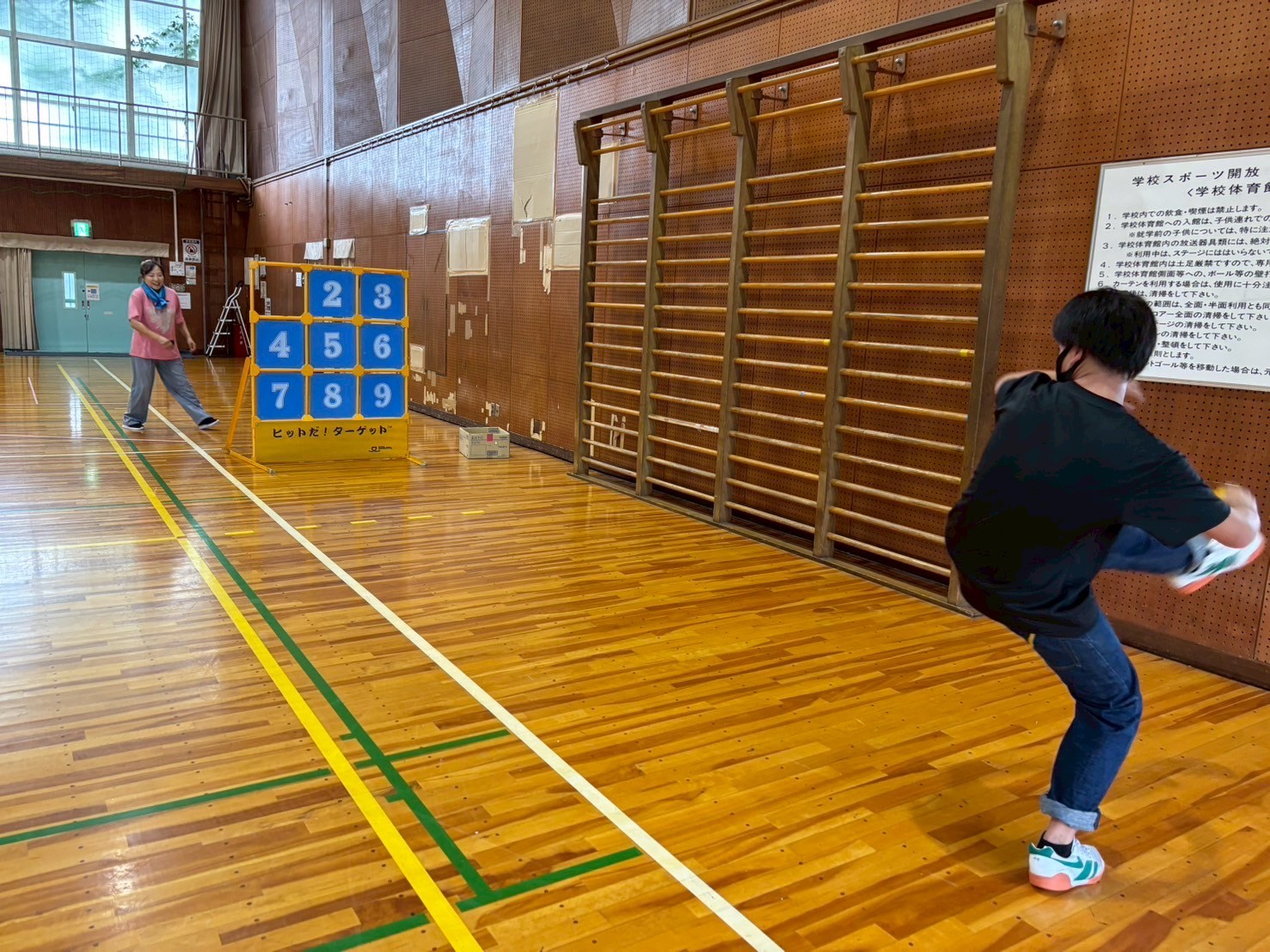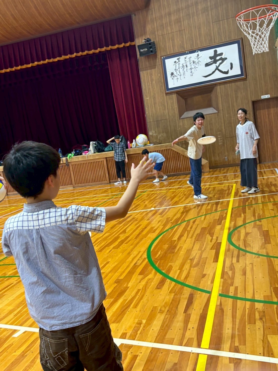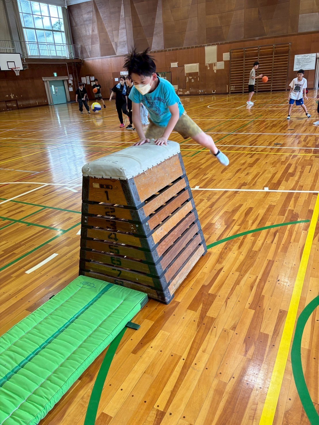 この日は、バスケットボールやフリスビー・バトミントン・とび箱などなど色々なスポーツにチャレンジし、