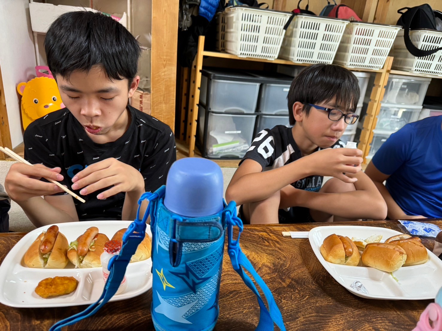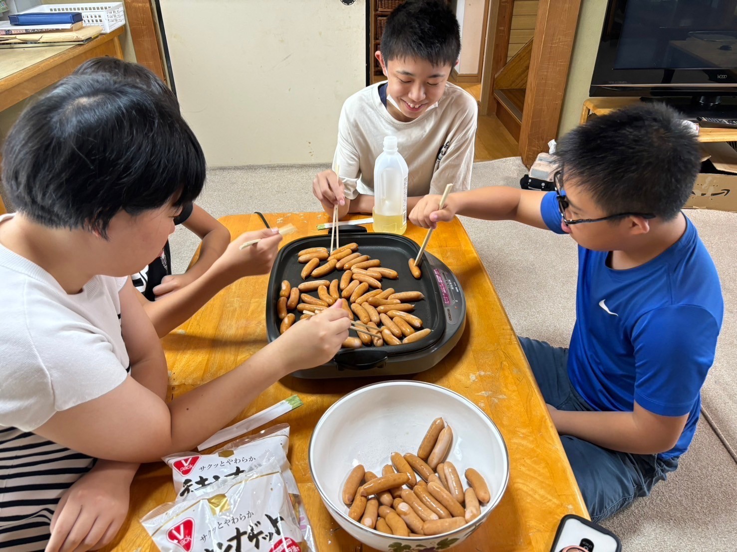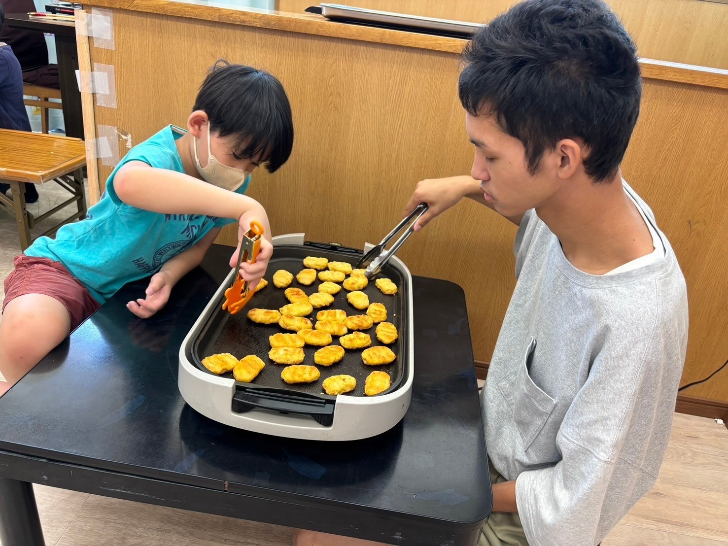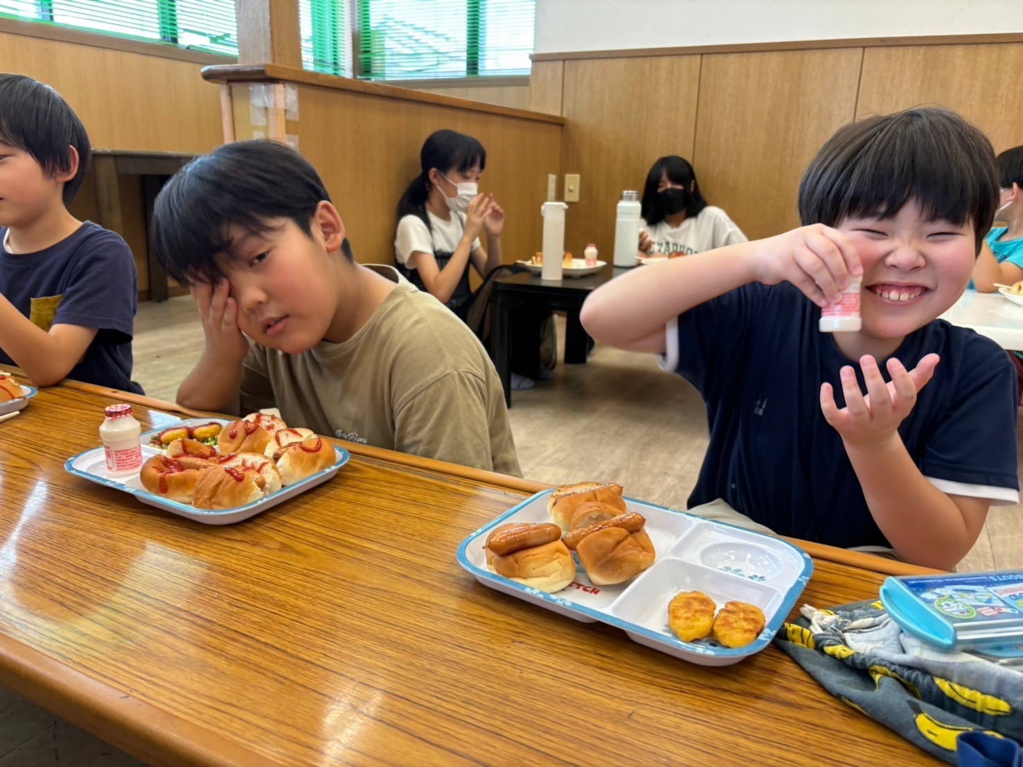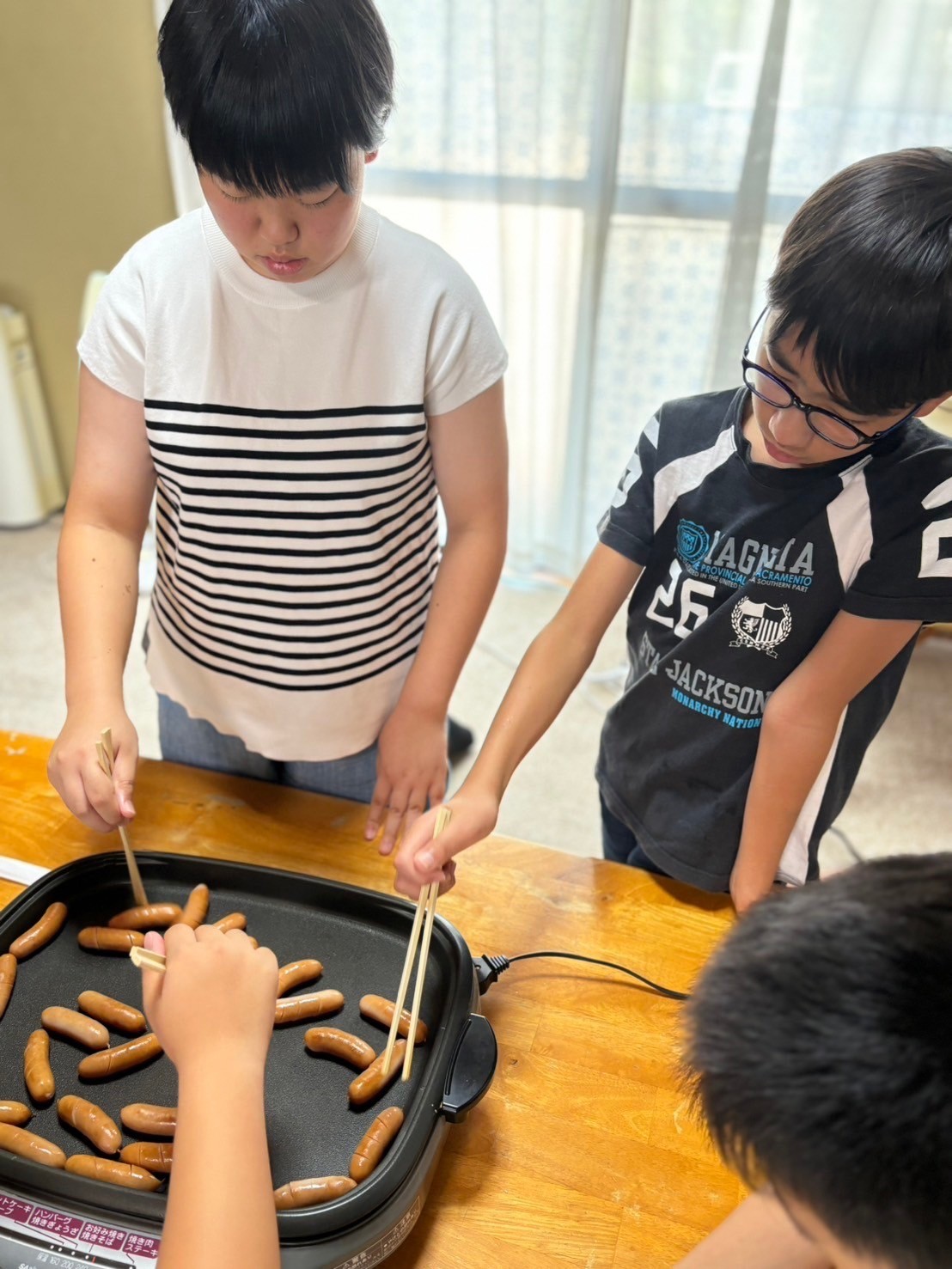 じゅ〜!と美味しそうな音に、「早く食べたい!」と待ちきれない様子の児童たちです😊
