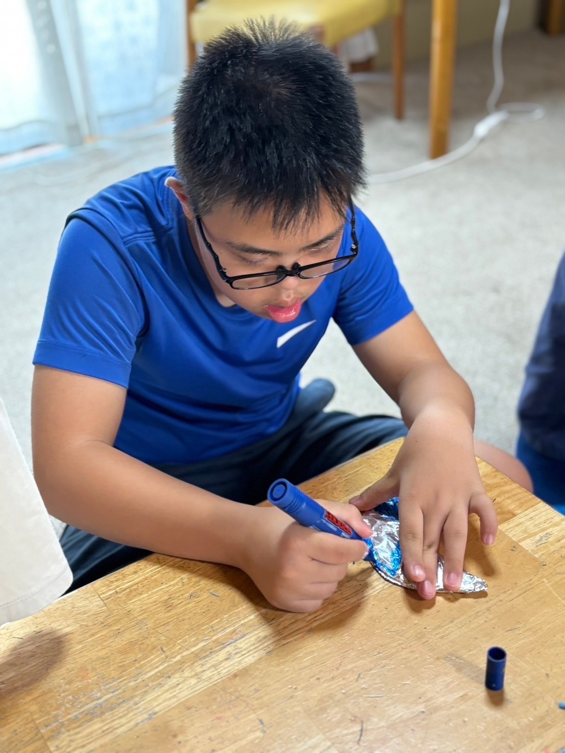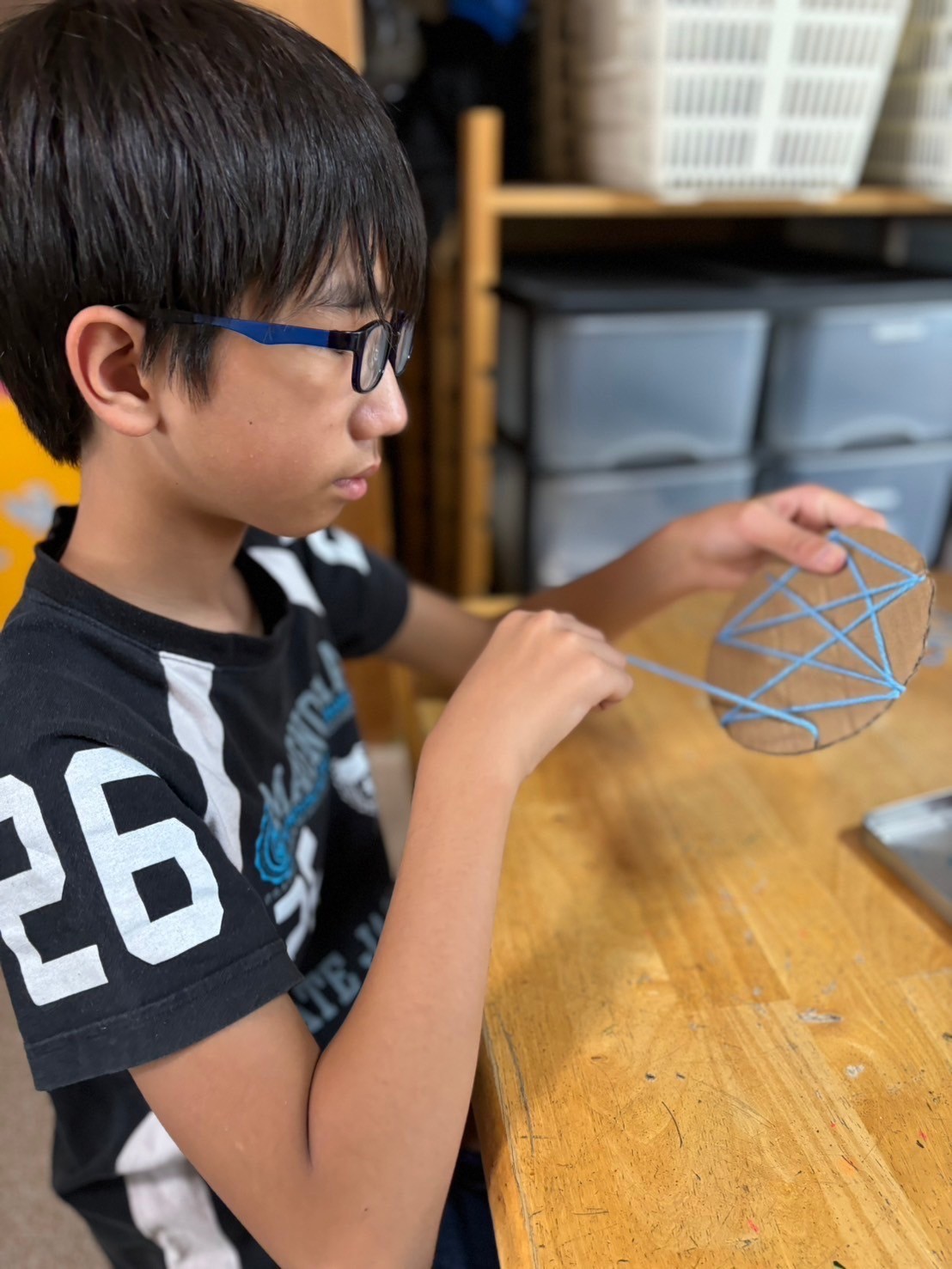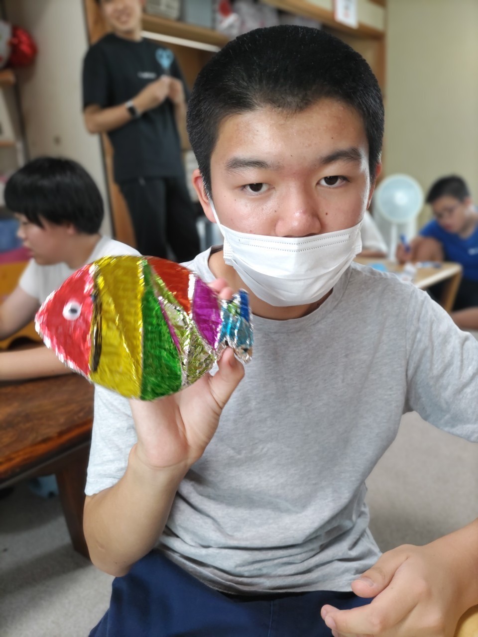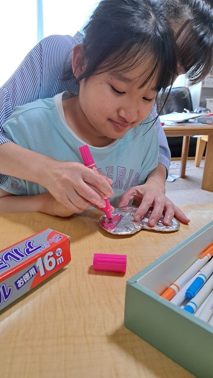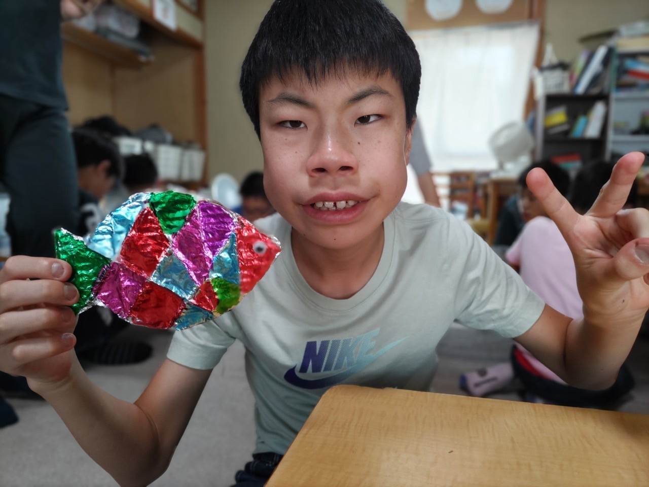 豊明は、午後からアルミホイルを使ってステンドグラスアートを作りました⭐️