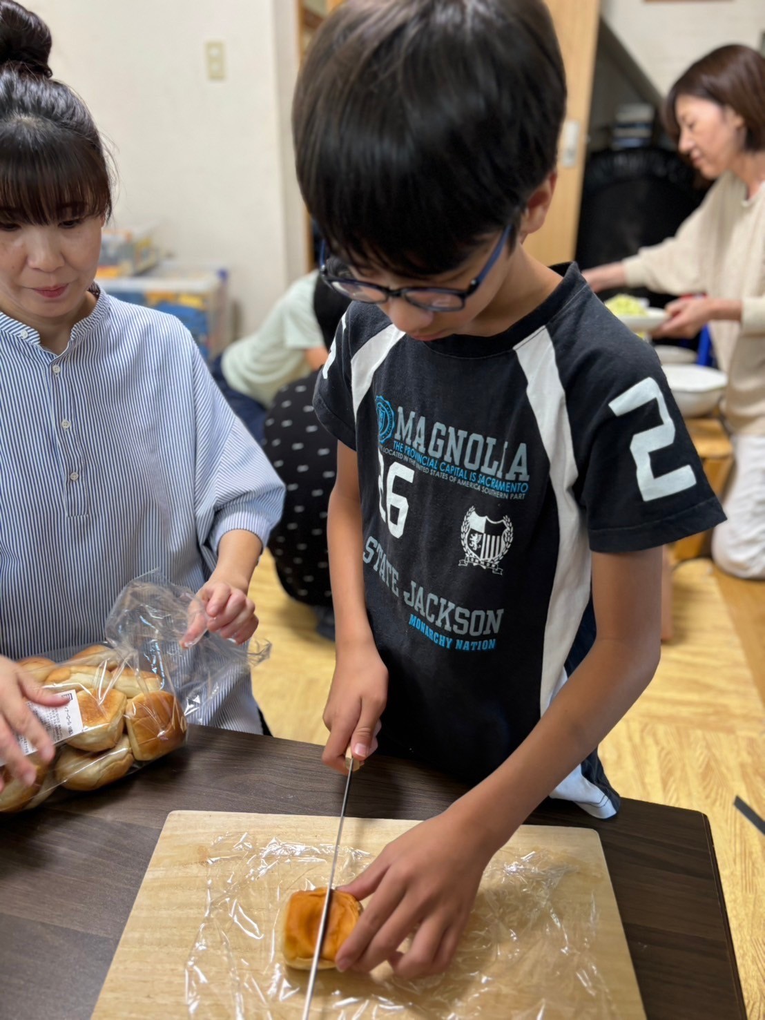 具材が準備できたら、順番にホットドッグを作って行きます!