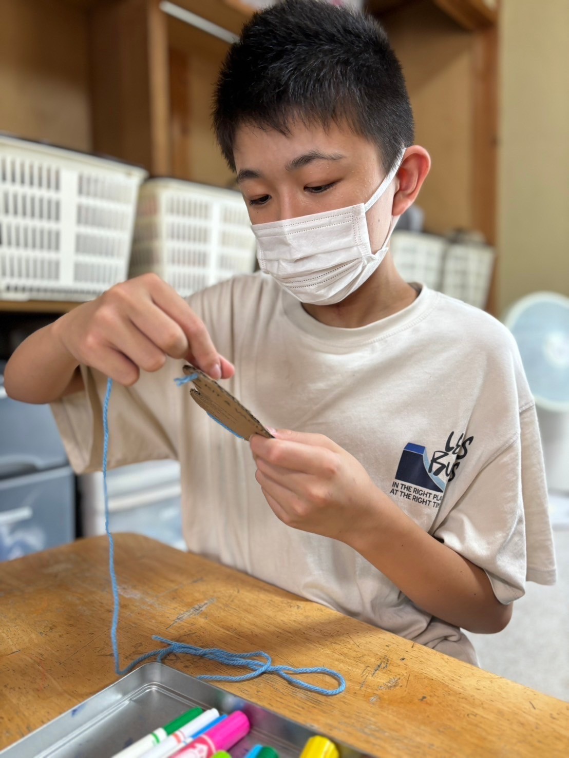周りに切れ込みをいれ、毛糸を好きな順番で通して行きます!