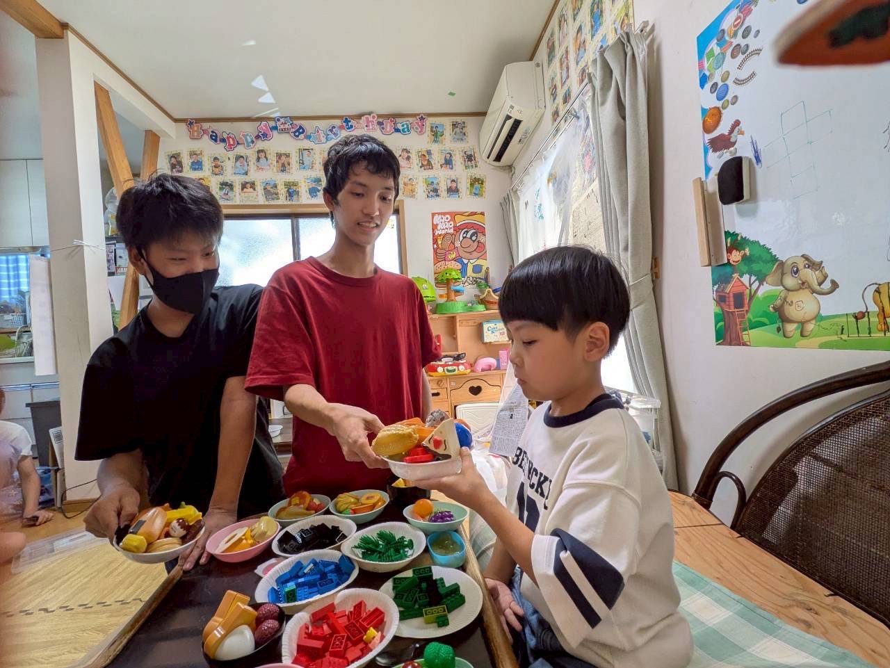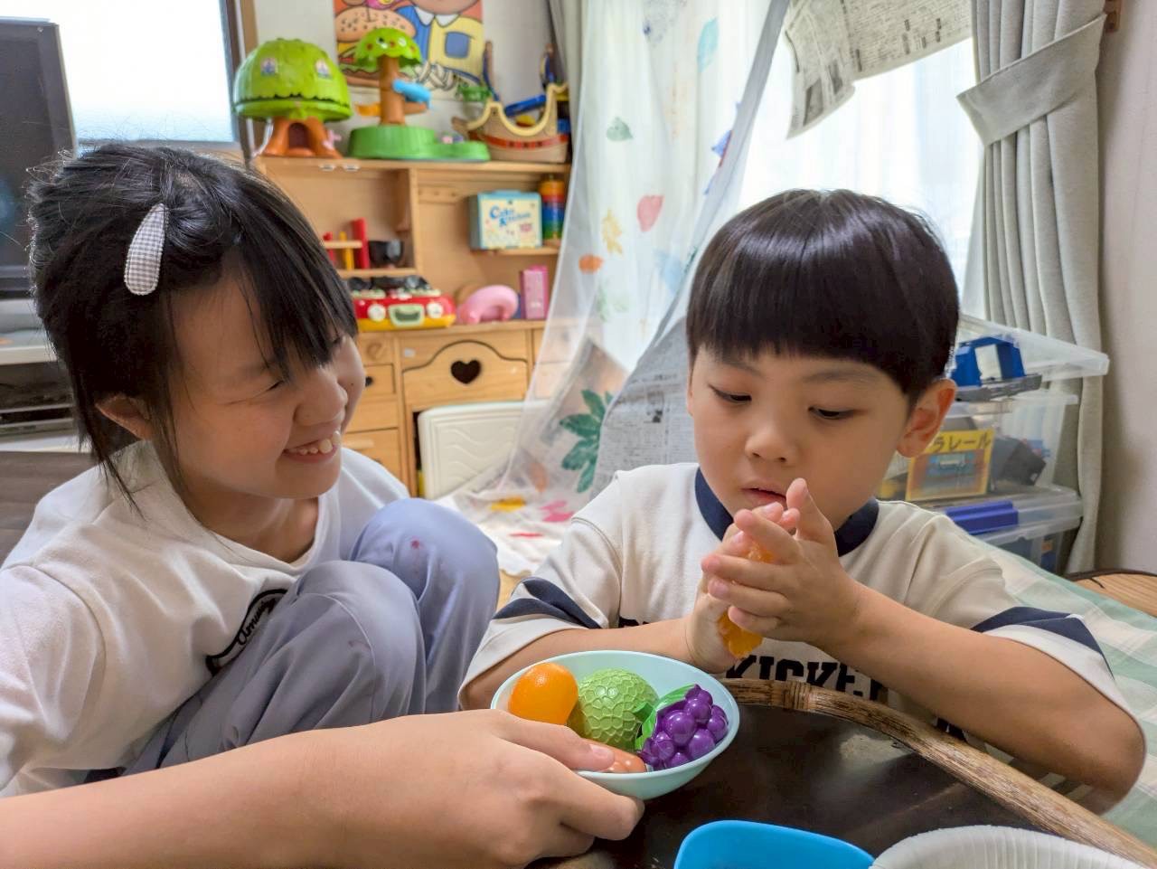 豊明では、はるま君の大好きなおままごとをしてみんなで遊びました😊