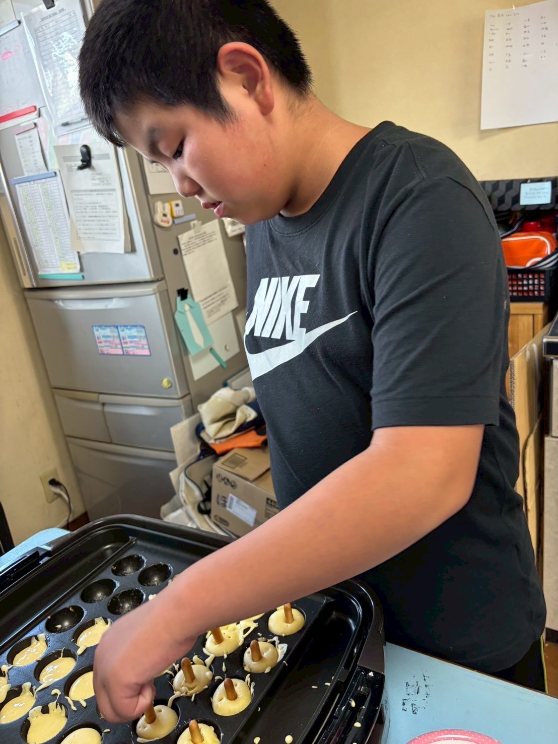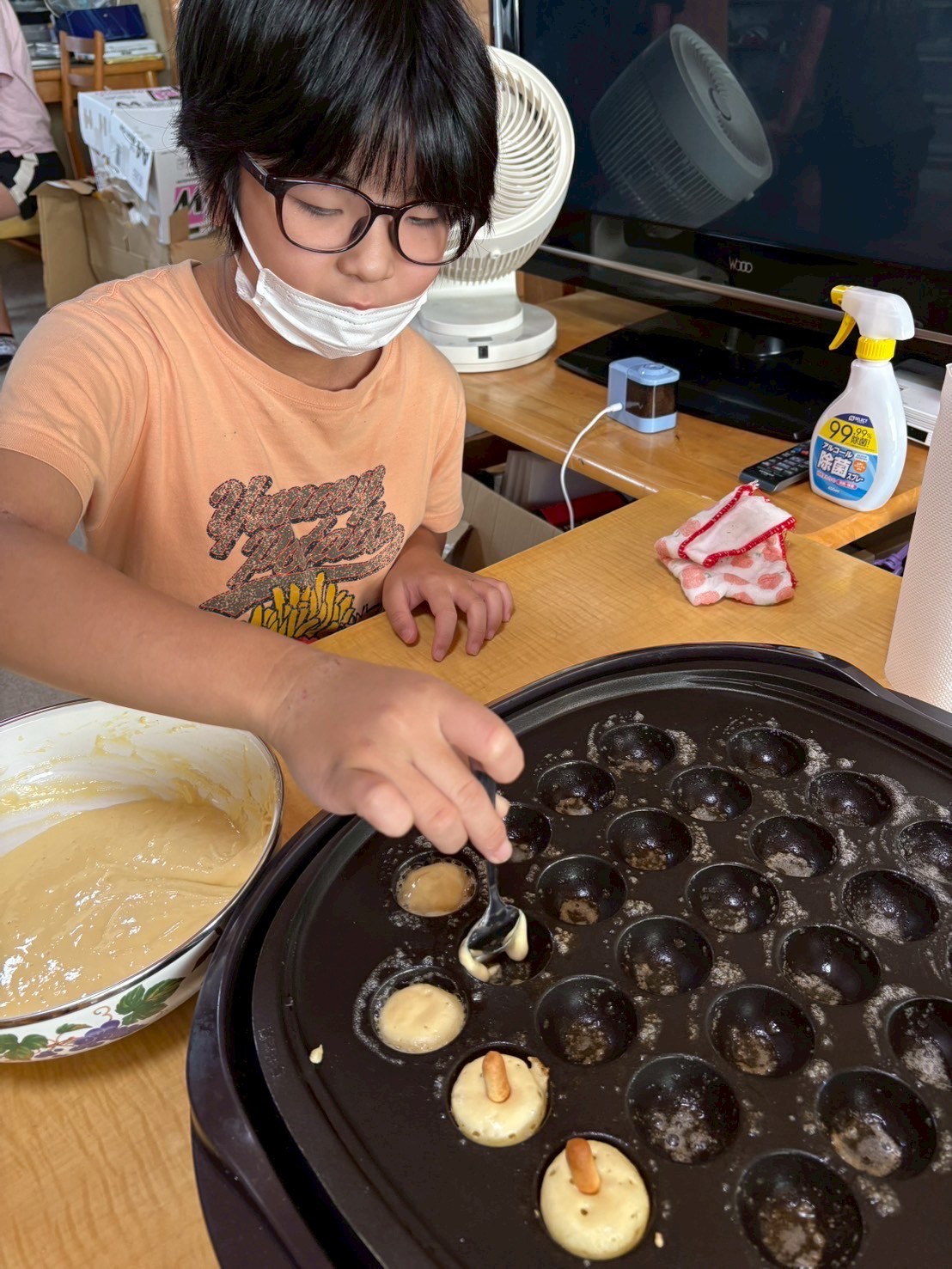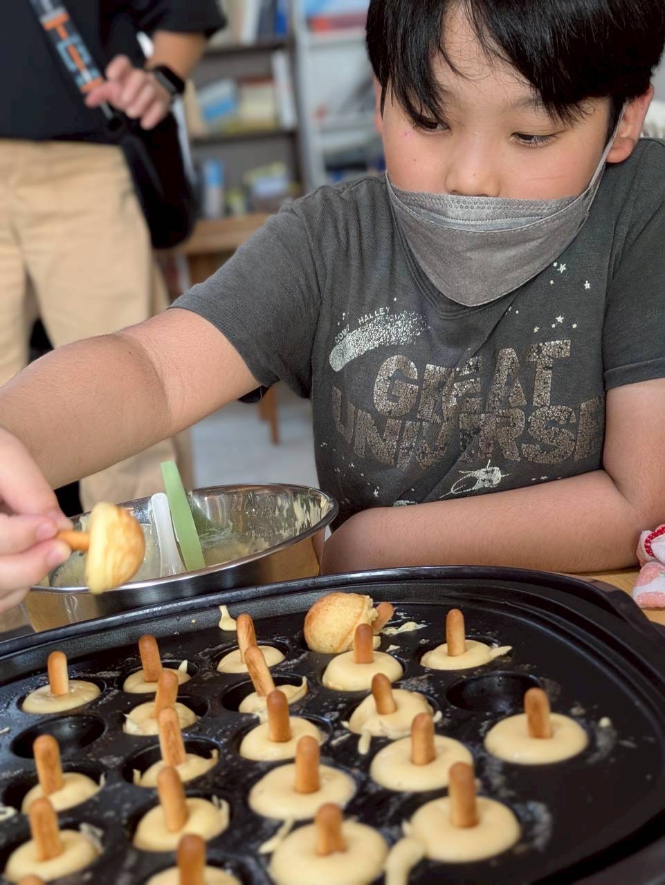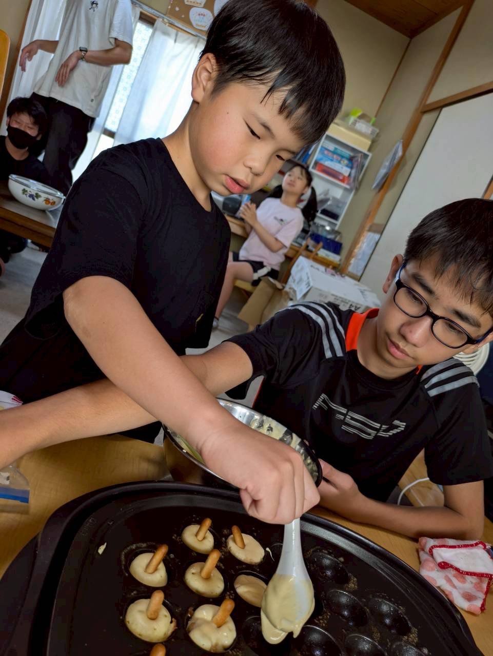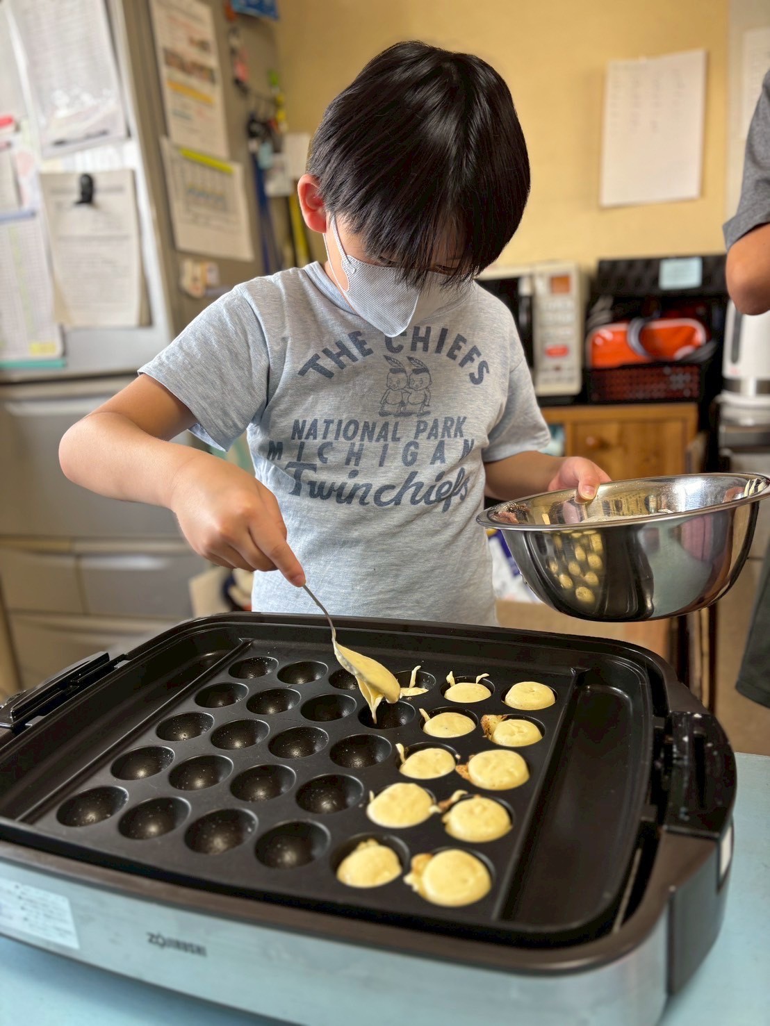 ホットケーキミックスで生地を作り、たこやき器で焼いていきます🎶