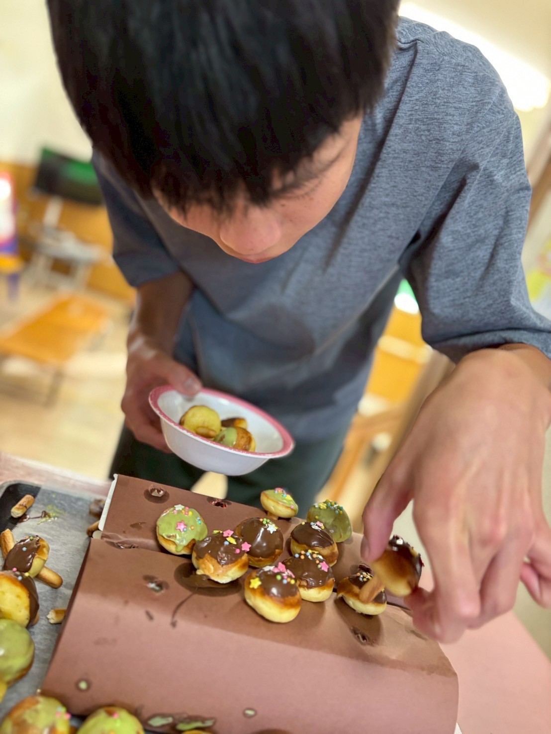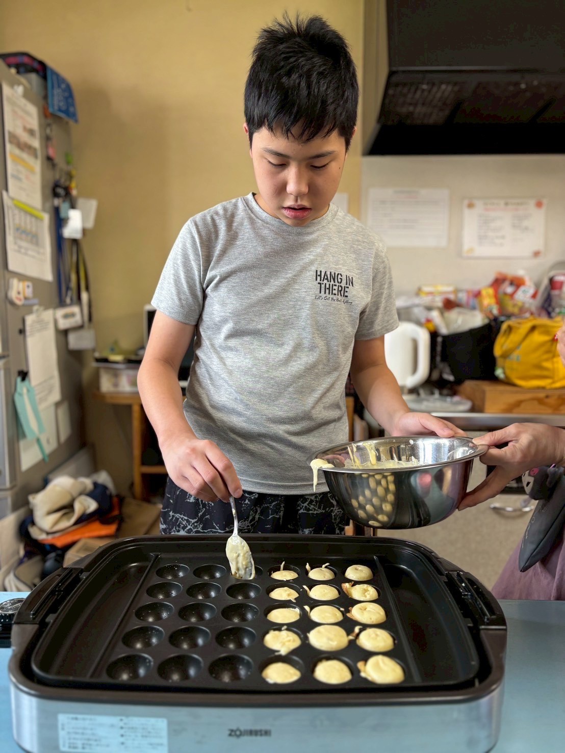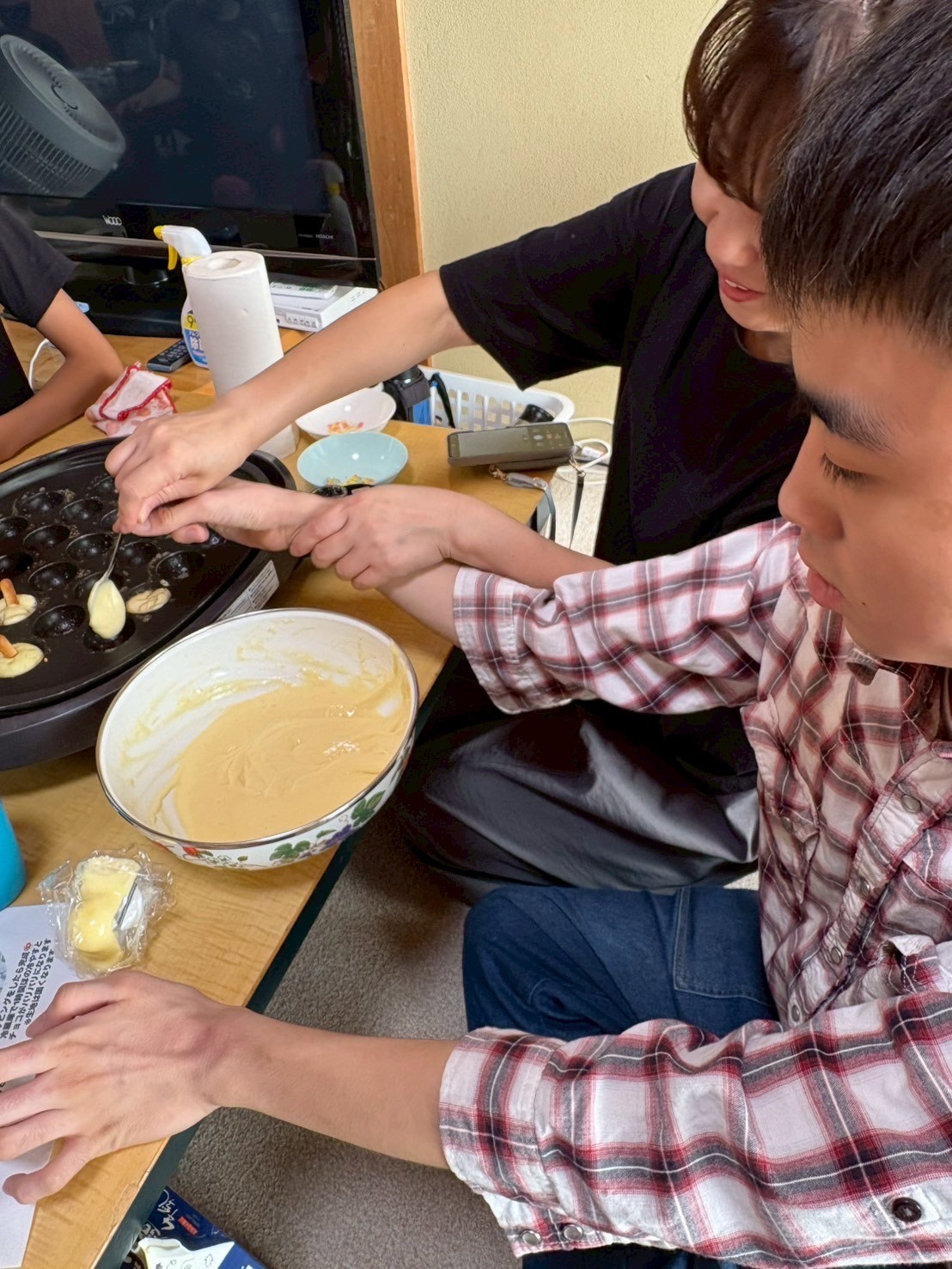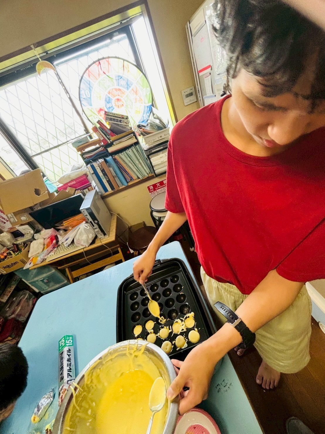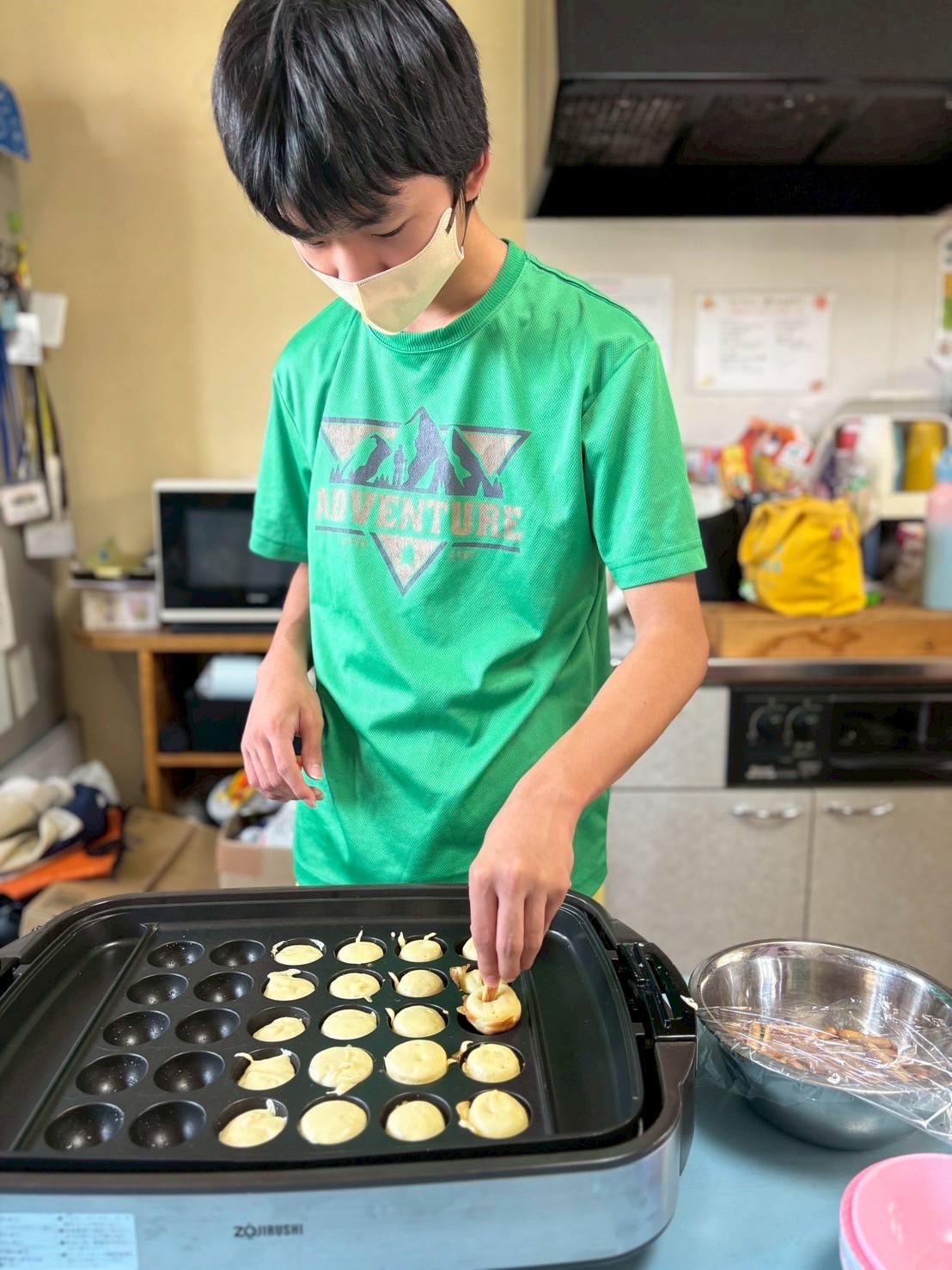 ホットケーキミックスで生地を作り、たこやき器で焼いていきます🎶