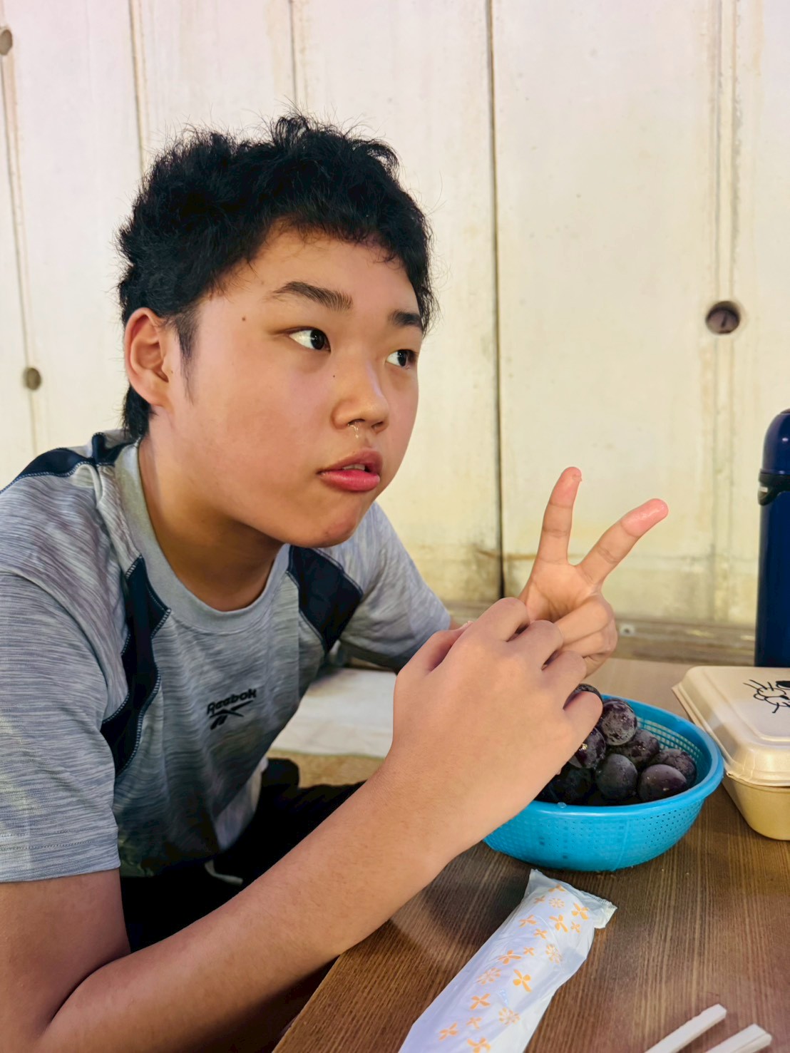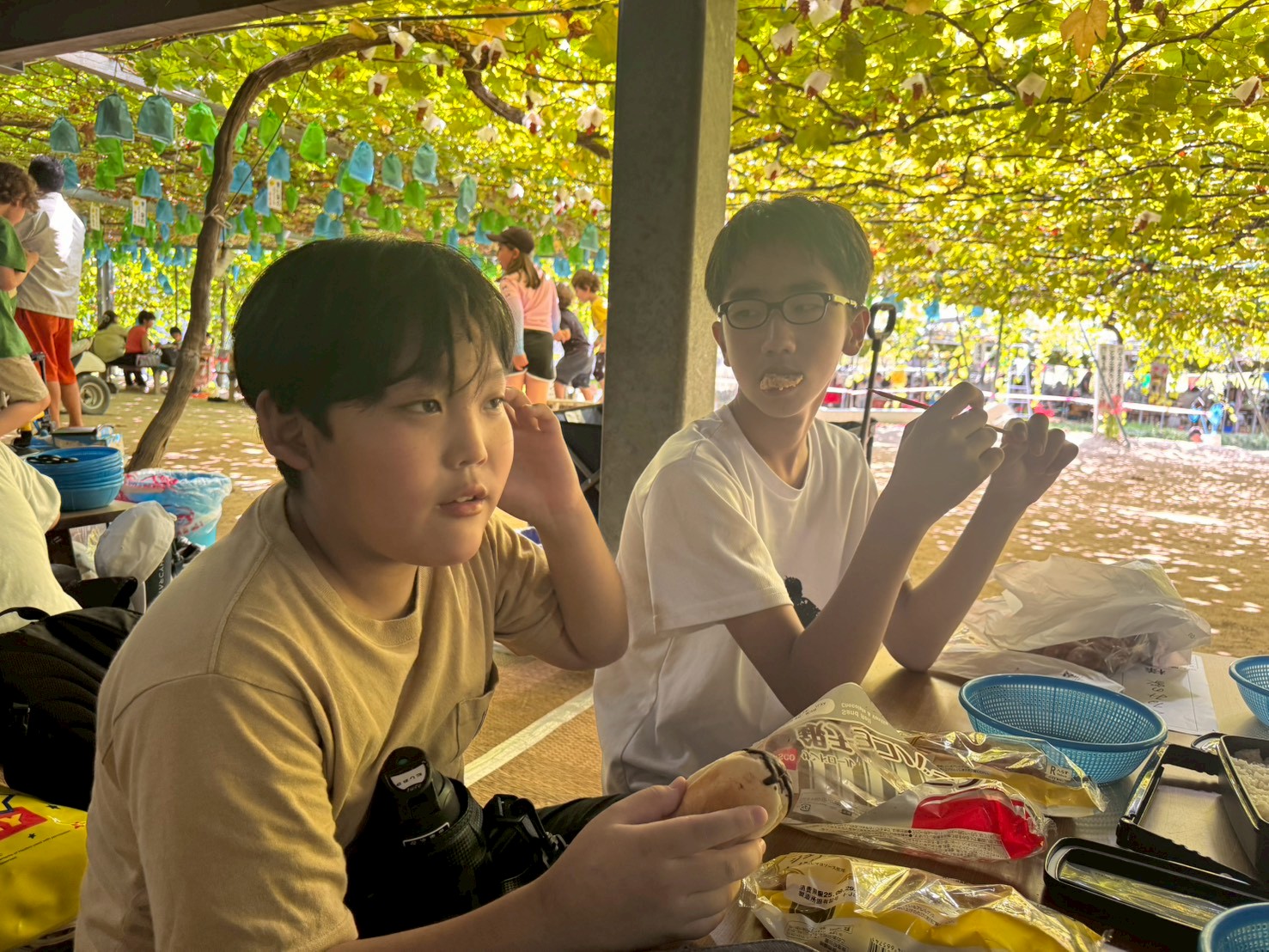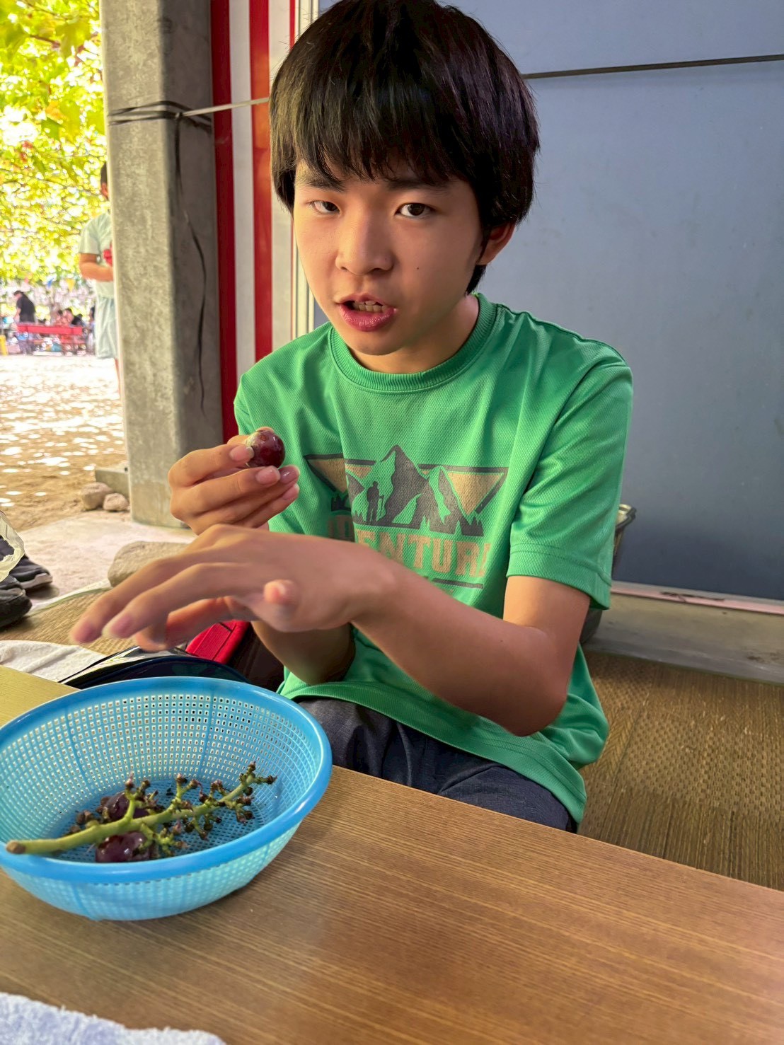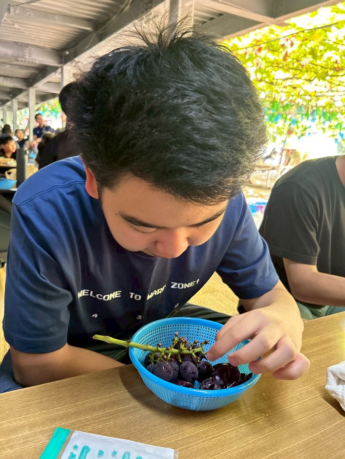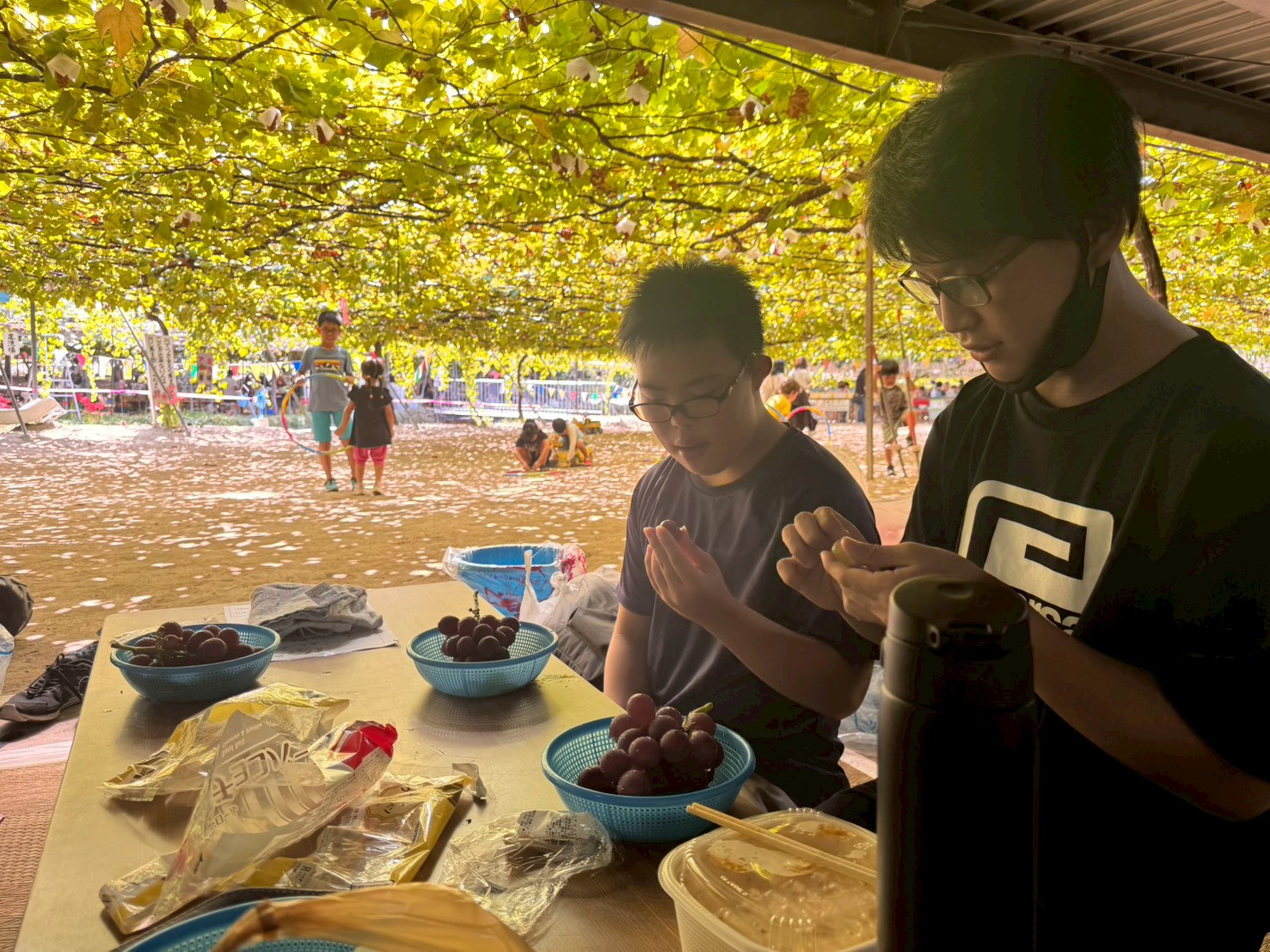 採ったぶどうは、氷水で冷やします🧊その間にお弁当を食べました🎶