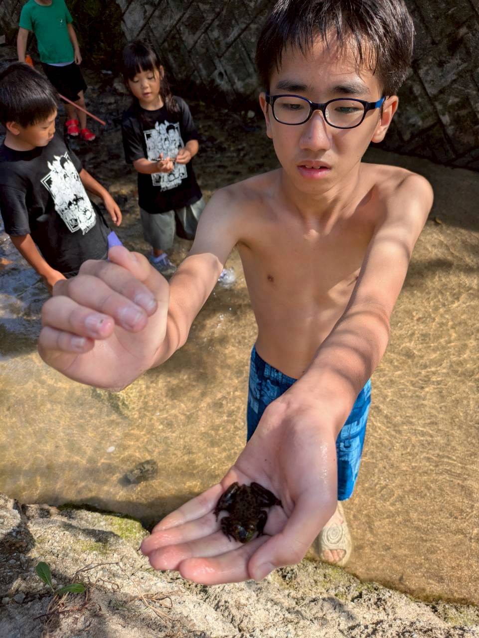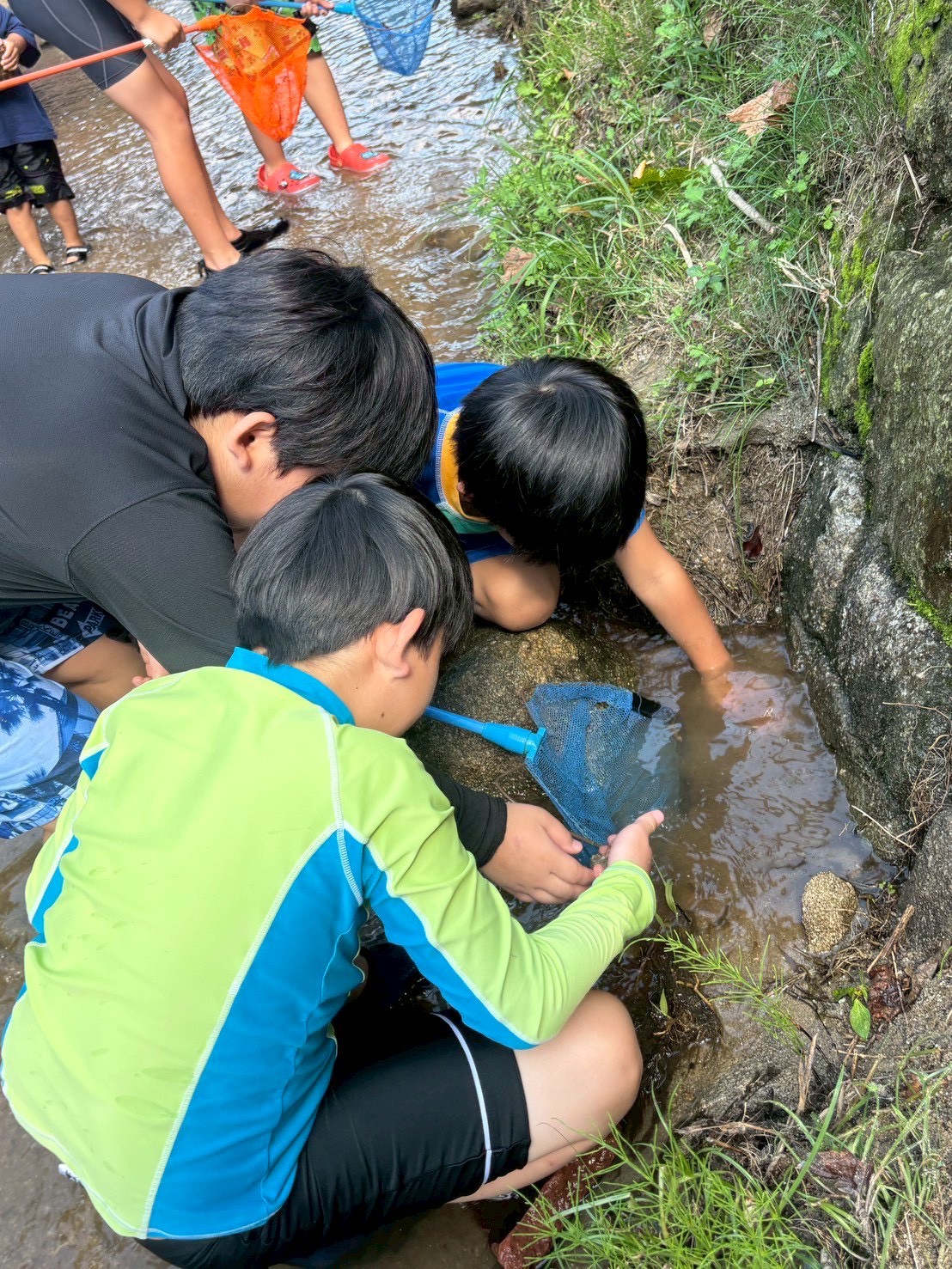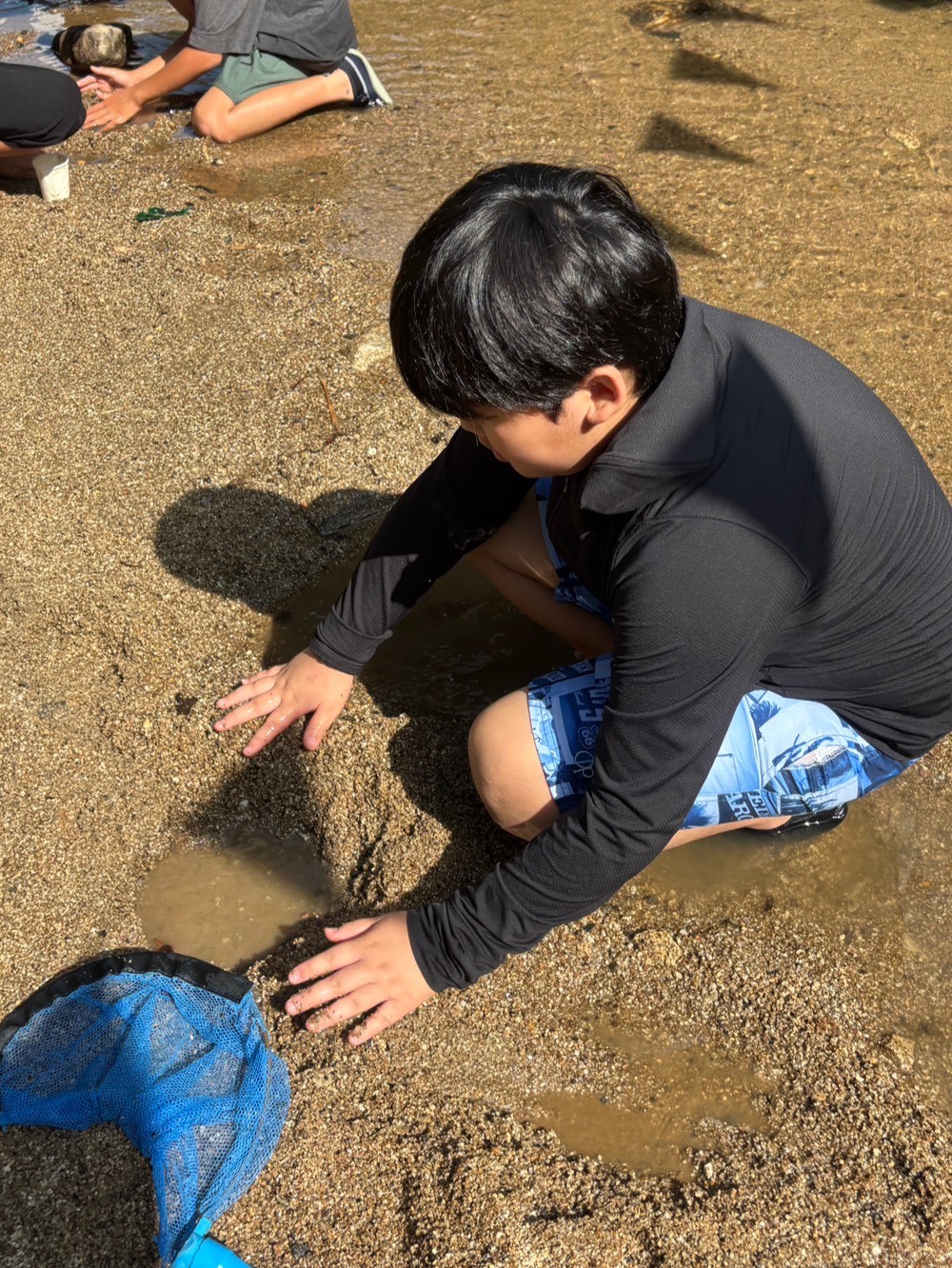 男子チームは、小魚やカニ探しに夢中👀捕まえると大喜びでした😊