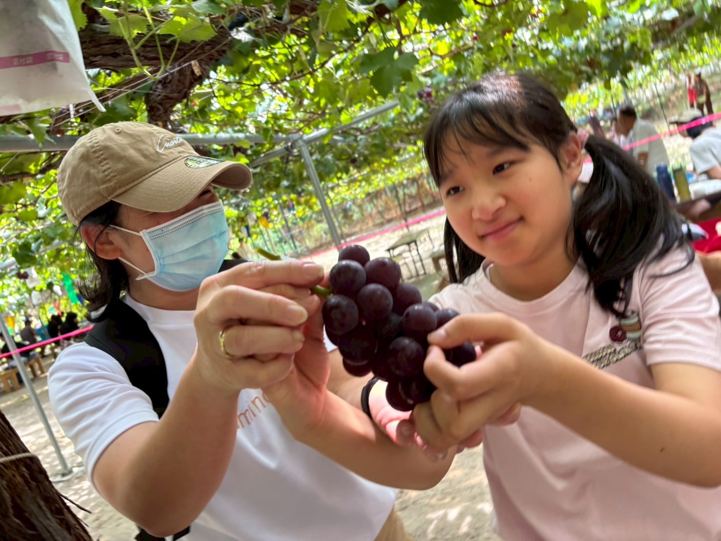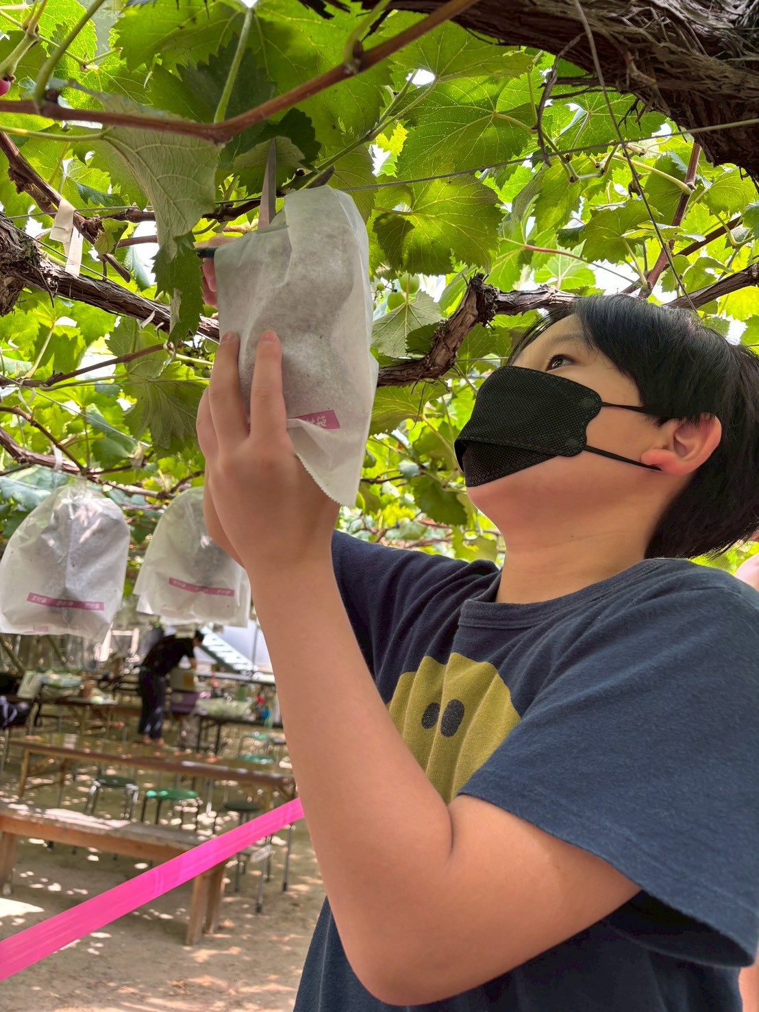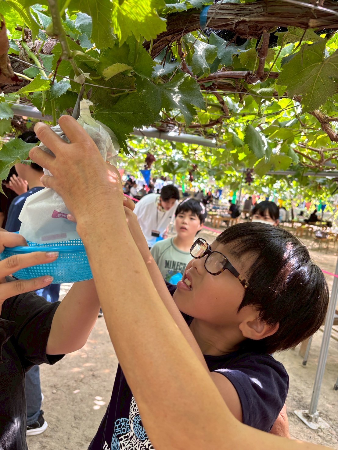 到着後は、園のスタッフの方からの説明をしっかり聞いてから早速ぶどう狩りへ🍇✨