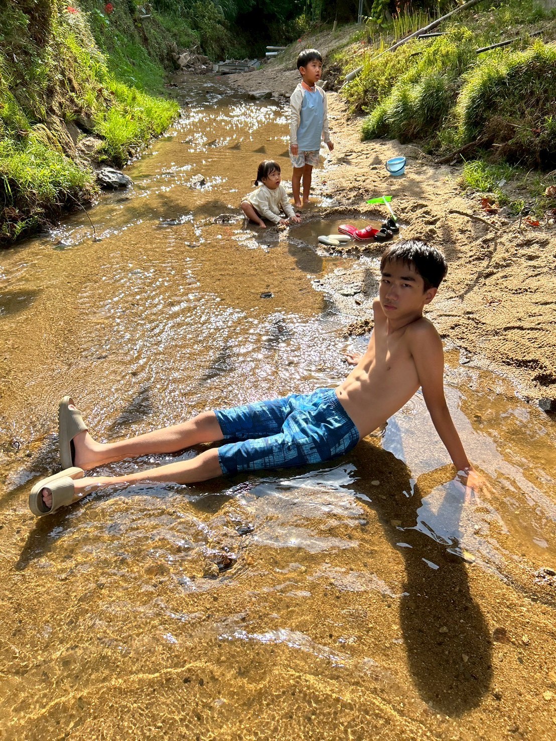 小川の水はひんやり冷たく、気持ちよさそうに水遊びを楽しんでいました✨