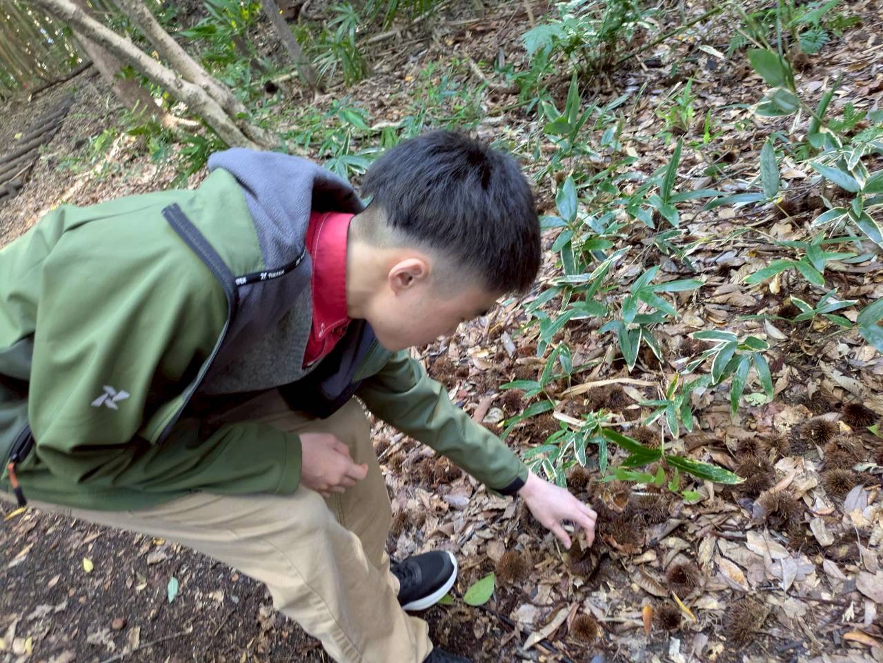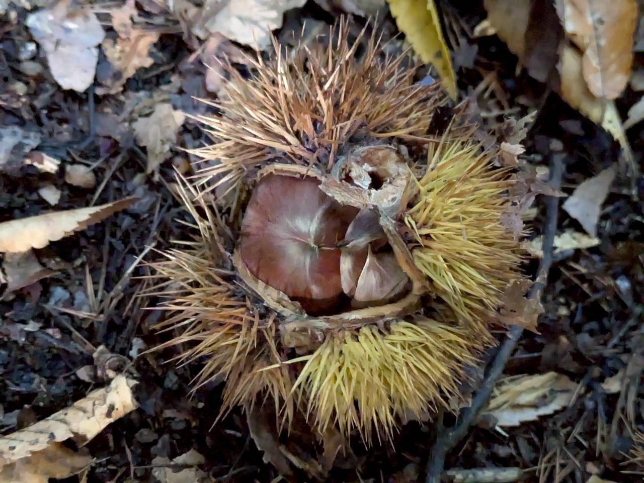 お散歩の途中でクリを発見!🌰✨もうすっかり秋ですね🍁