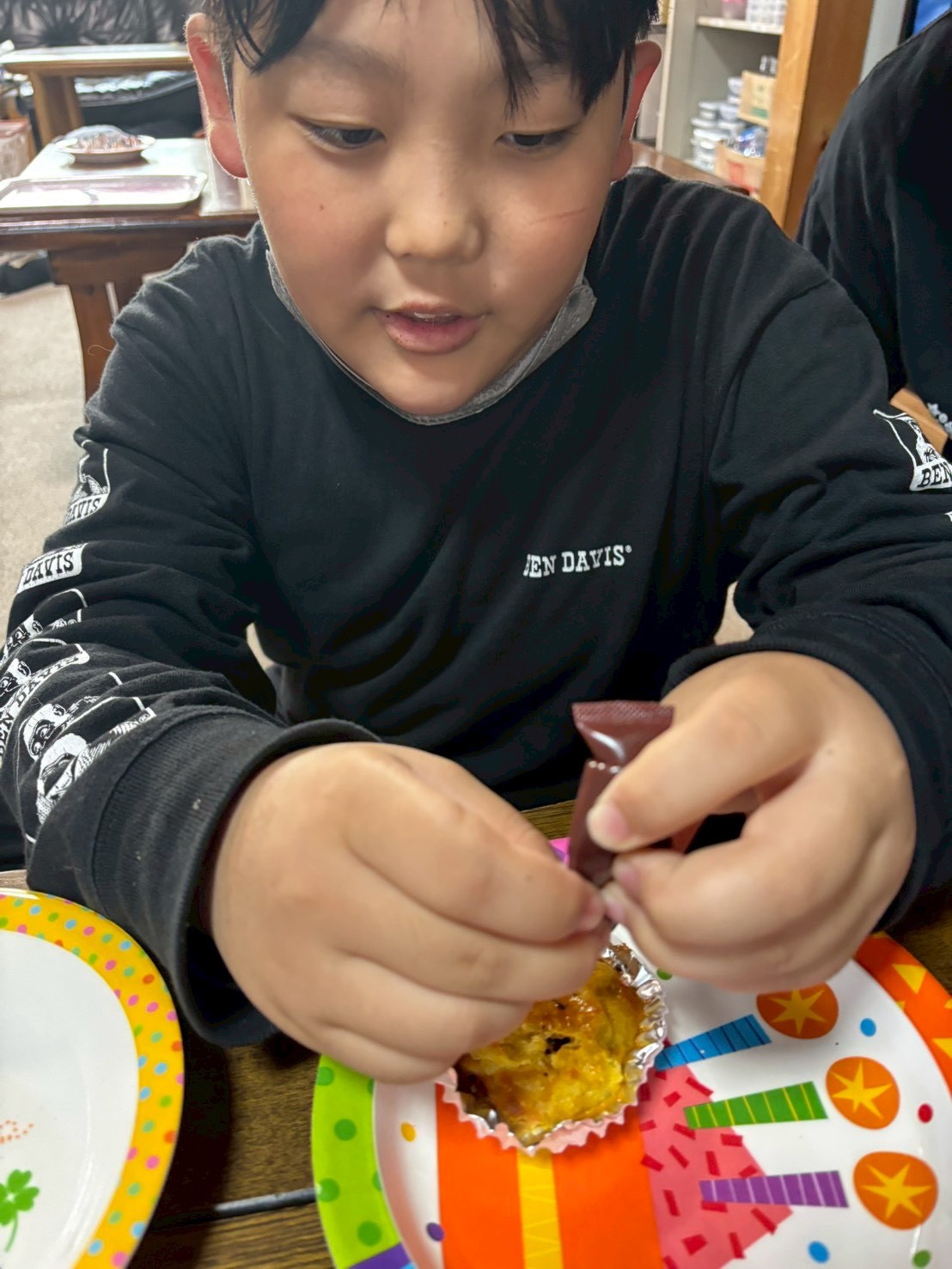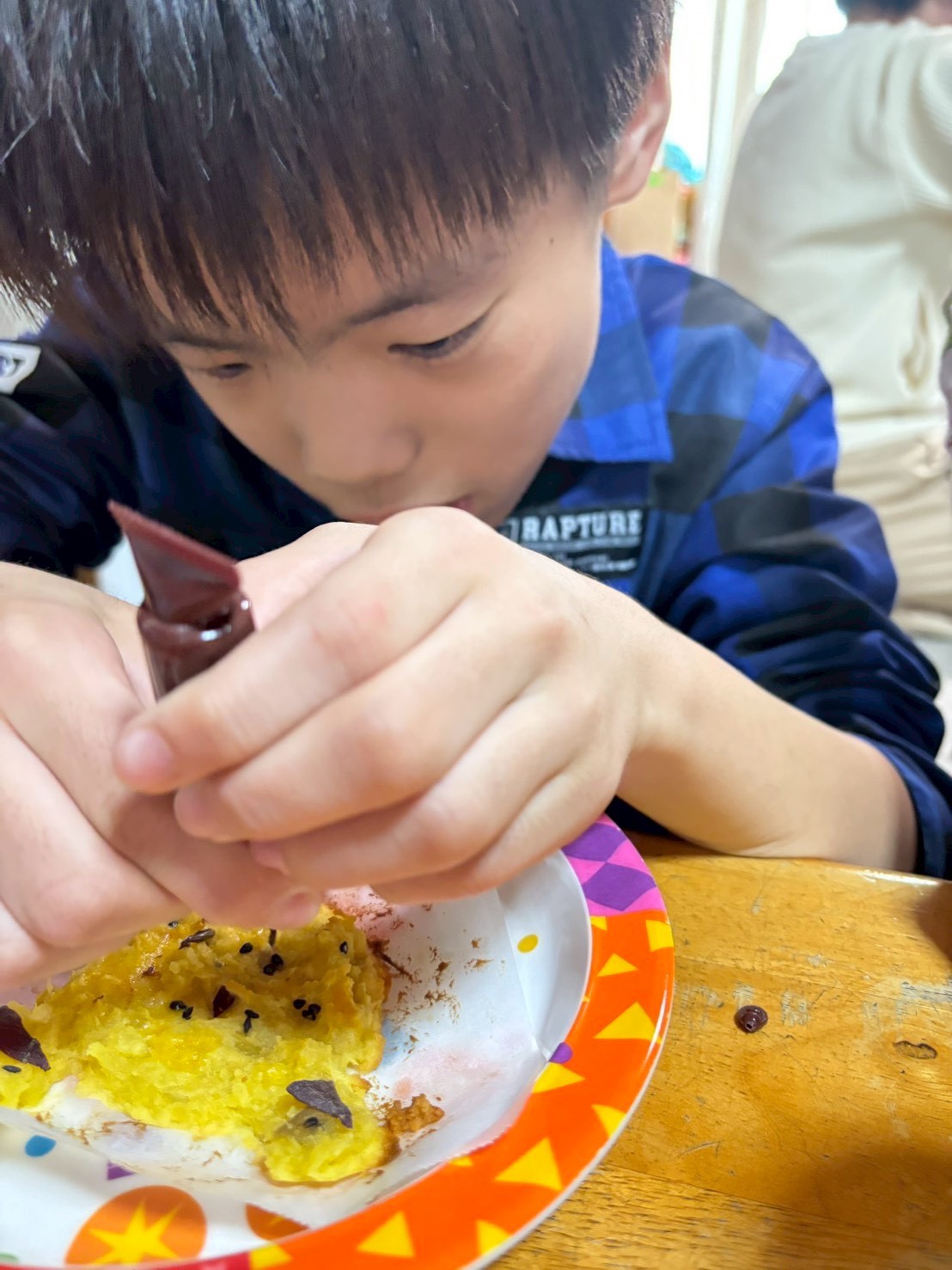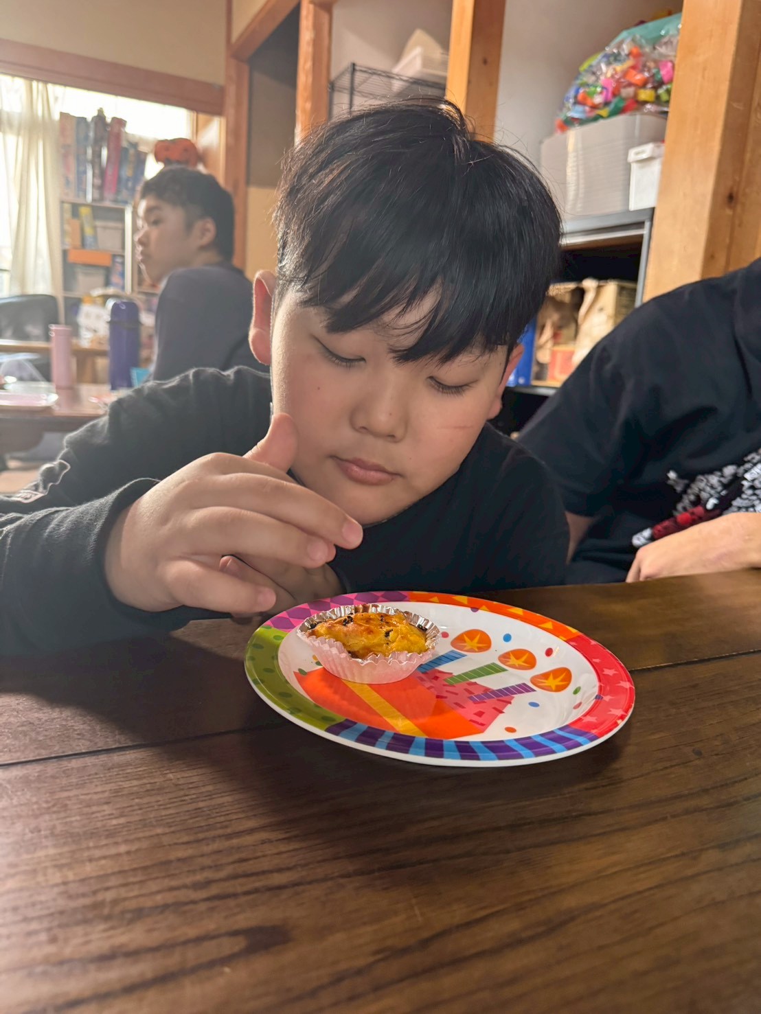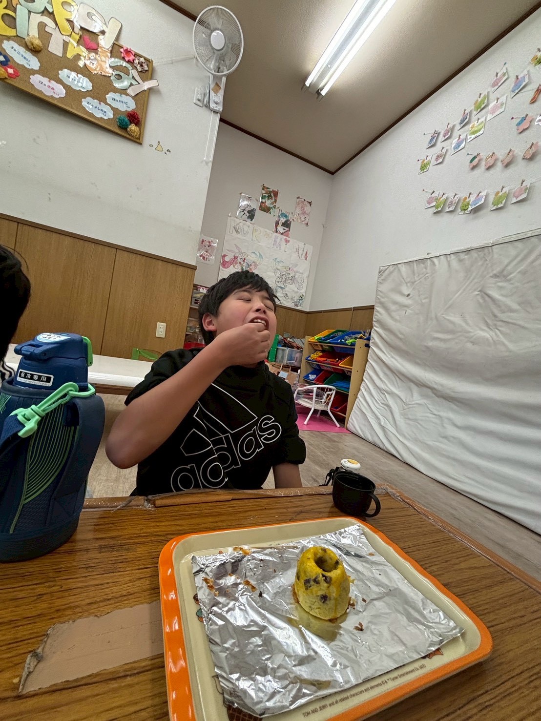 出来立てを早速おやつの時間にいただきます🎵「おいしい〜!」と大好評✨みんなとっても嬉しそうに食べていましたよ😆