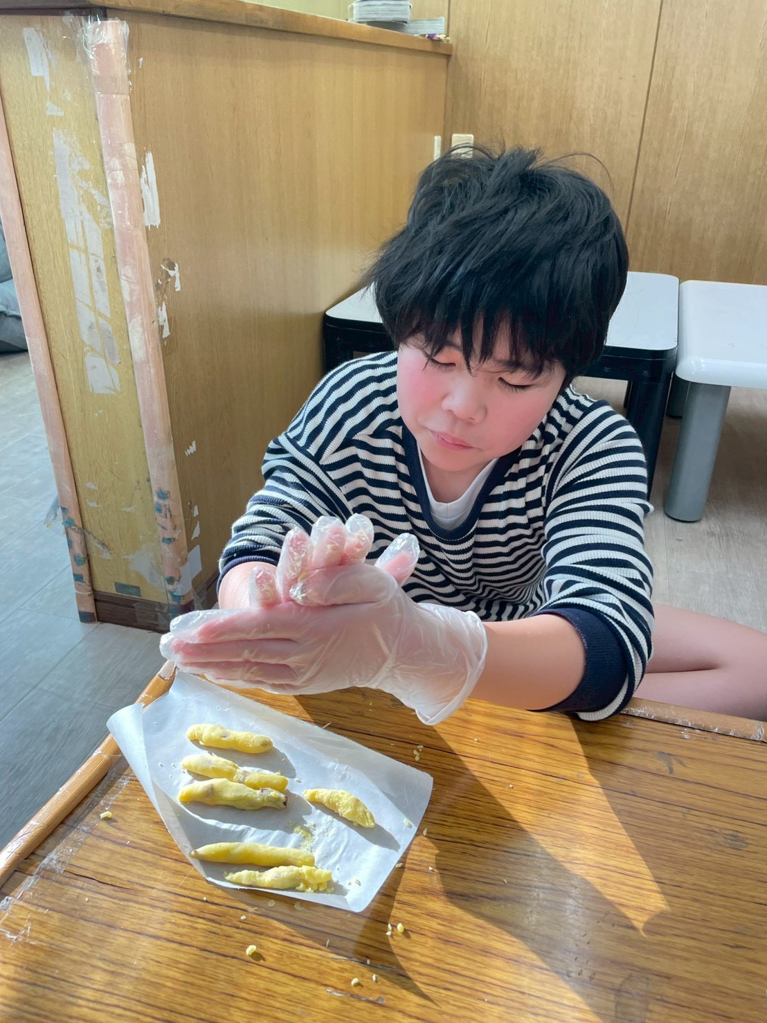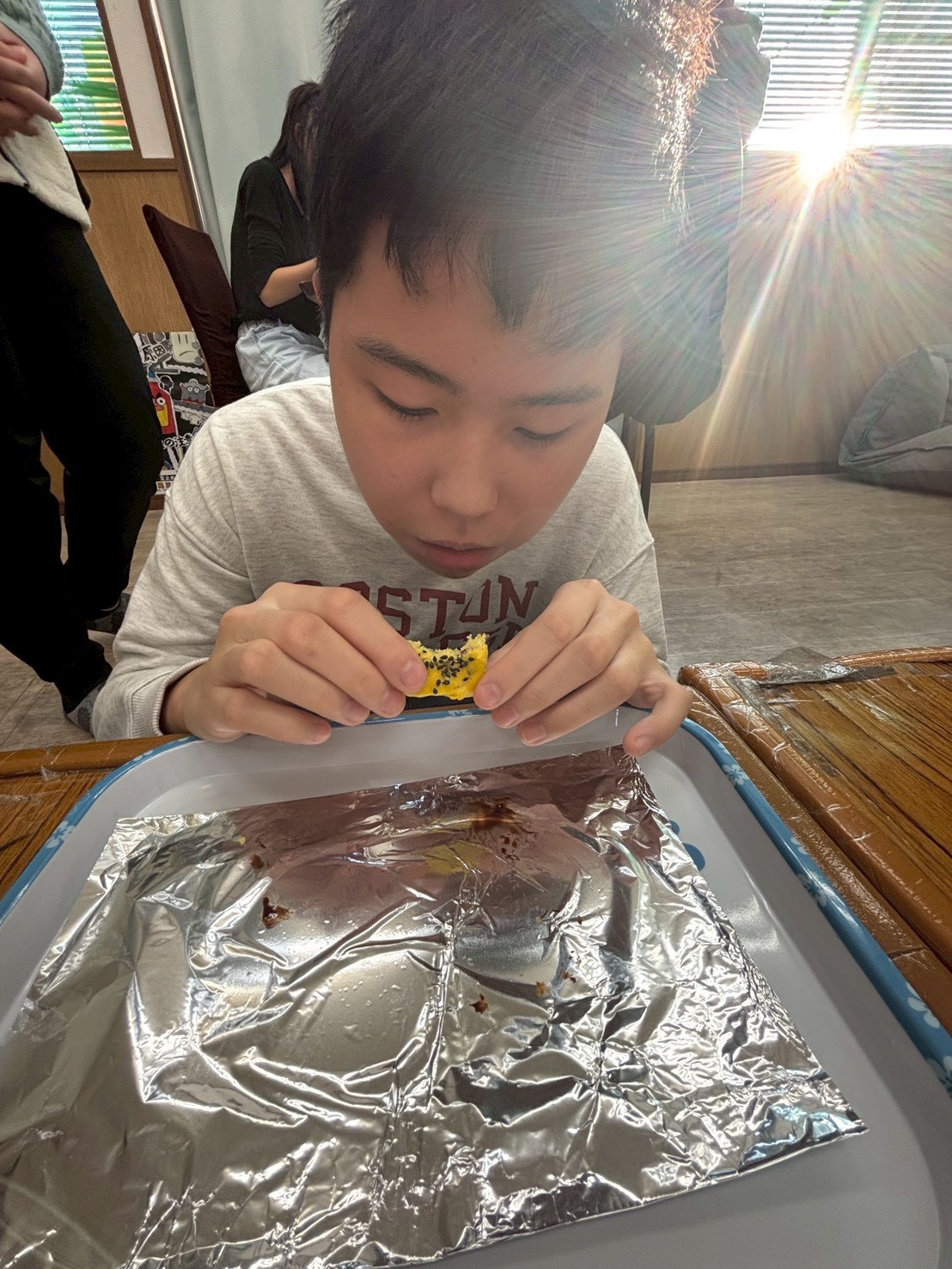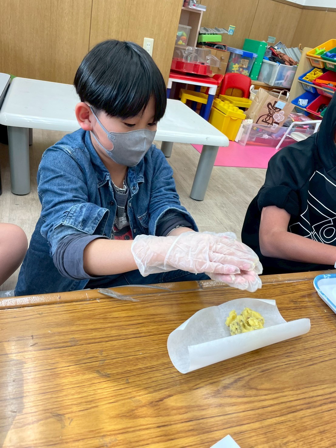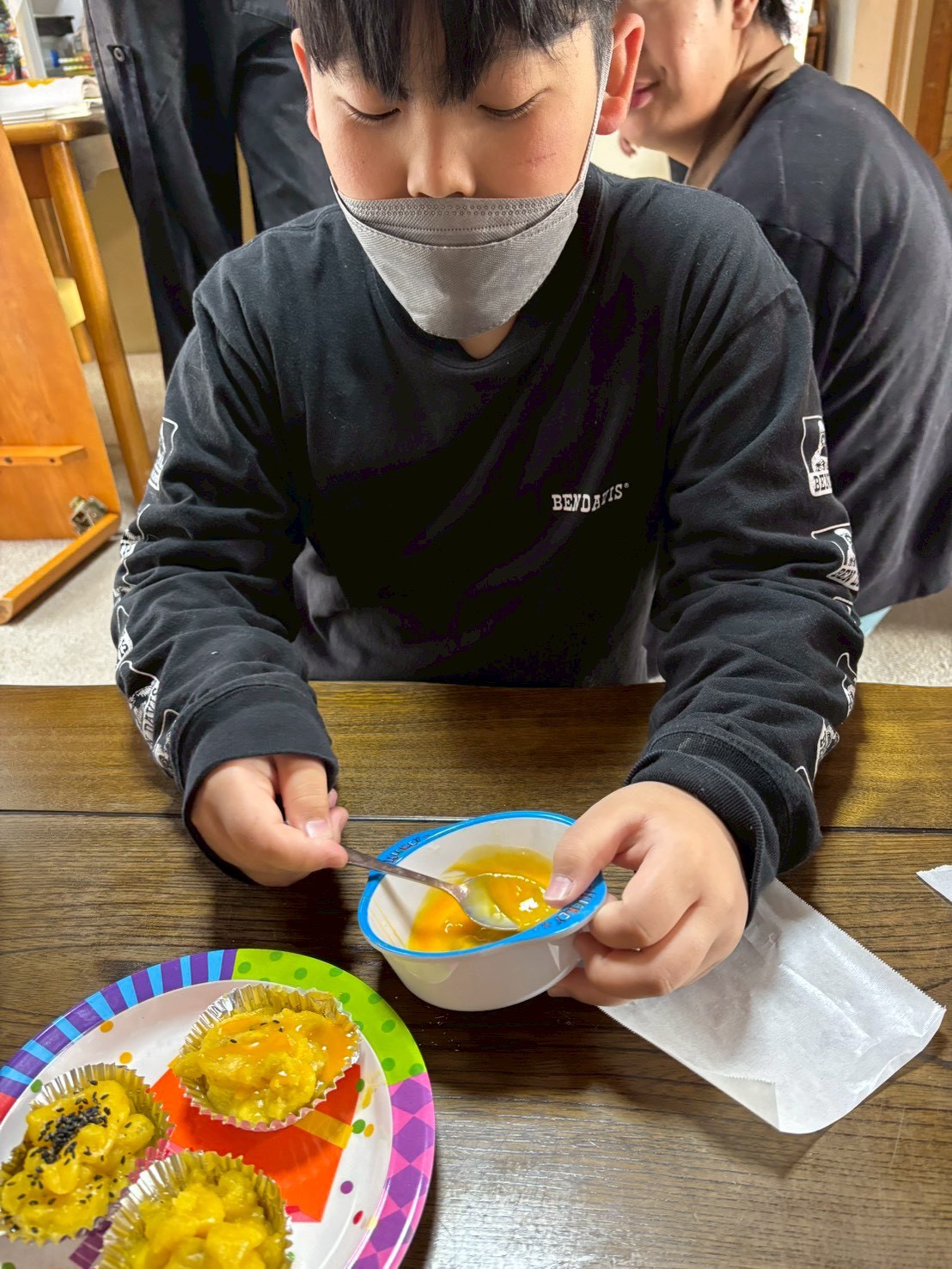 出来立てを早速おやつの時間にいただきます🎵「おいしい〜!」と大好評✨みんなとっても嬉しそうに食べていましたよ😆