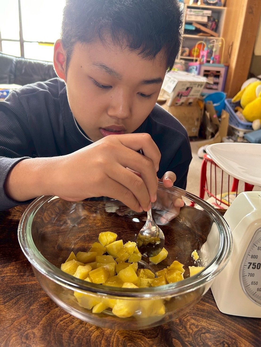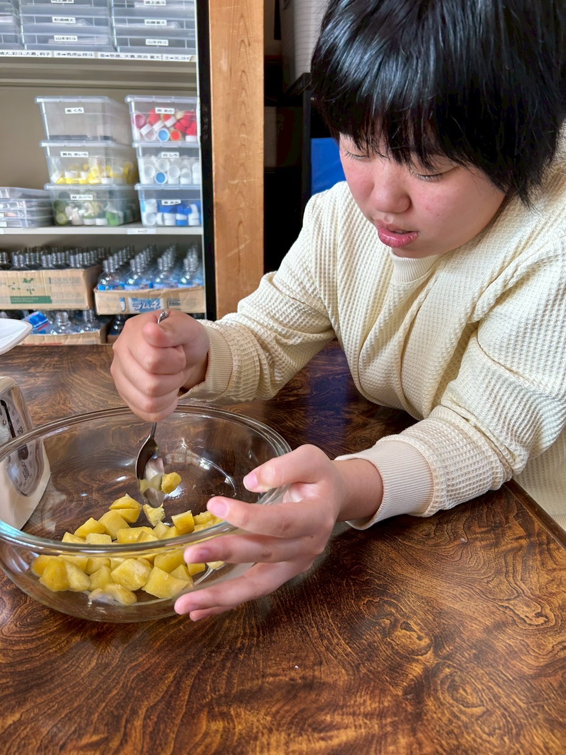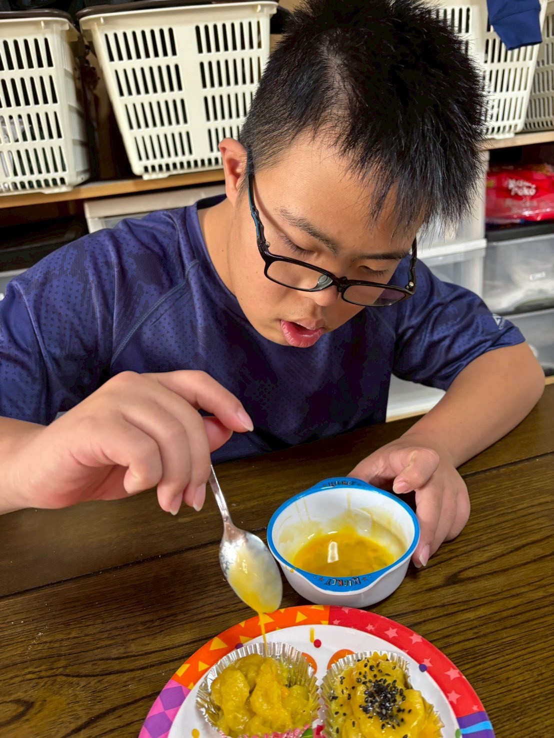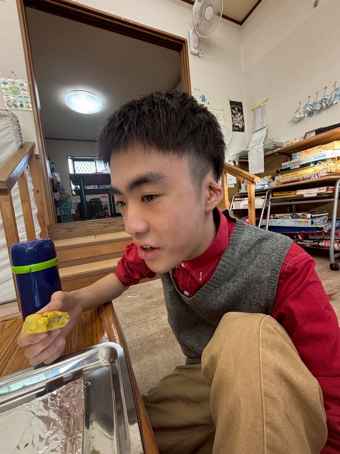 出来立てを早速おやつの時間にいただきます🎵「おいしい〜!」と大好評✨みんなとっても嬉しそうに食べていましたよ😆