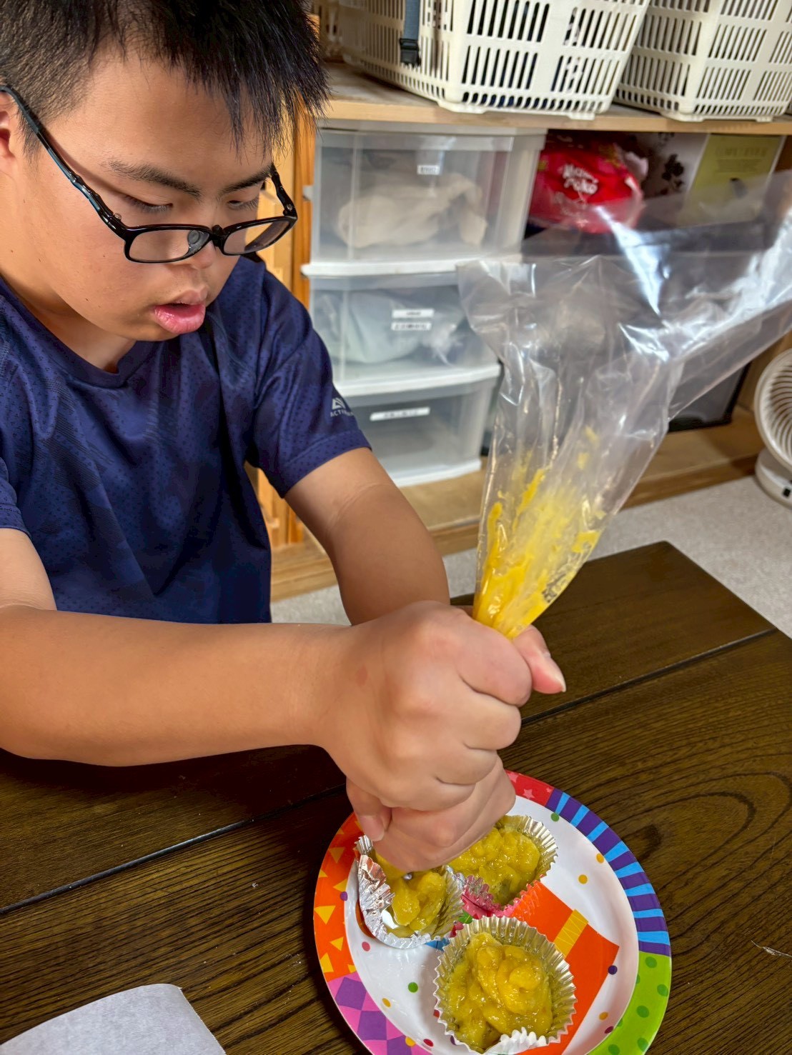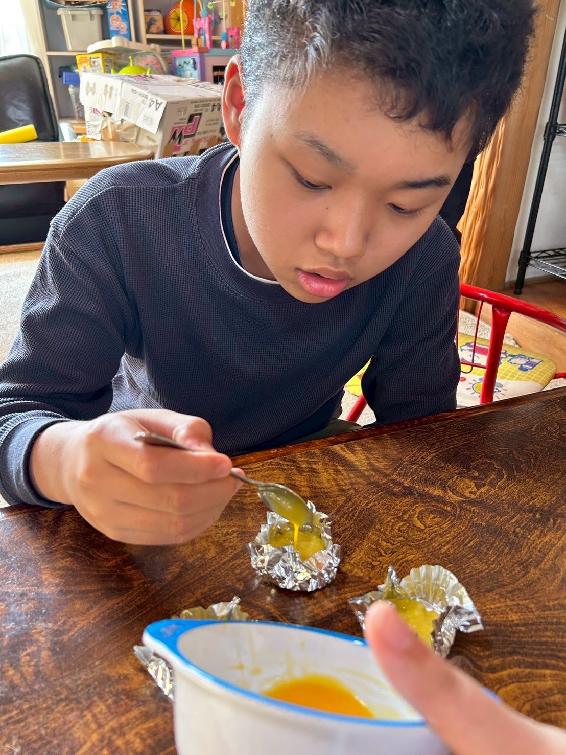 次はアルミカップやクッキングシートの上にのせて形を整えていきます!ポケモンのピカチュウやくまさんなど好きな形にアレンジしていました🐻✨