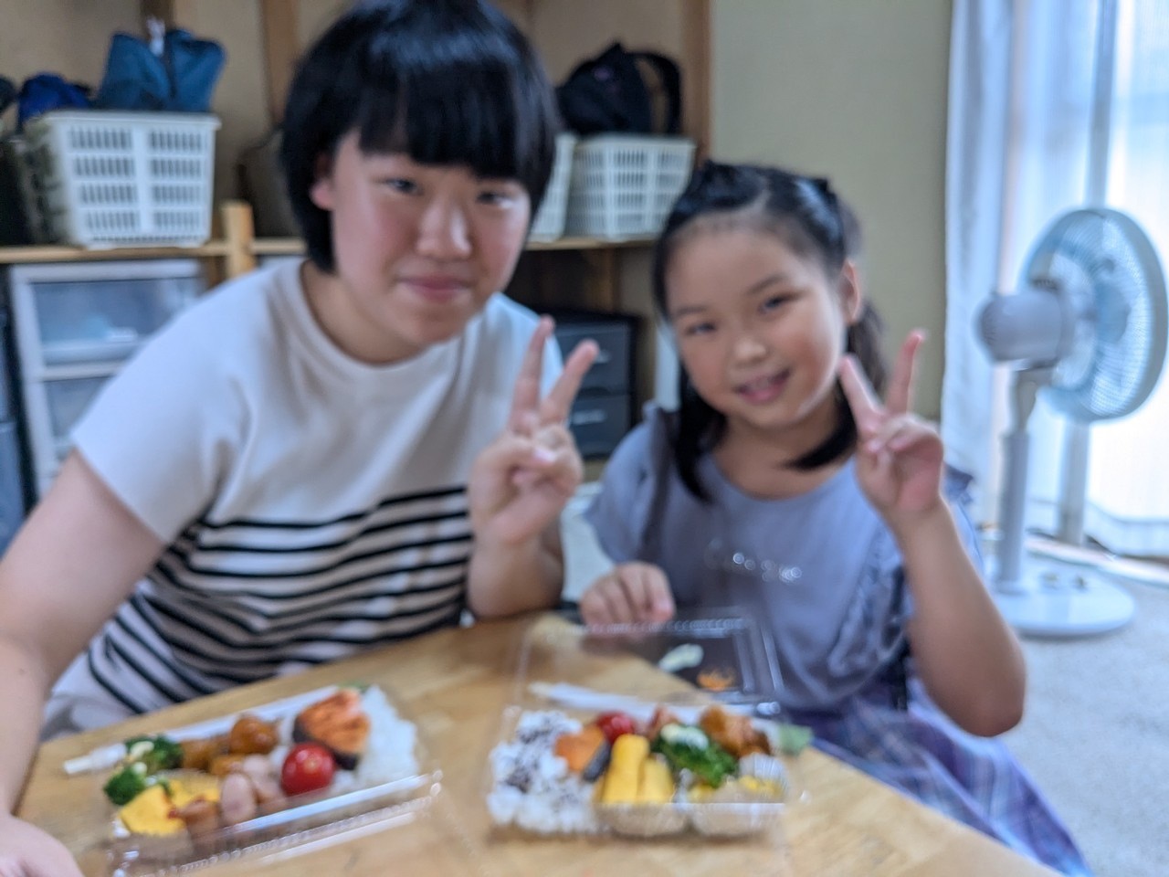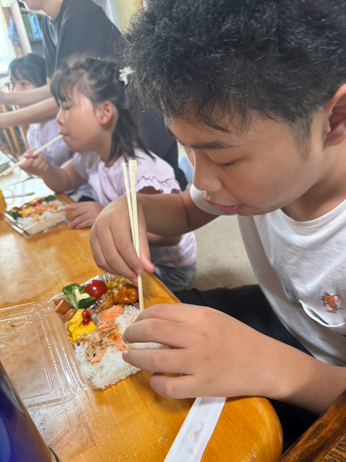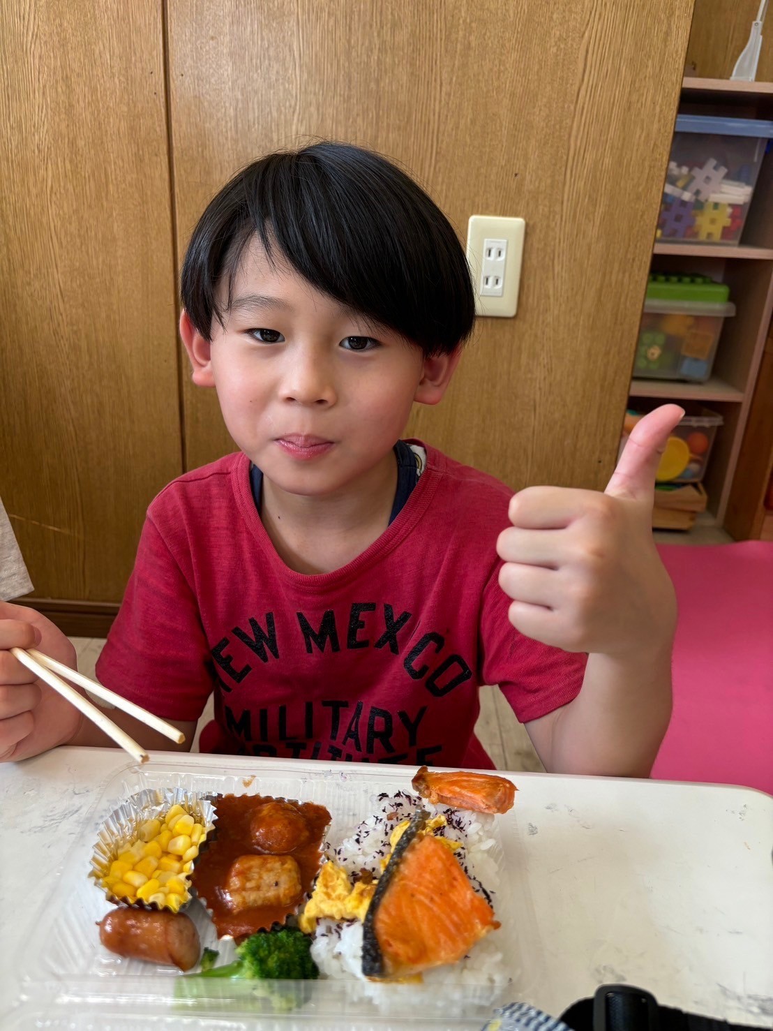 仕切りを使ってみんなとっても綺麗に詰めることができていました🎵できたら早速お昼ご飯に!
