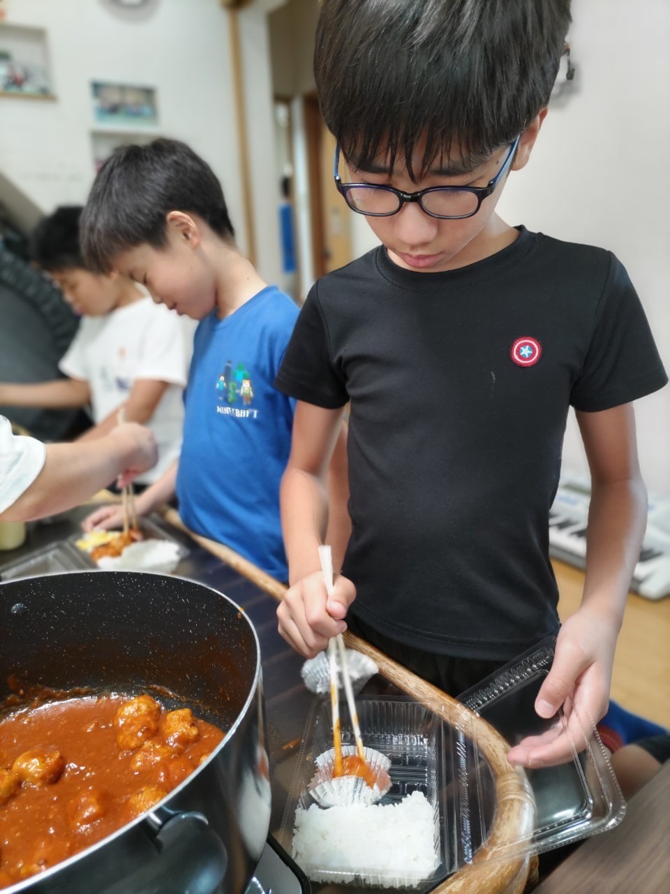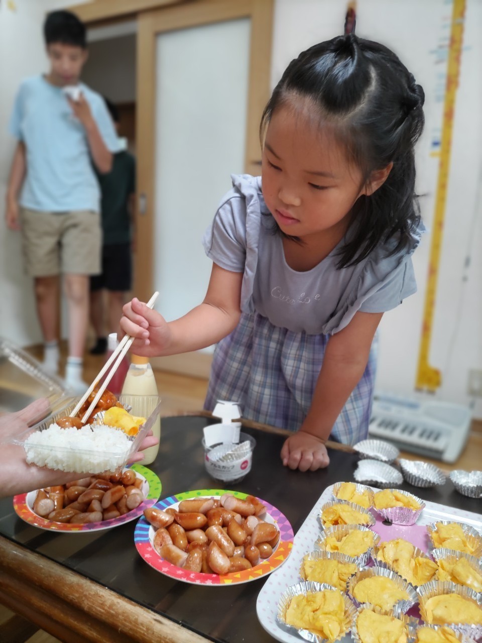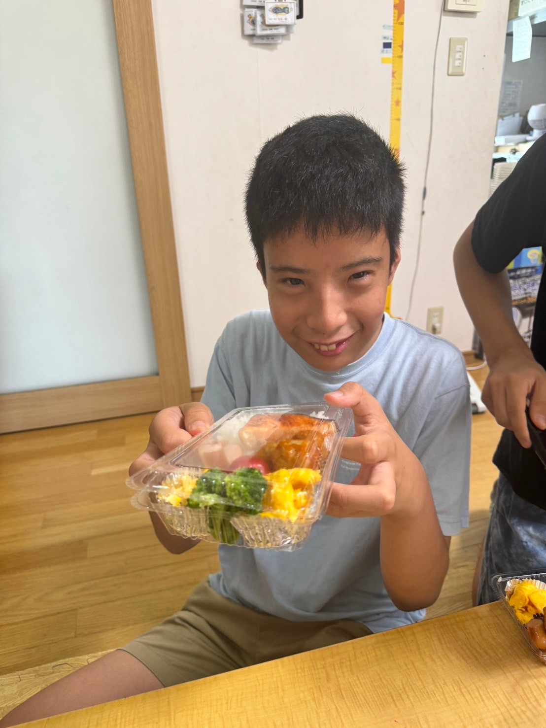 仕切りを使ってみんなとっても綺麗に詰めることができていました🎵できたら早速お昼ご飯に!