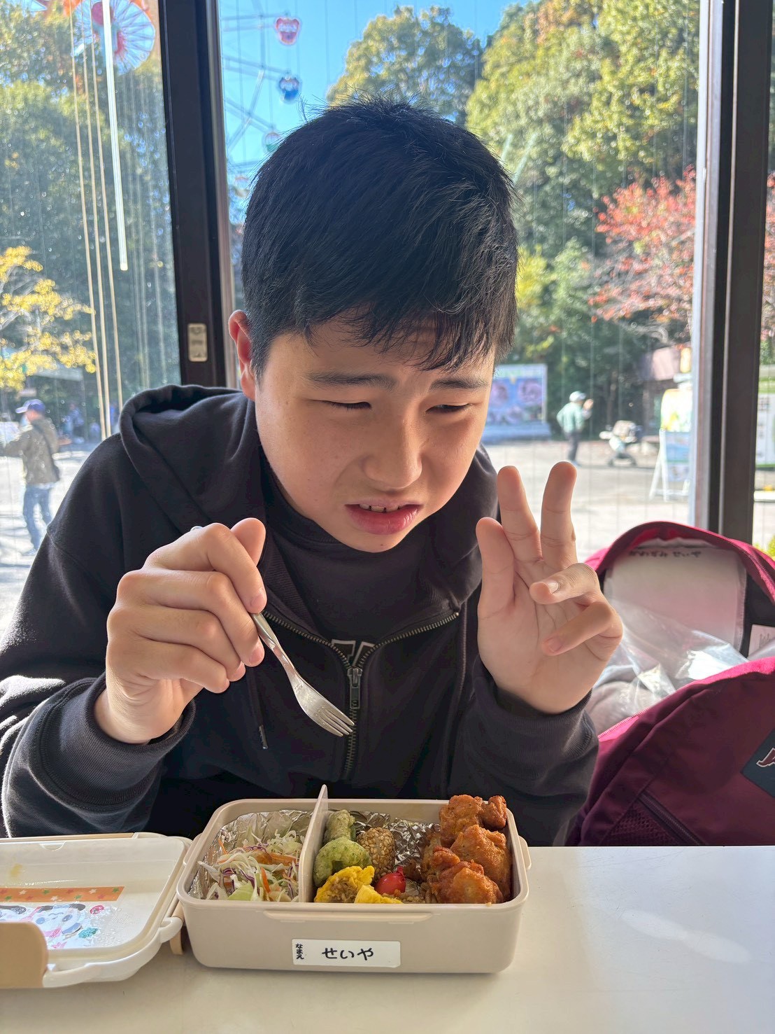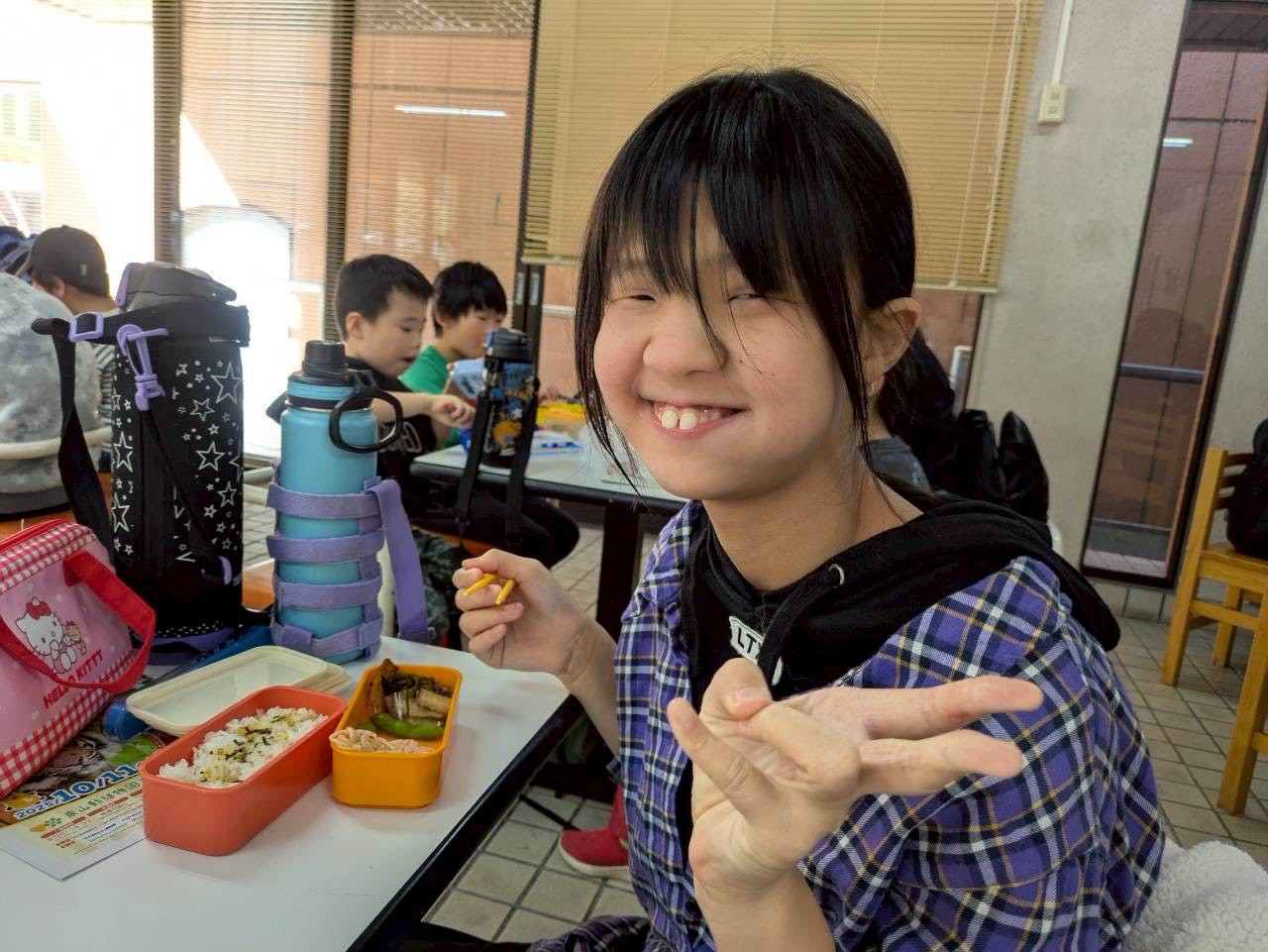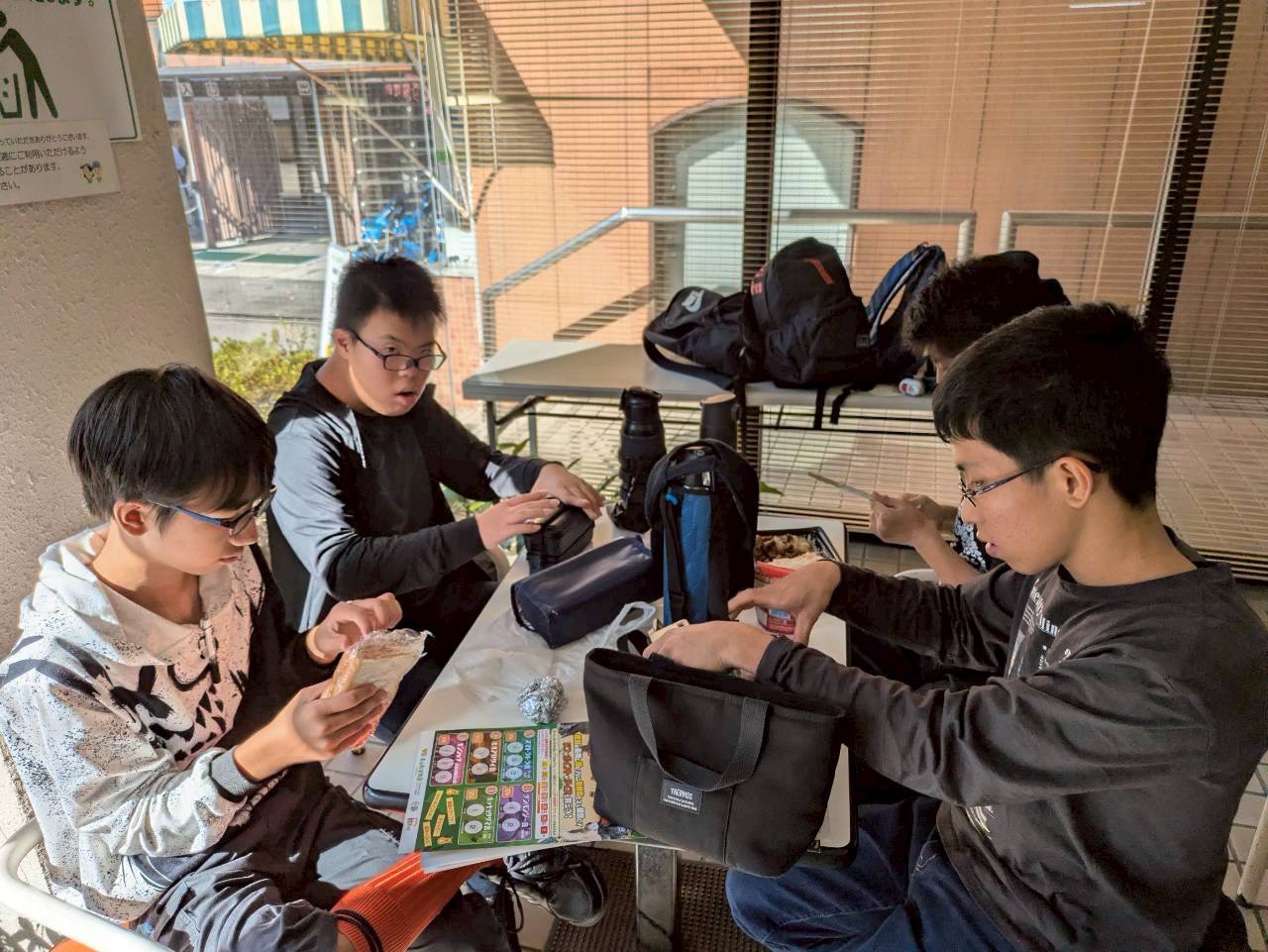 到着後はみんなでランチタイム🎶一緒に回るグループのお友達と一緒に食べました😊「あそこ行きたい!」「ここも!」とマップを見ながらどこを回るか相談していました😆